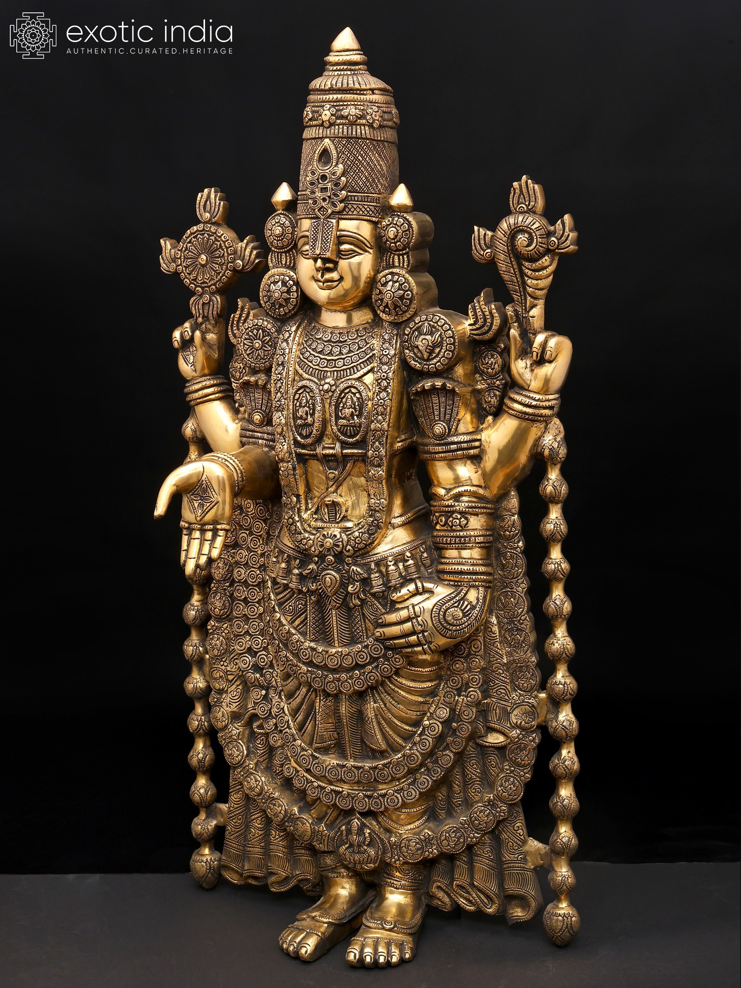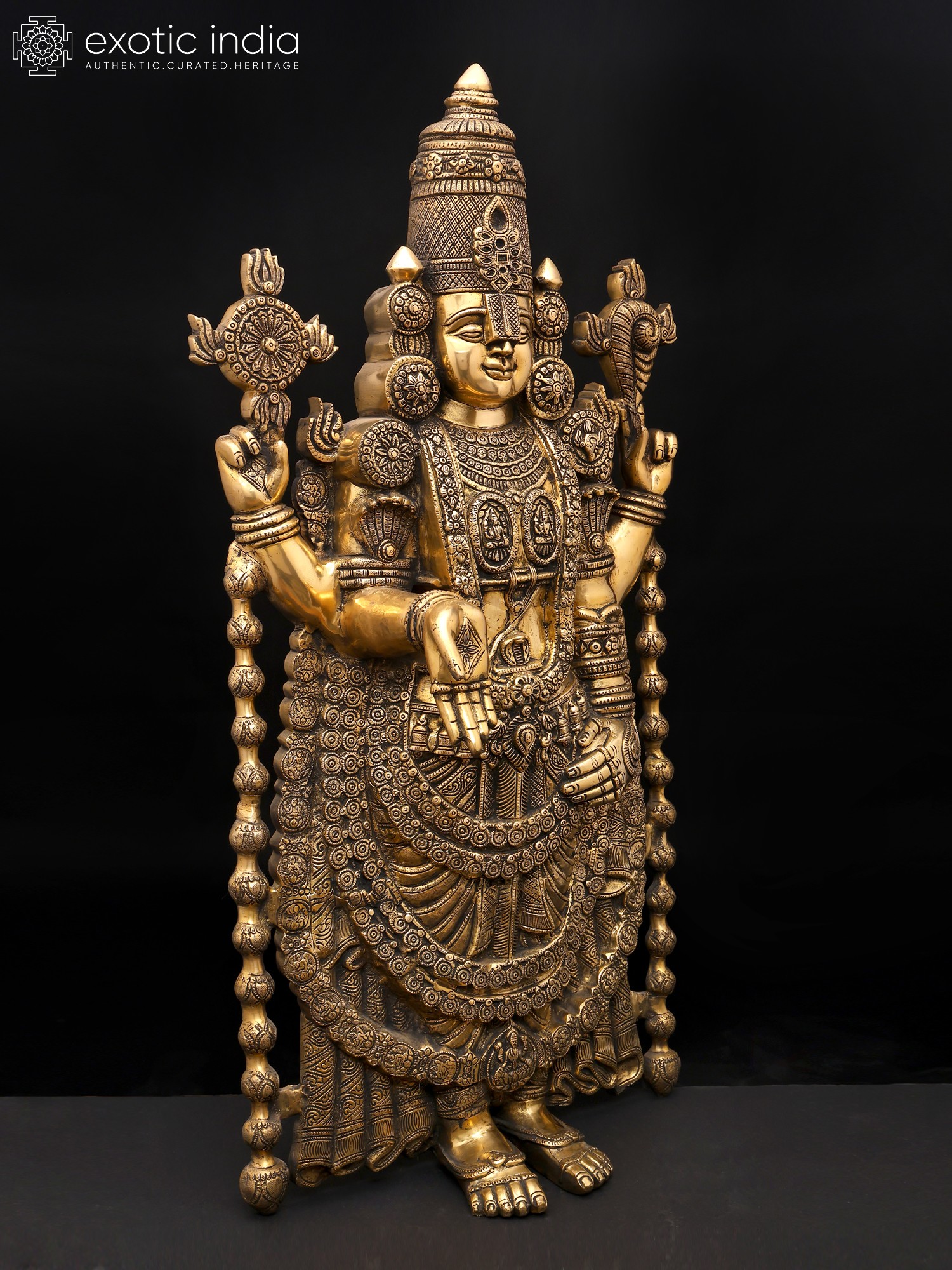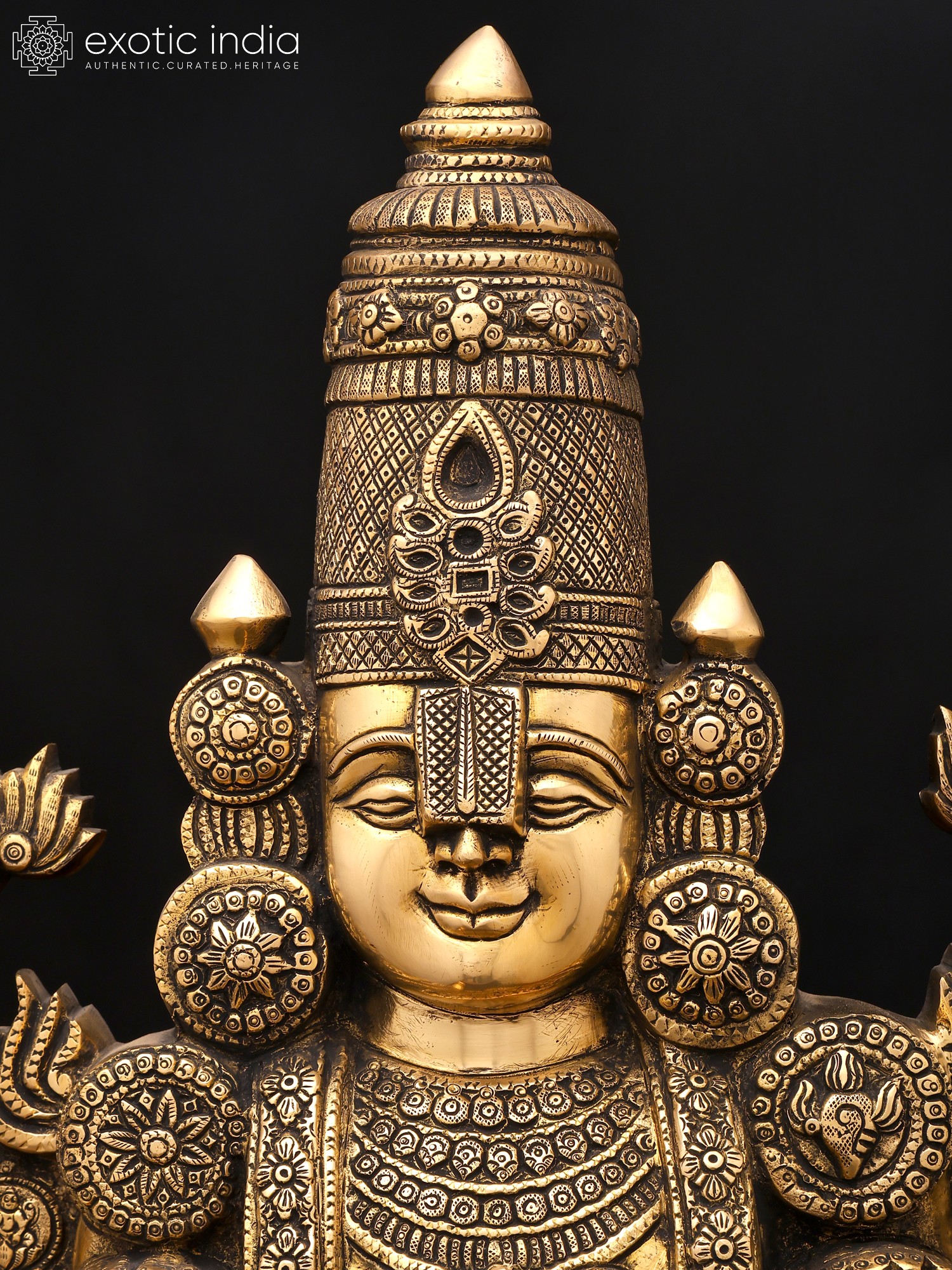15" Lord Venkateshvara Brass Sculpture | Tirupati Balaji Statue | Handmade Idols
