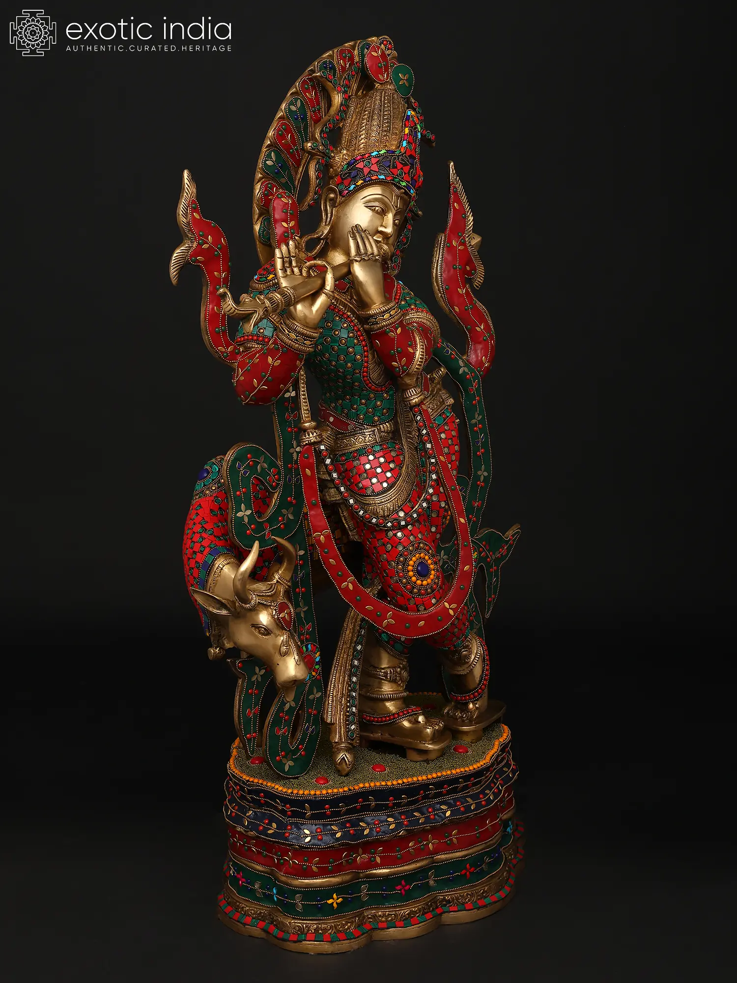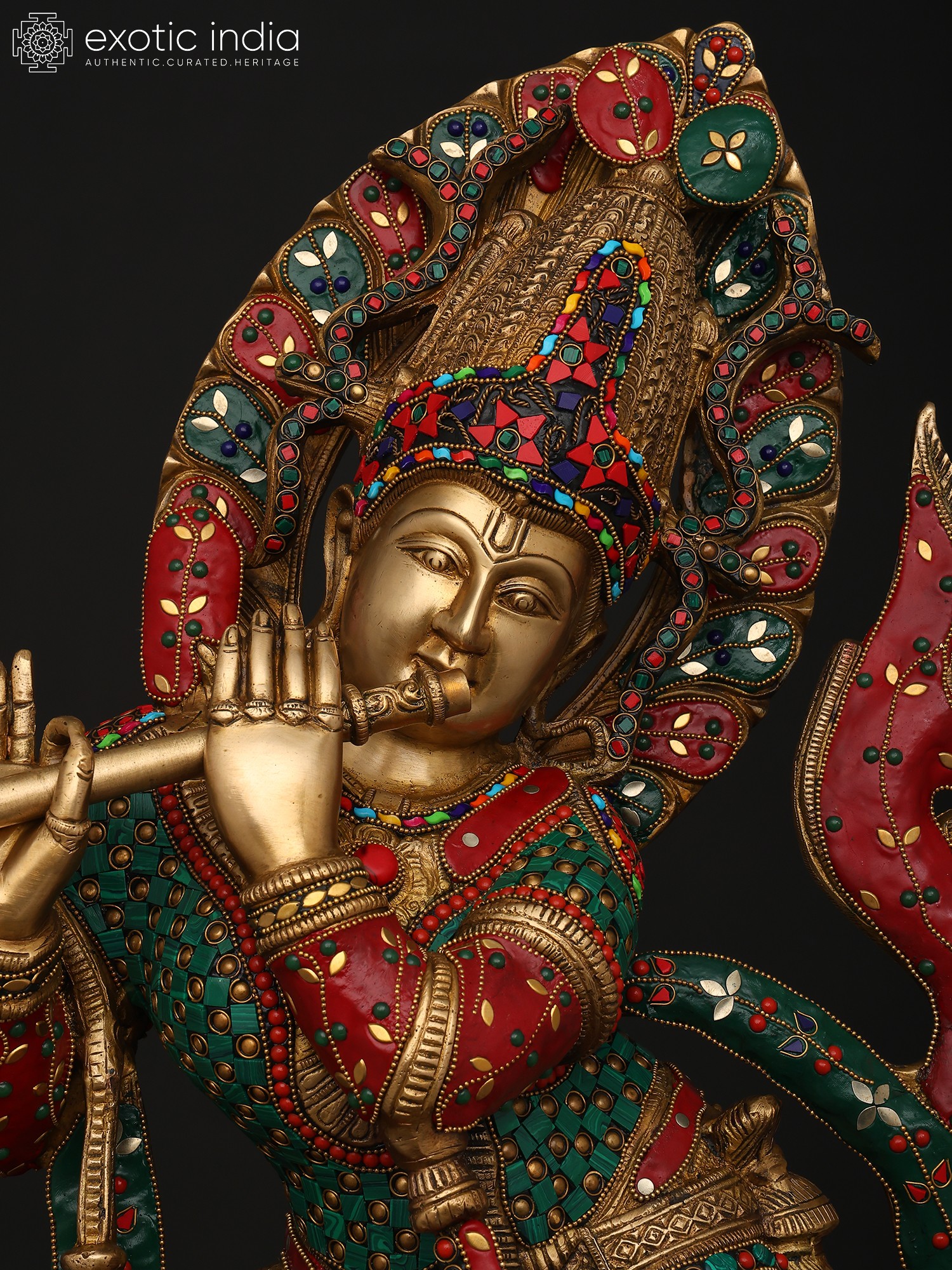 23" Fluting Krishna In Brass | Handmade | Made In India