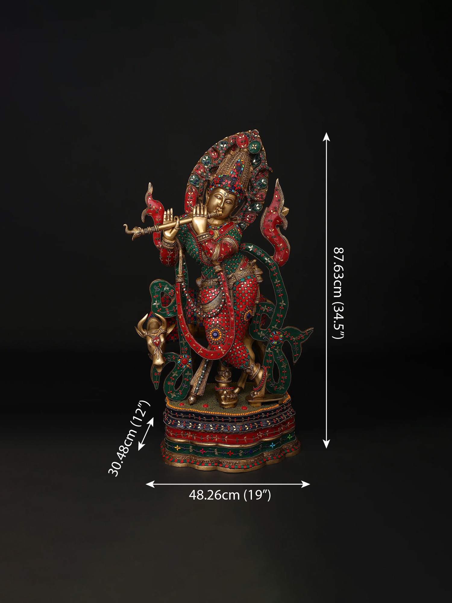 27" Large Fluting Krishna Lamp in Brass | Exquisite Handmade Craft | Authentic Indian Art