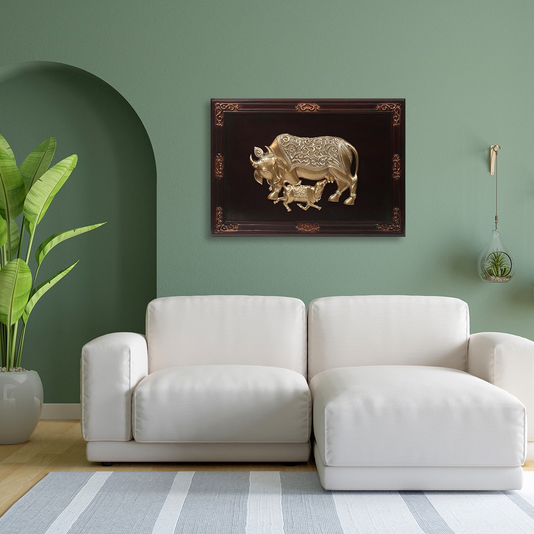16" Kamadhenu Cow Under The Kalpavriksh Tree | Wall Hanging