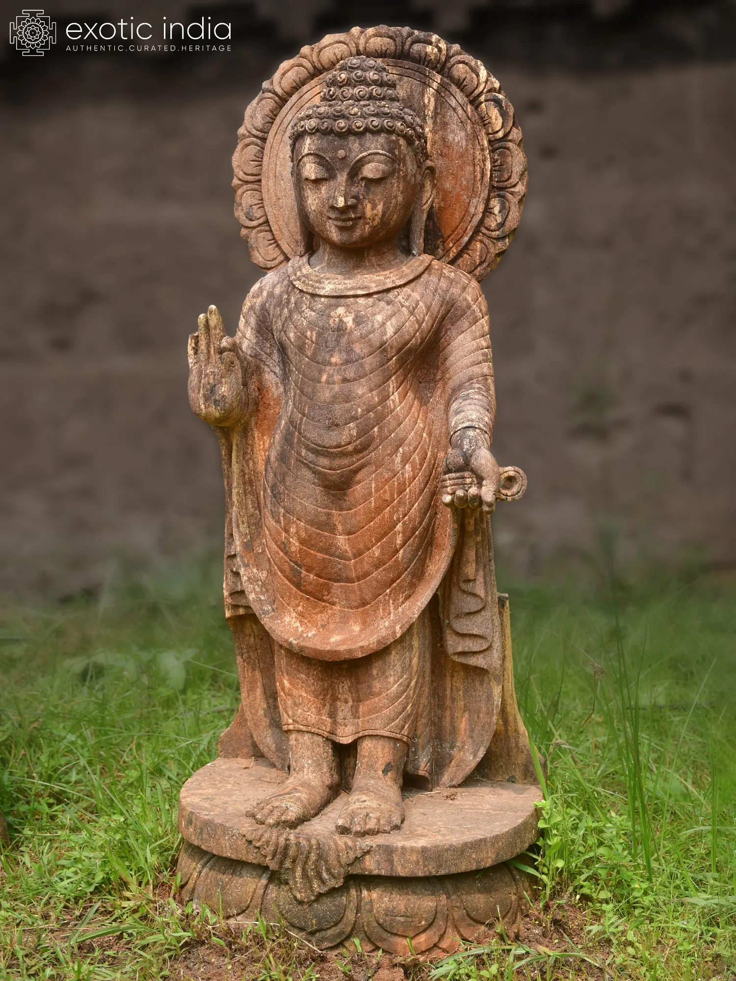 7" Lord Buddha Standing in Blessing Pose | Orissa Stone Statue | Hand Carved