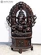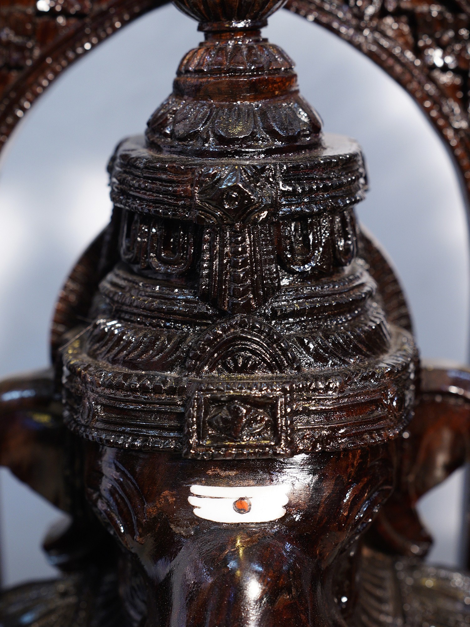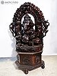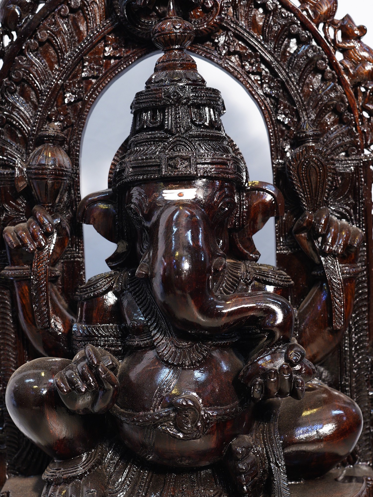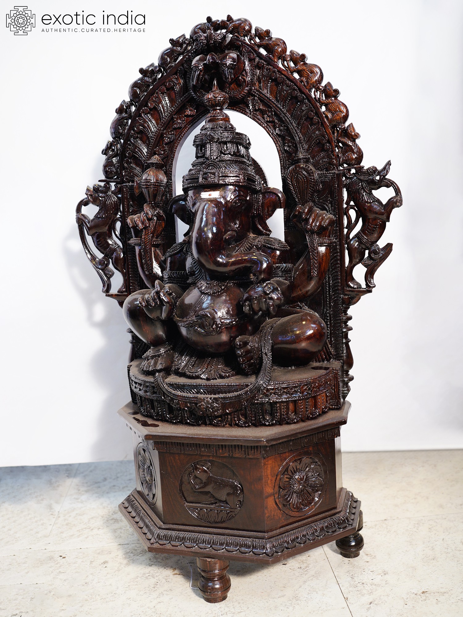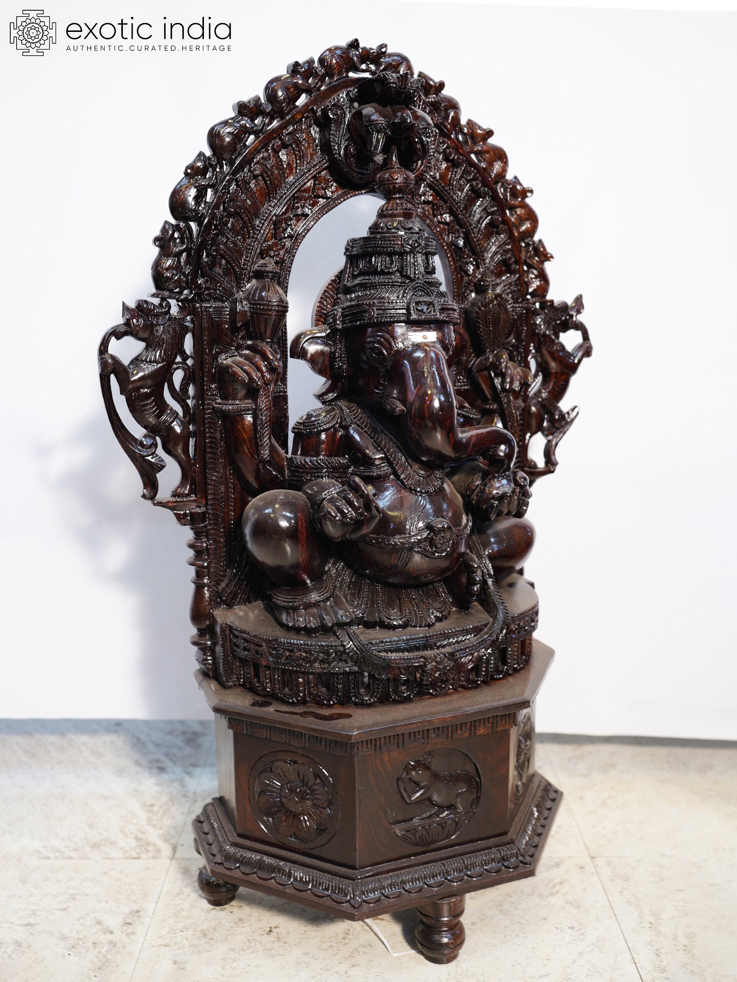 Large Size Lord Ganesha Wooden Statue Seated atop His Vahana