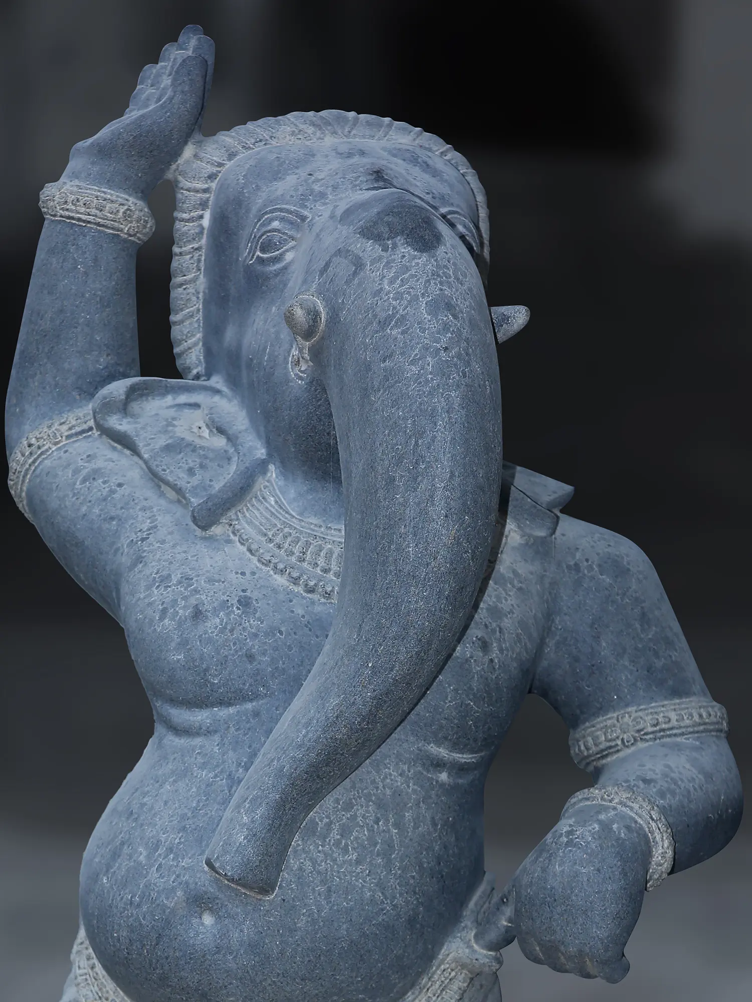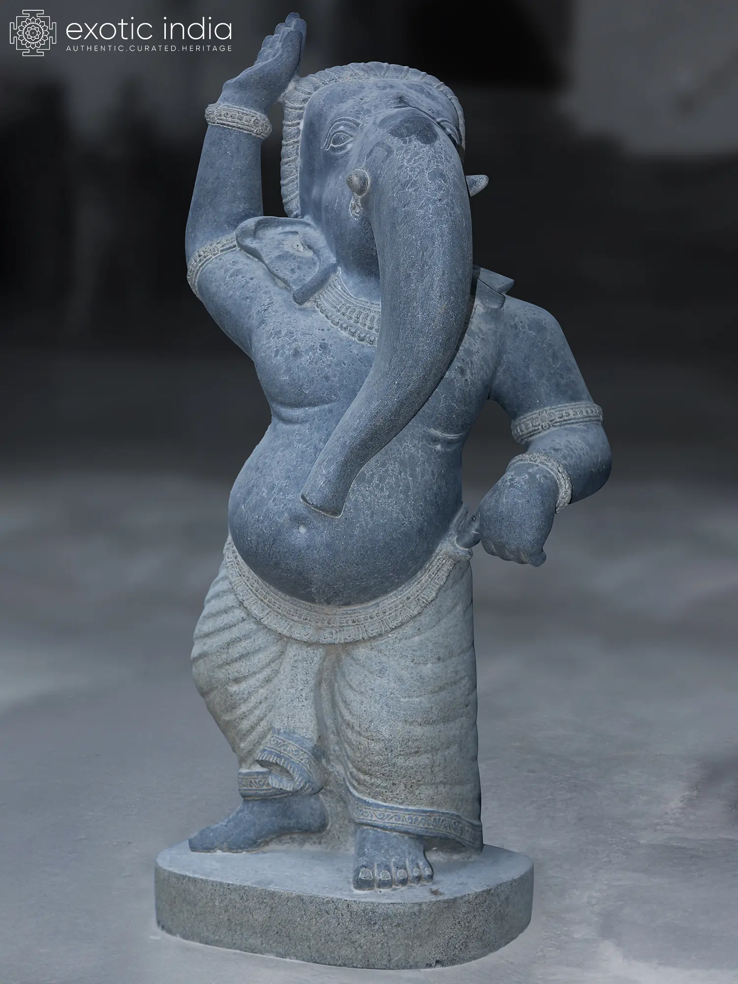 36" Dancing Ganesha Standing on Base | Granite Stone Sculpture