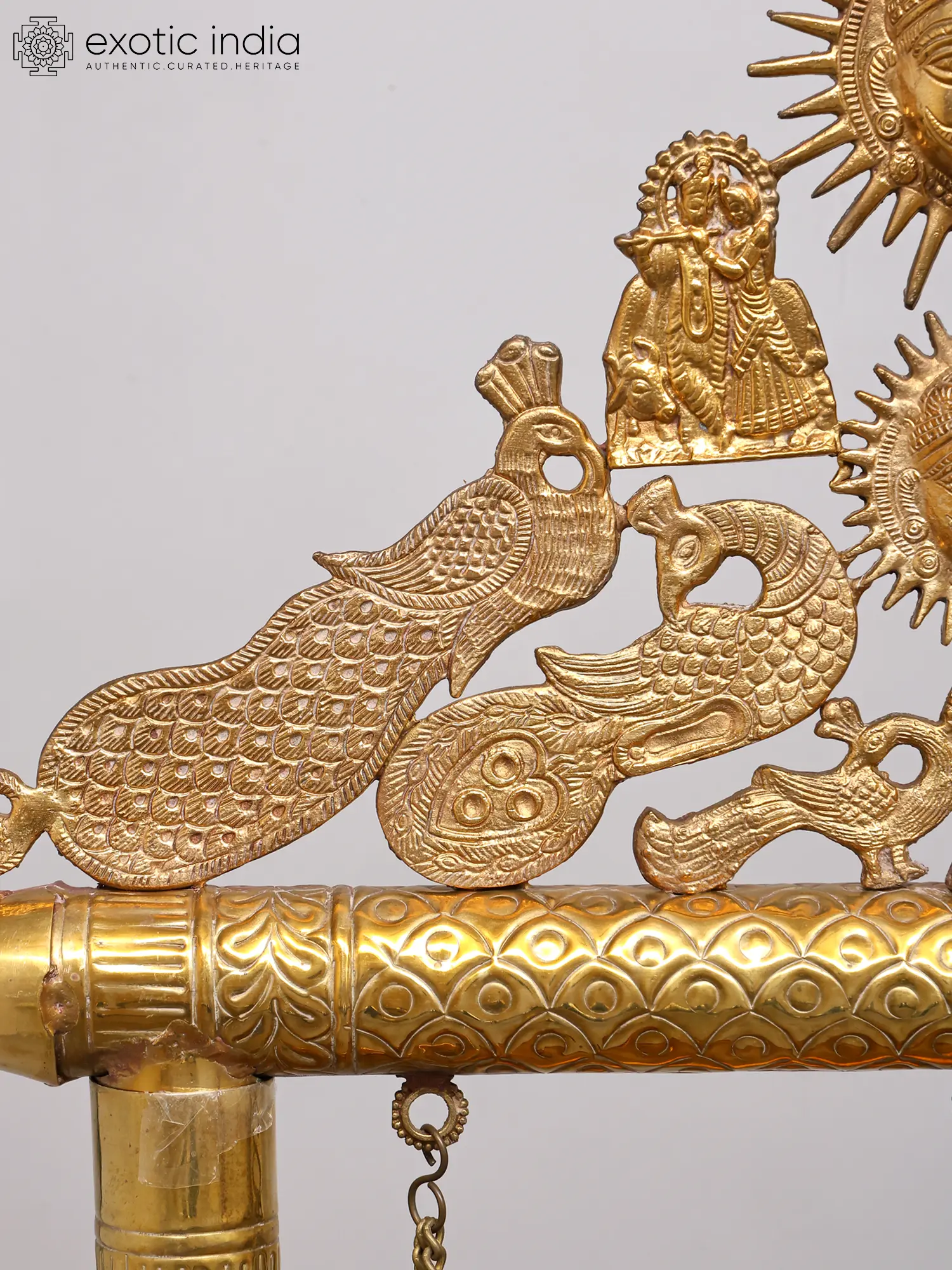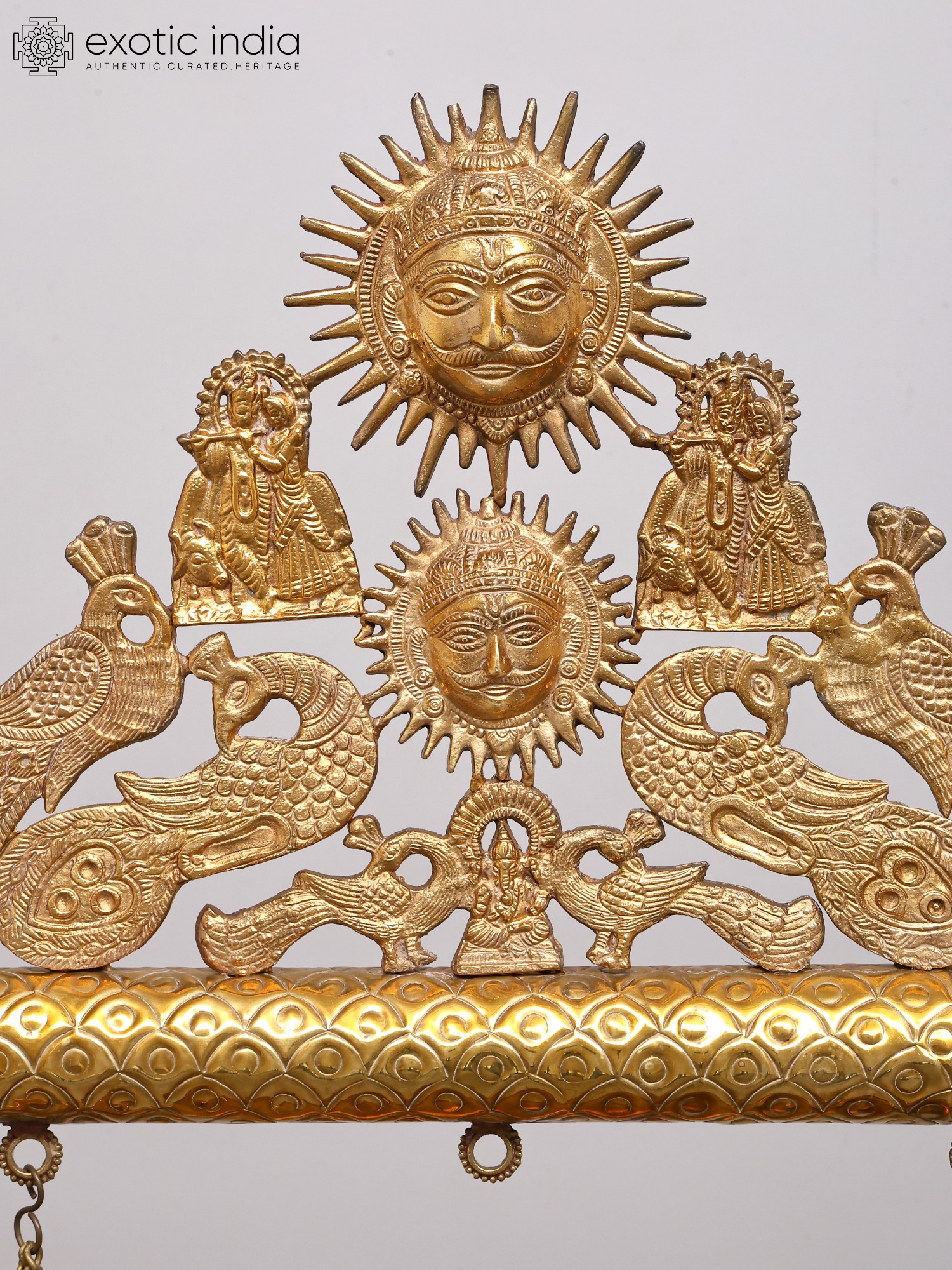 This creation draws inspiration from the rich tapestry of Hindu mythology, evoking the divine play (Lila) of deities. Such swings are traditionally associated with the child Krishna, adored as 'Lalan,' often depicted playing on ornate swings. The Sun God motif also connects to Vedic traditions, representing life, energy, and cosmic order, further enriching its spiritual significance.