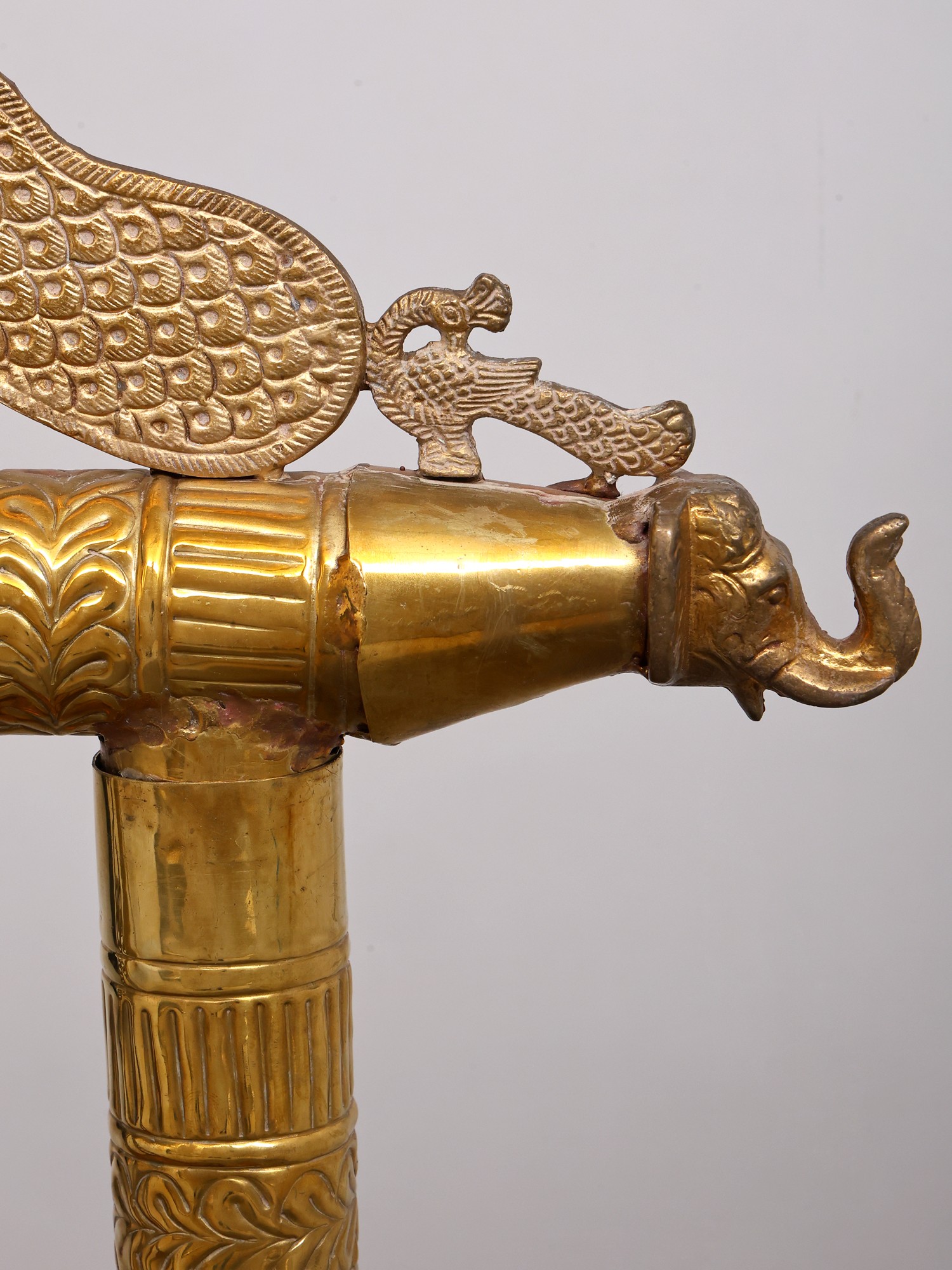 57" Large Designer Brass Peacock Lamp with Stand | Handcrafted Temple Decor