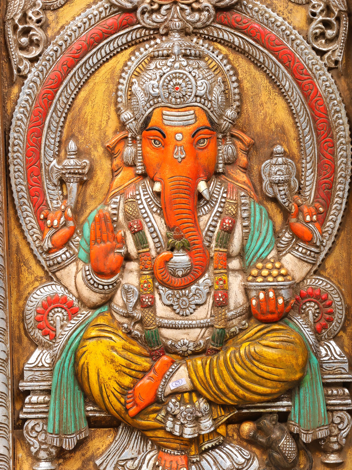 The Sindoori coloration highlights the divine presence of Ganesha.