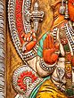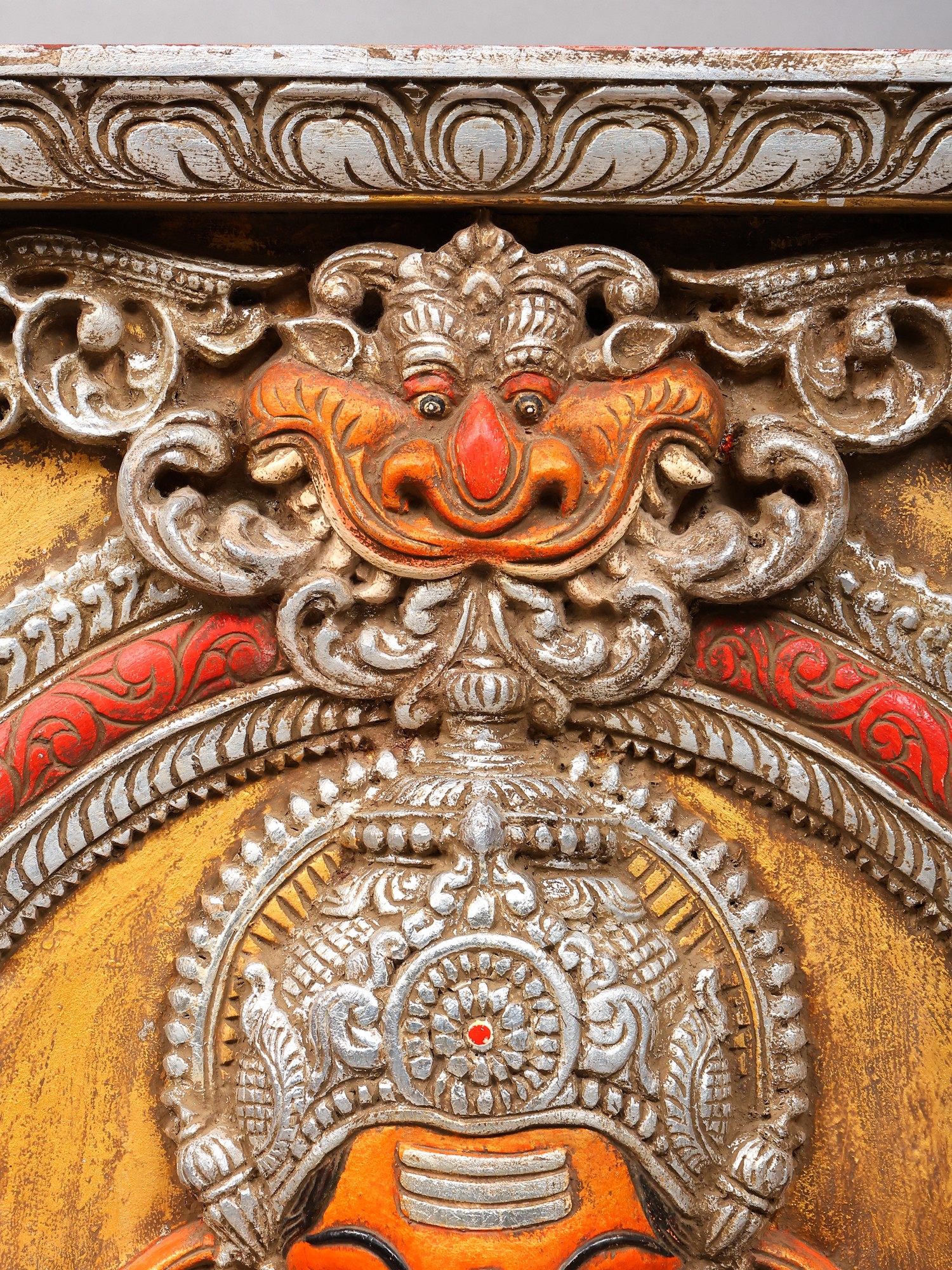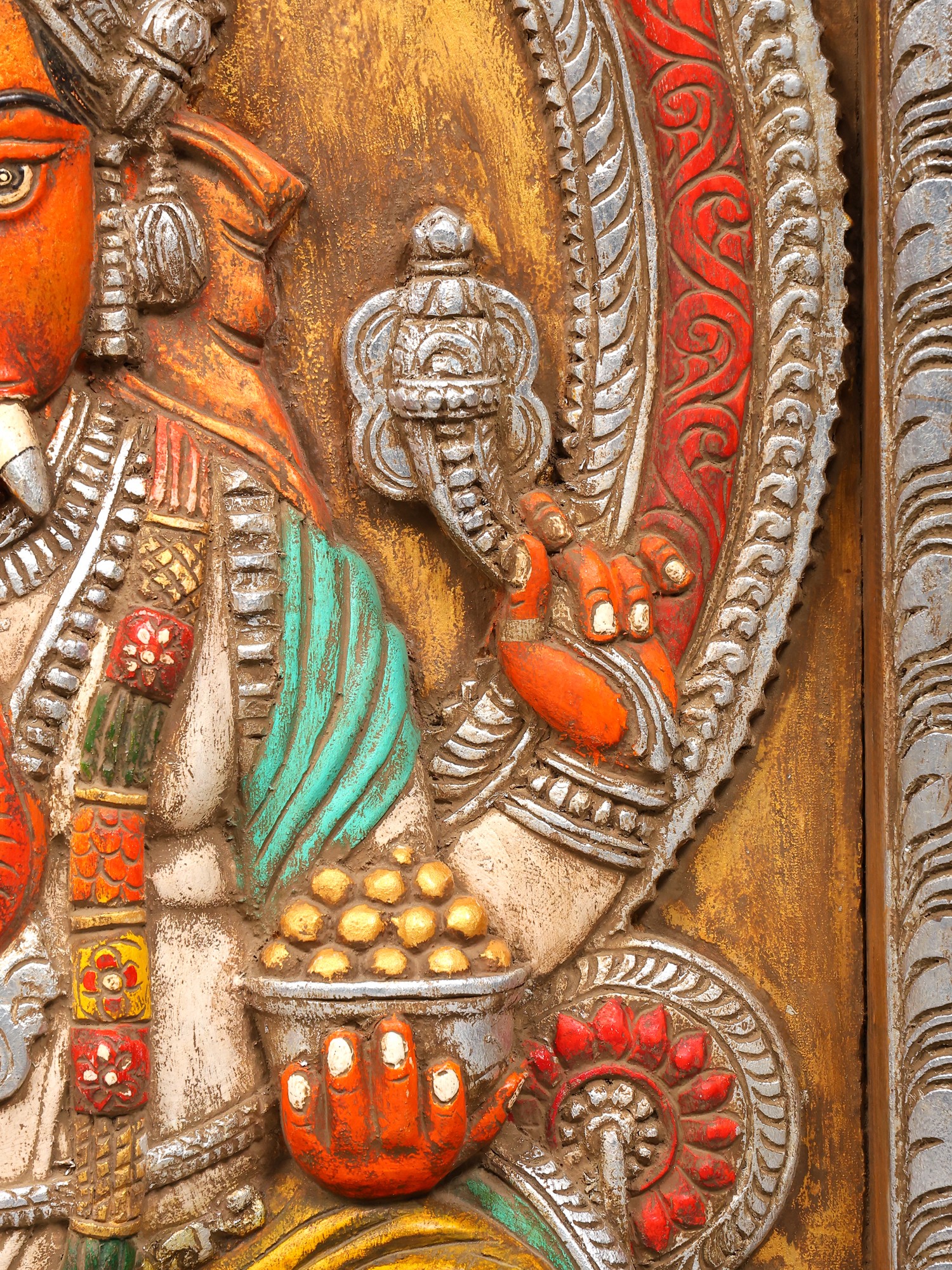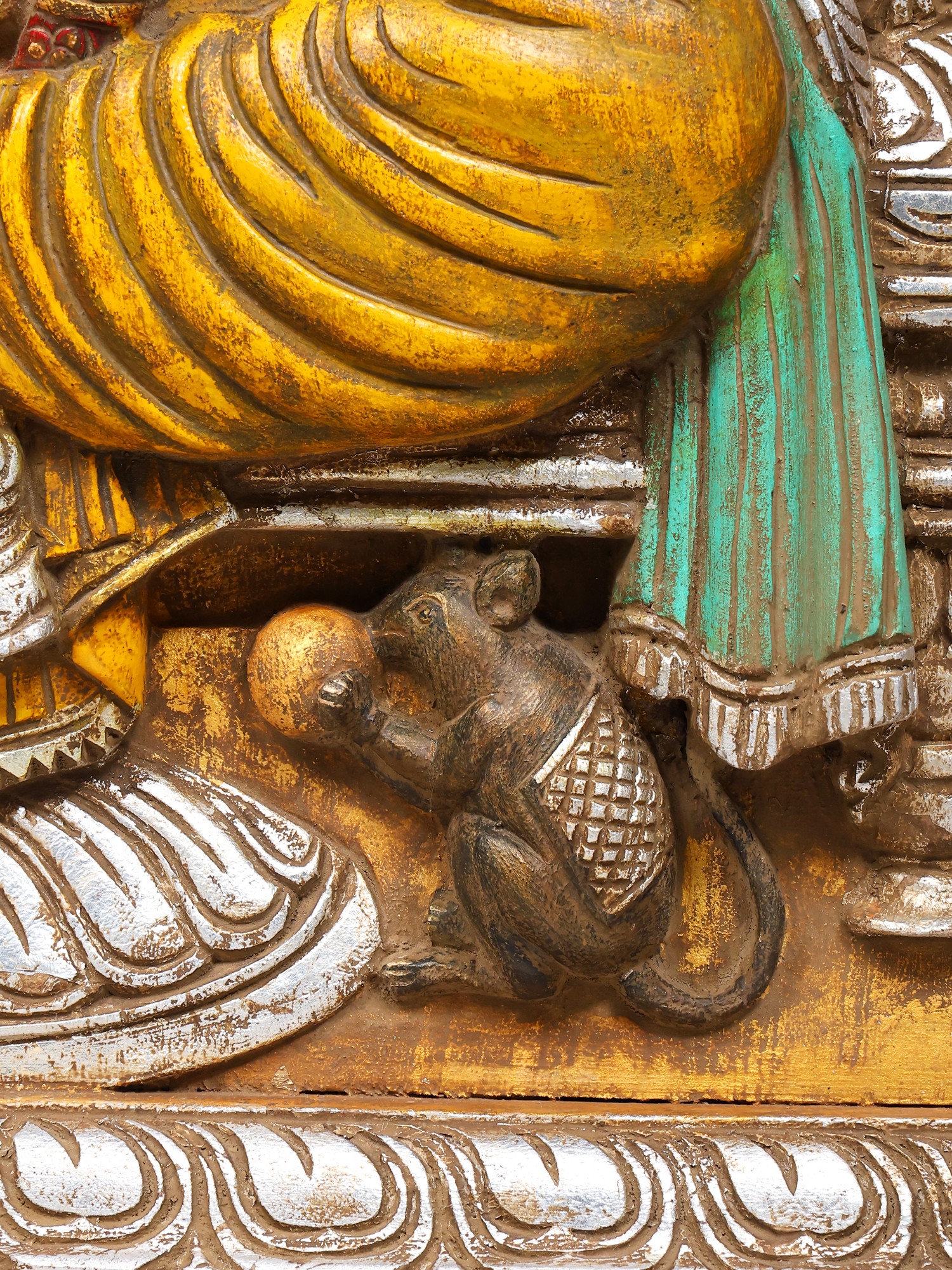 A detailed wood carving representing remover of obstacles and god of beginnings.