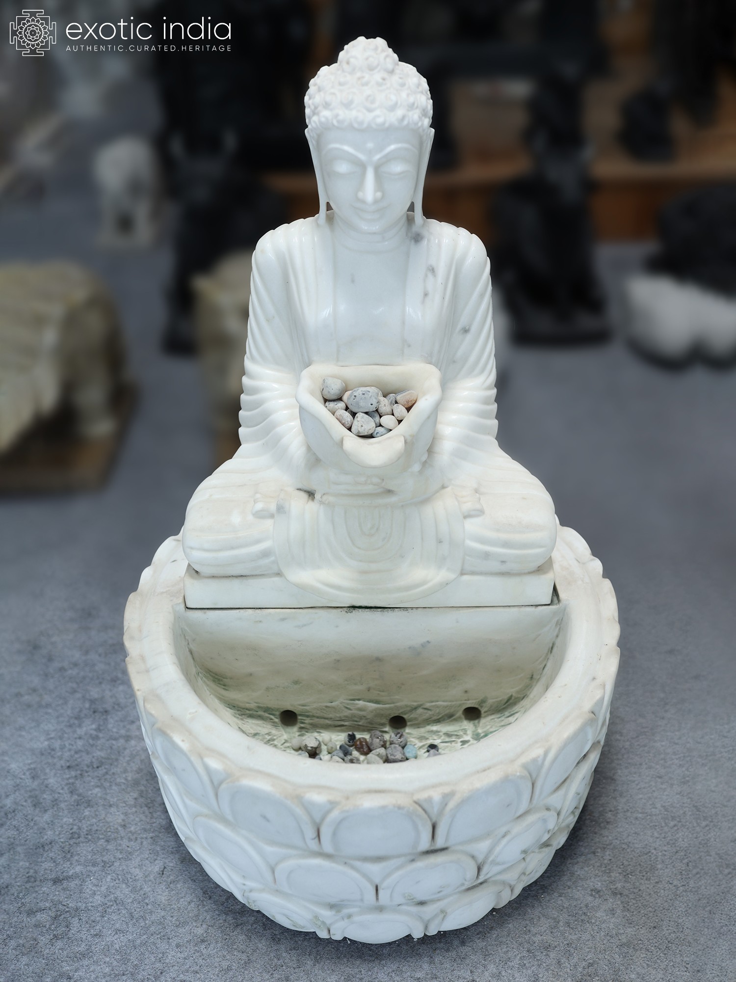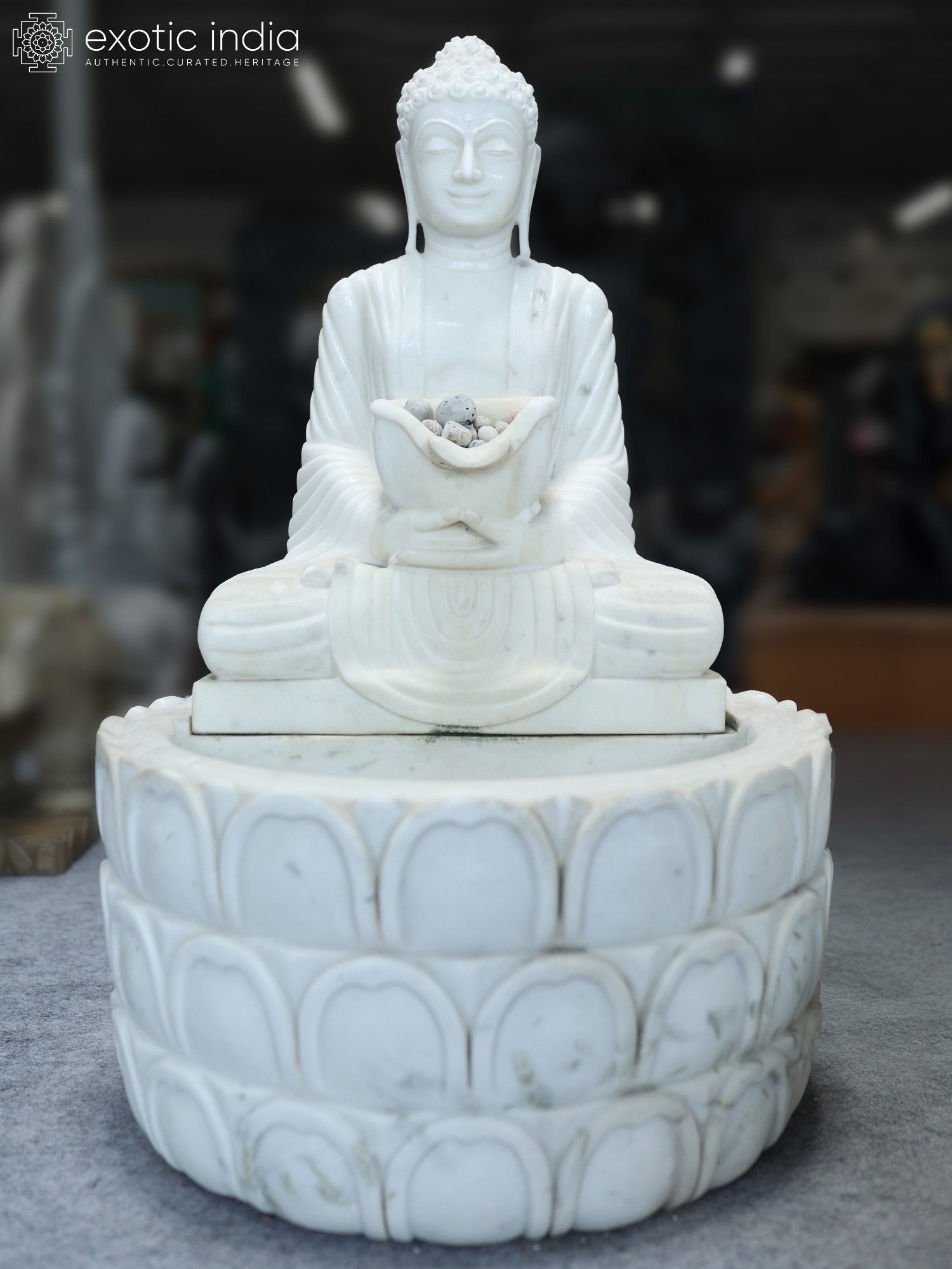 36" Gautam Buddha Water Fountain | Marble Sculpture | Exquisite Indian Art