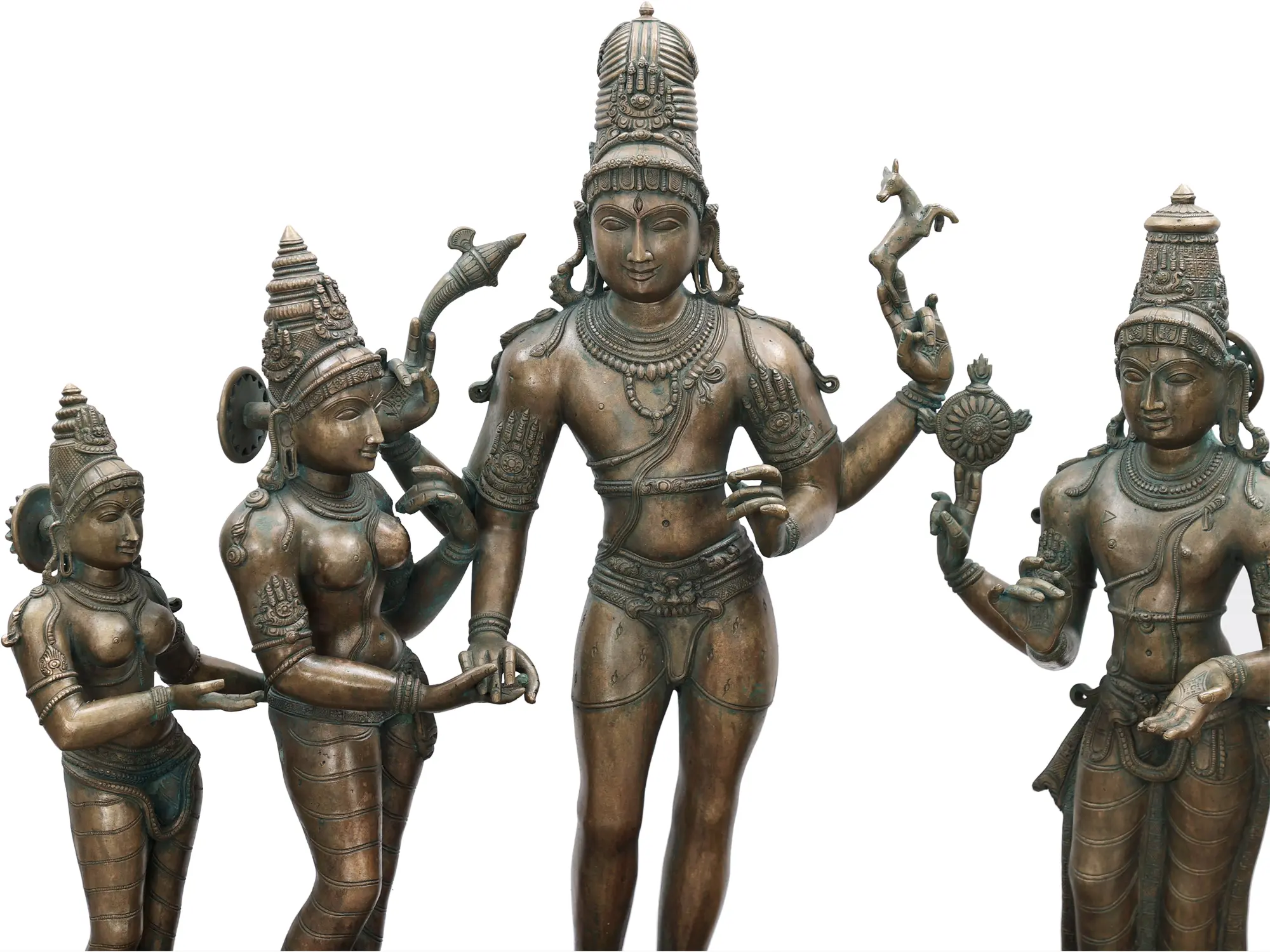 12" Standing Shiva Parvati Idol in Blessing Gesture | Set of Two Brass Statues