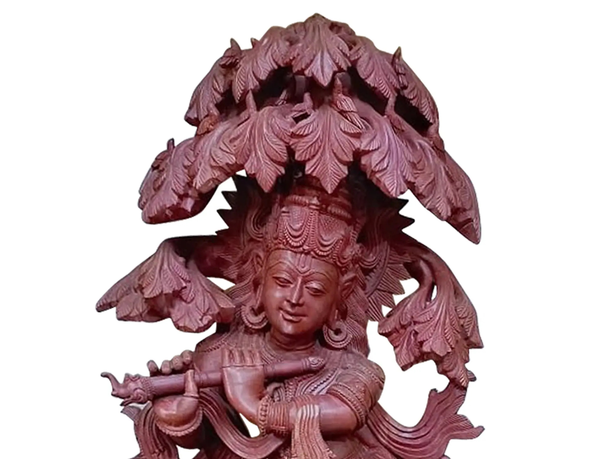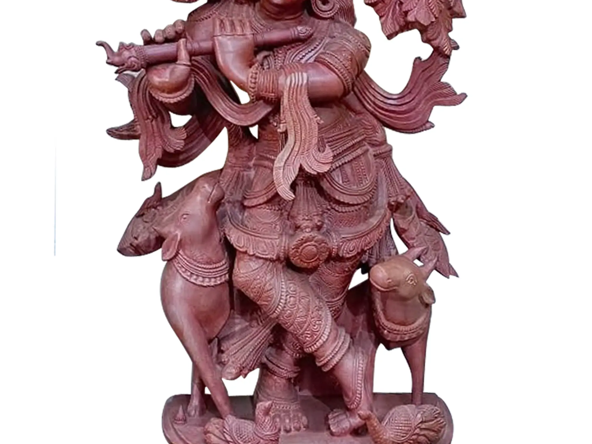 28" Large Size Lord Krishna with a Cow and His Flute In Brass | Handcrafted In India