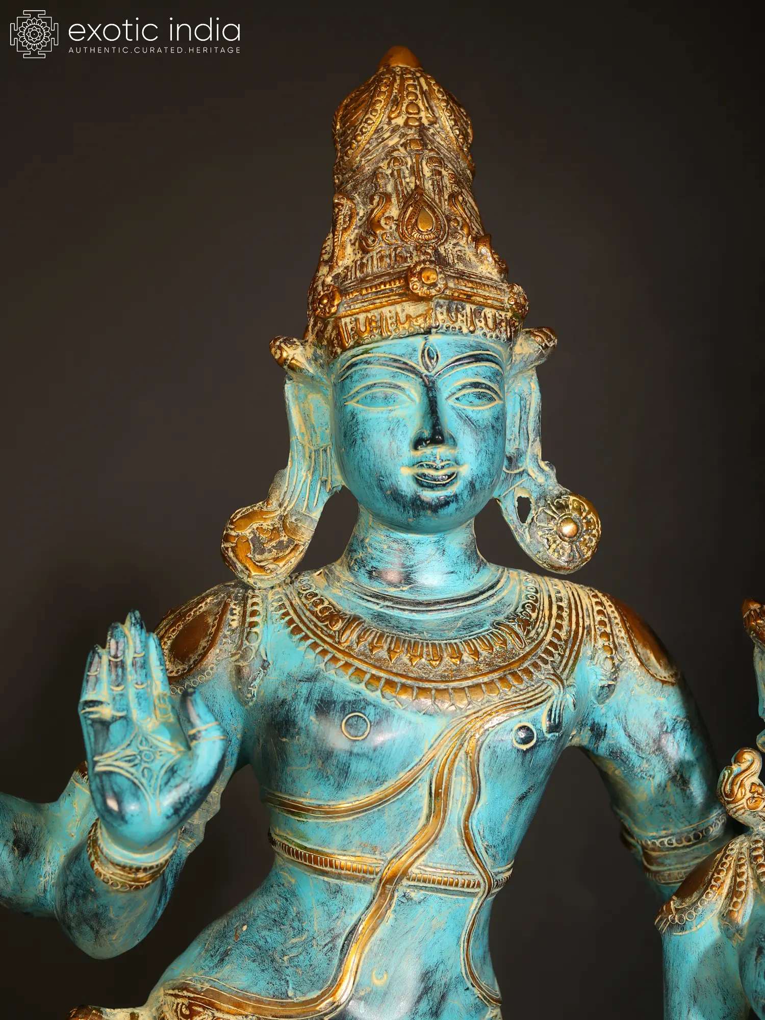 From the mutually passionate stance of Shiva-Parvati to the handsome features of their twin faces and their fine-boned limbs as well as the rest of their physique, the resemblance to the traditional bronzes is undeniable and must have been difficult to achieve in this medium.