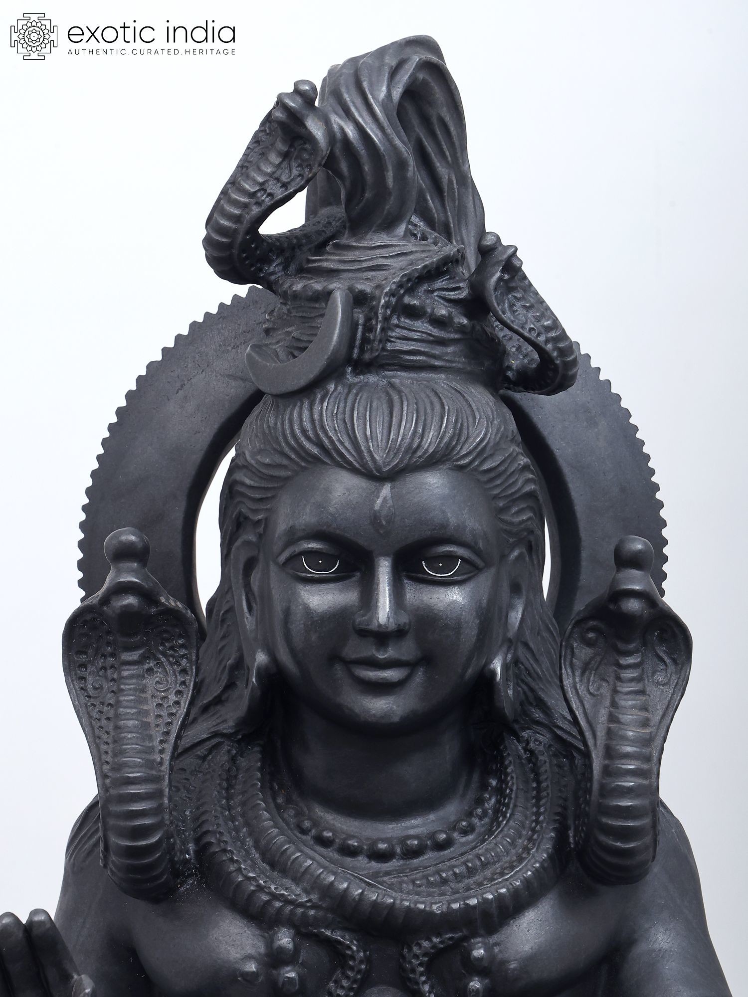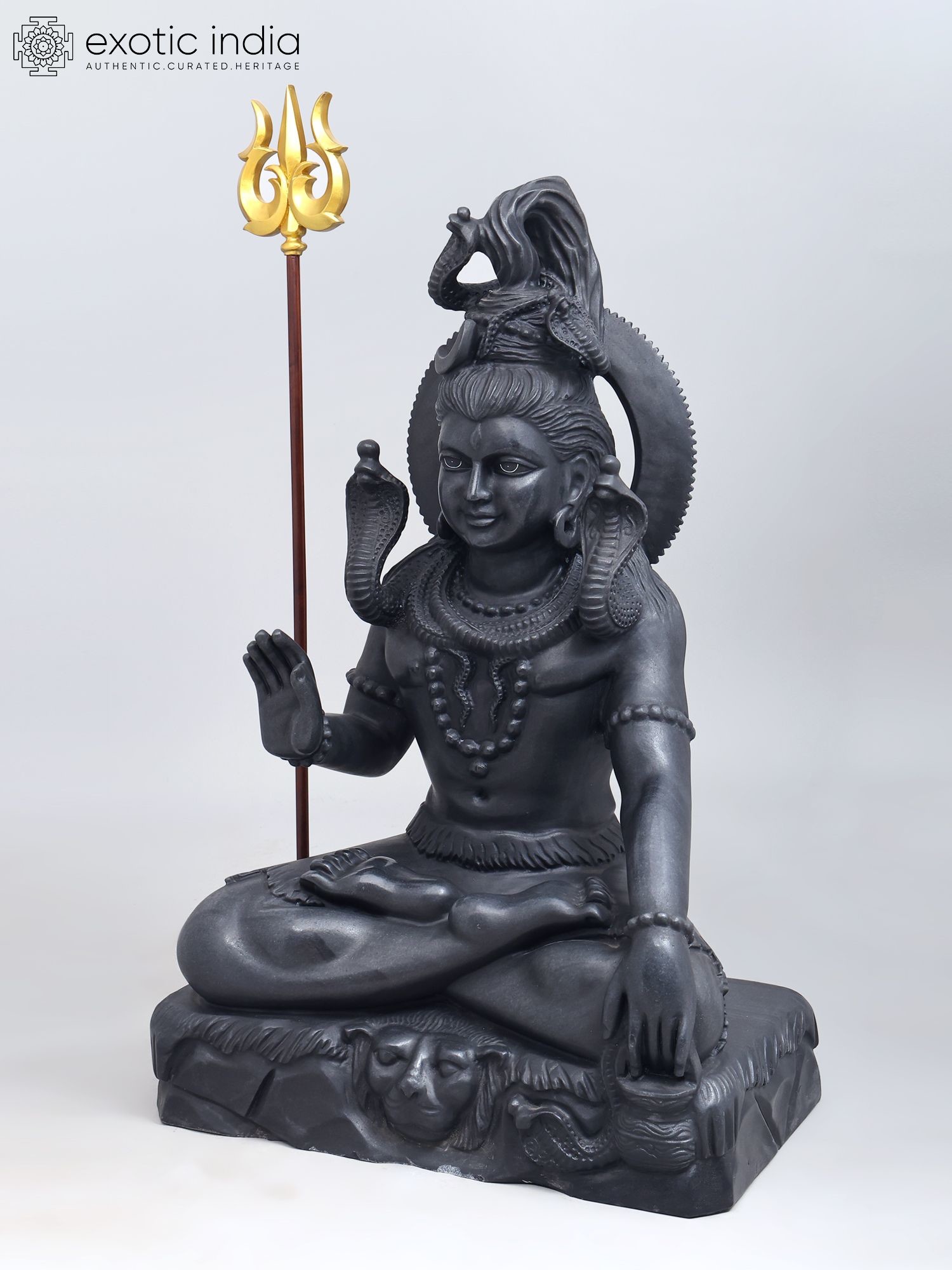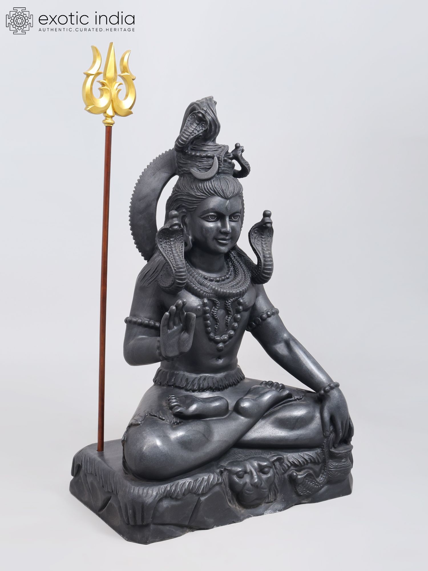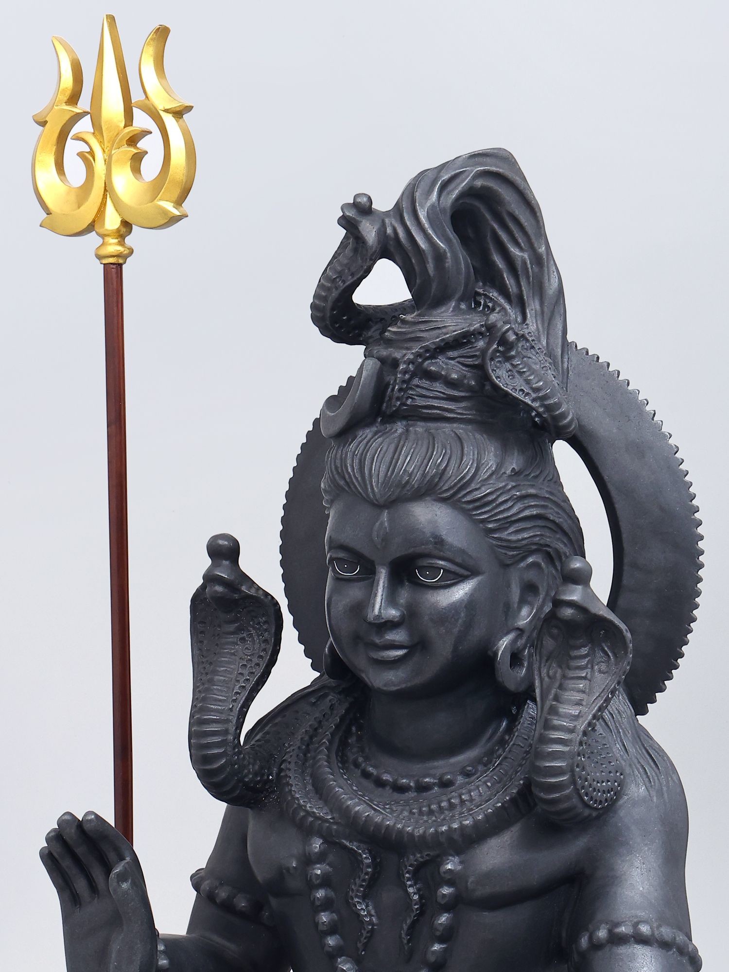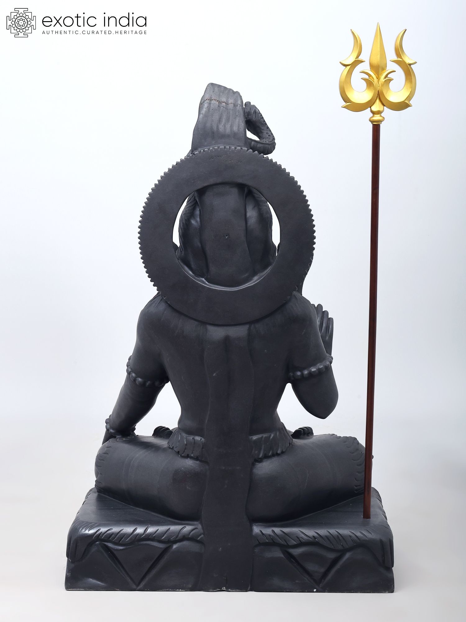 | Black Marble Sculpture with Wood Trishul | |