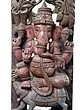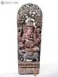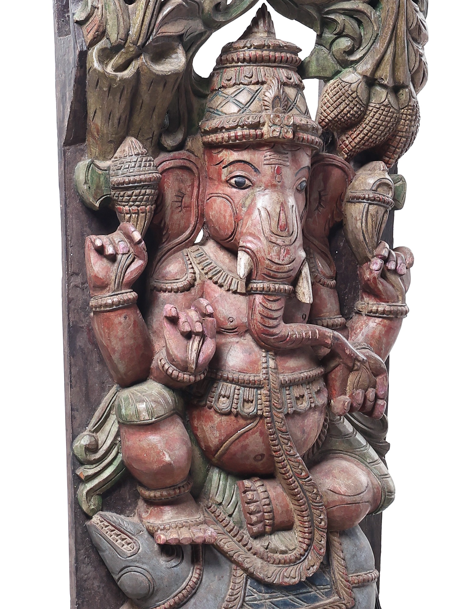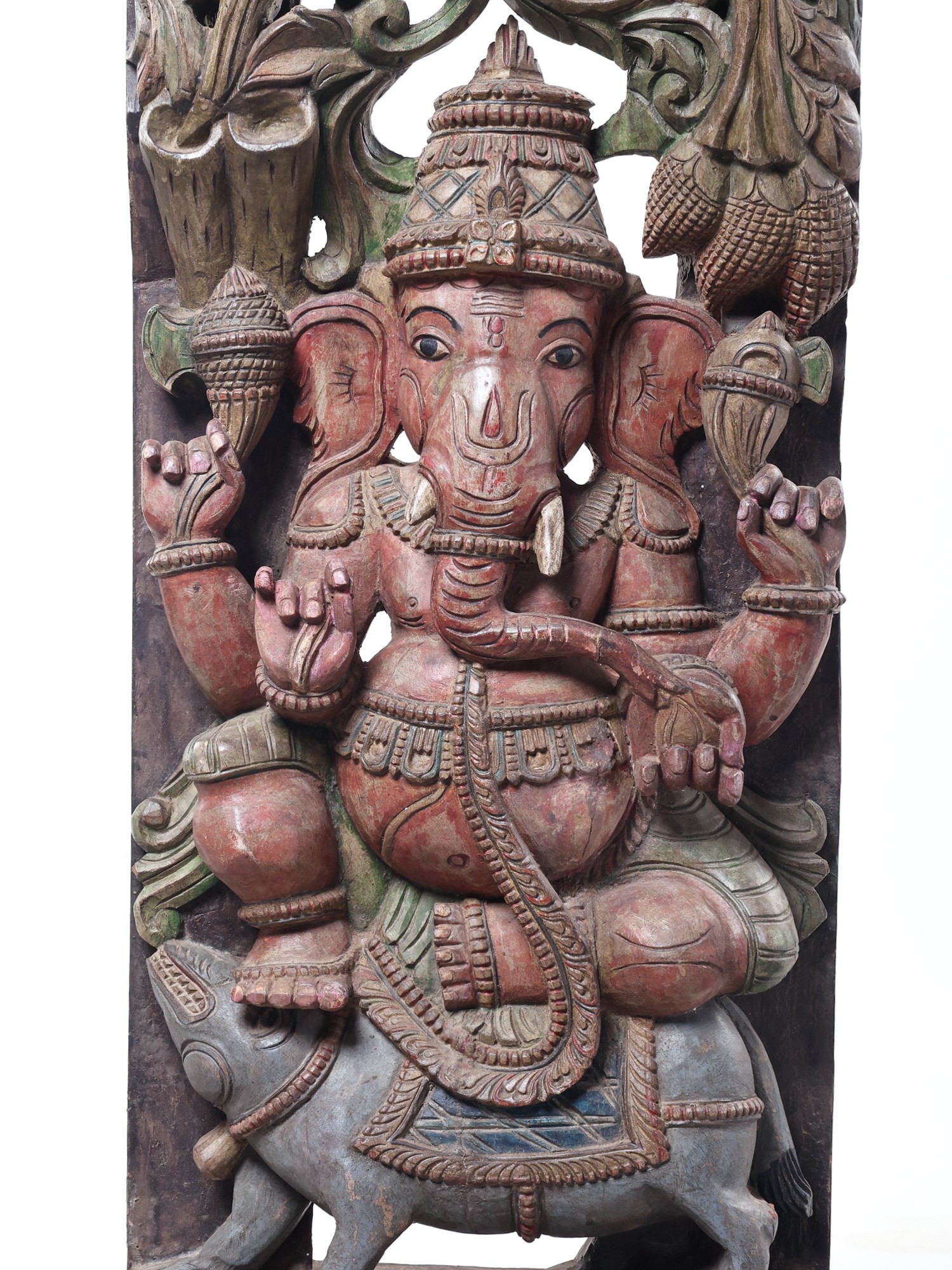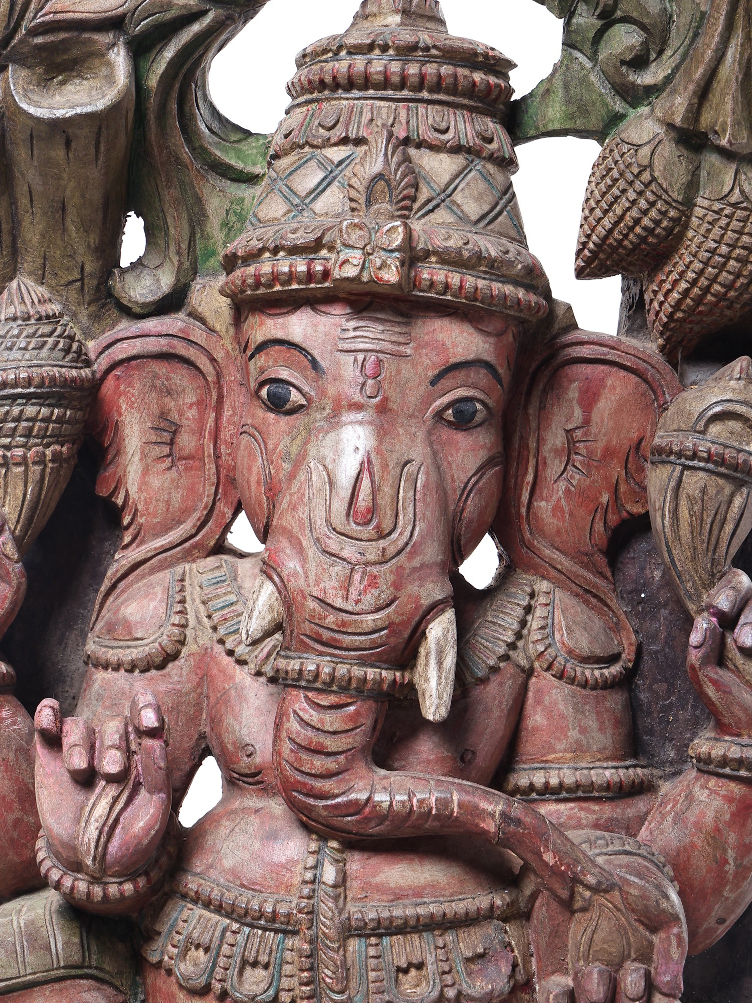 36" Large Four Armed Lord Ganesha Seated on His Vahana Mushak | Wood Carved Statue