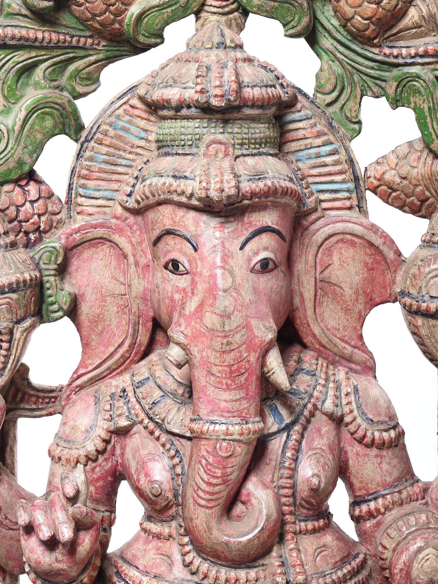 96" Huge Panchmukhi Lord Ganesha Wooden Statue | South Indian Temple Wood Carving