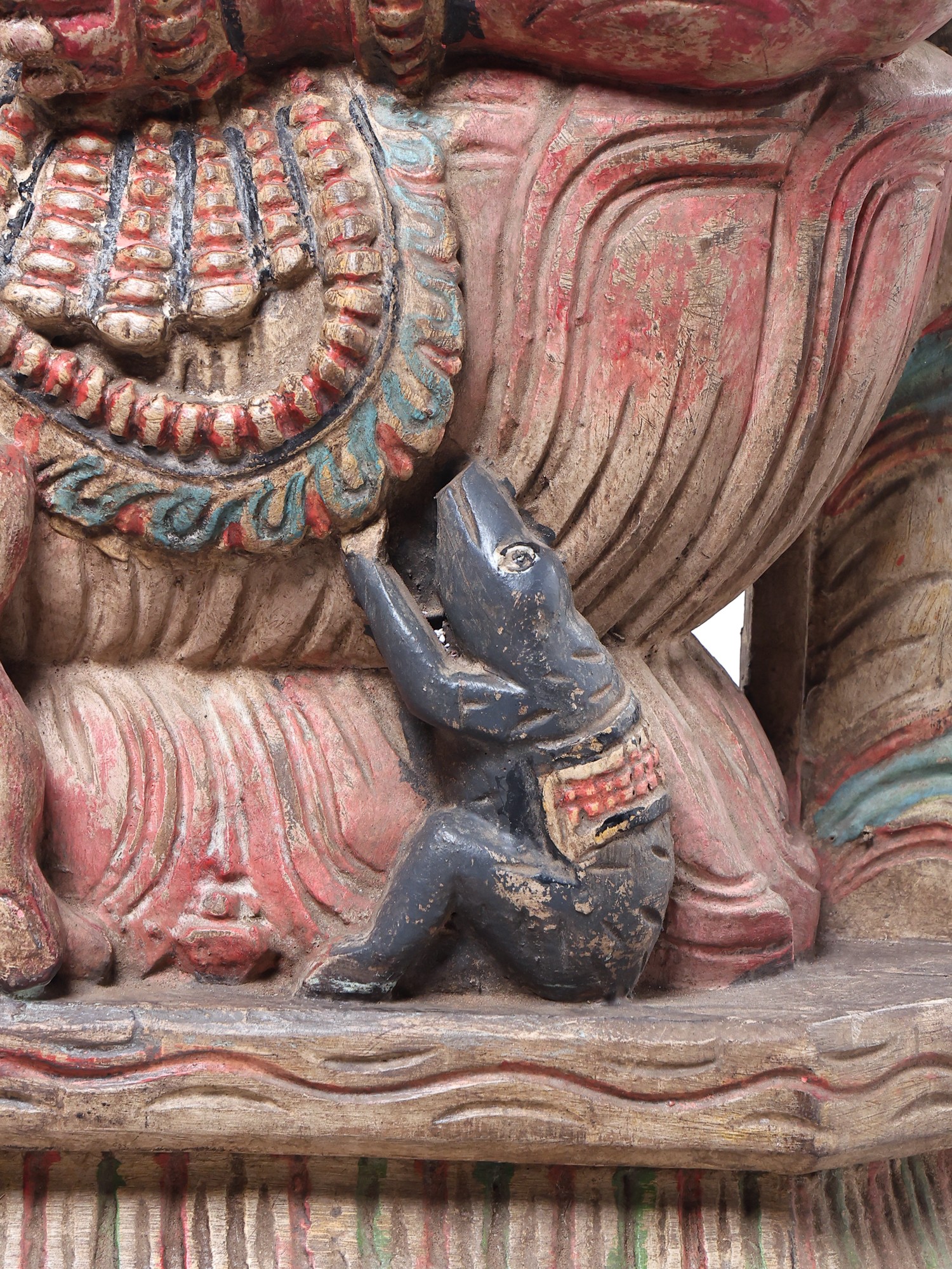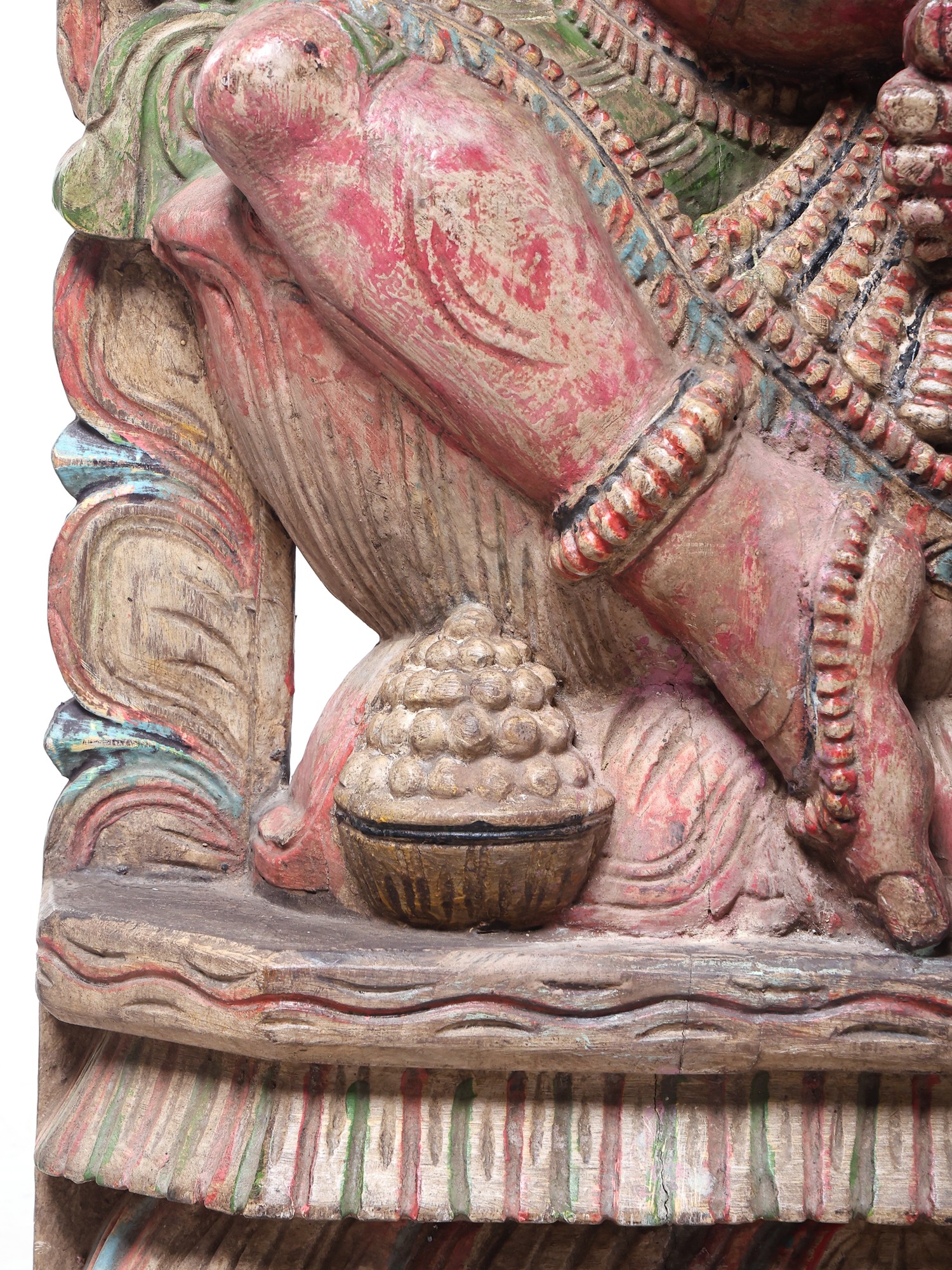 Large Size Lord Ganesha Wooden Statue Seated atop His Vahana