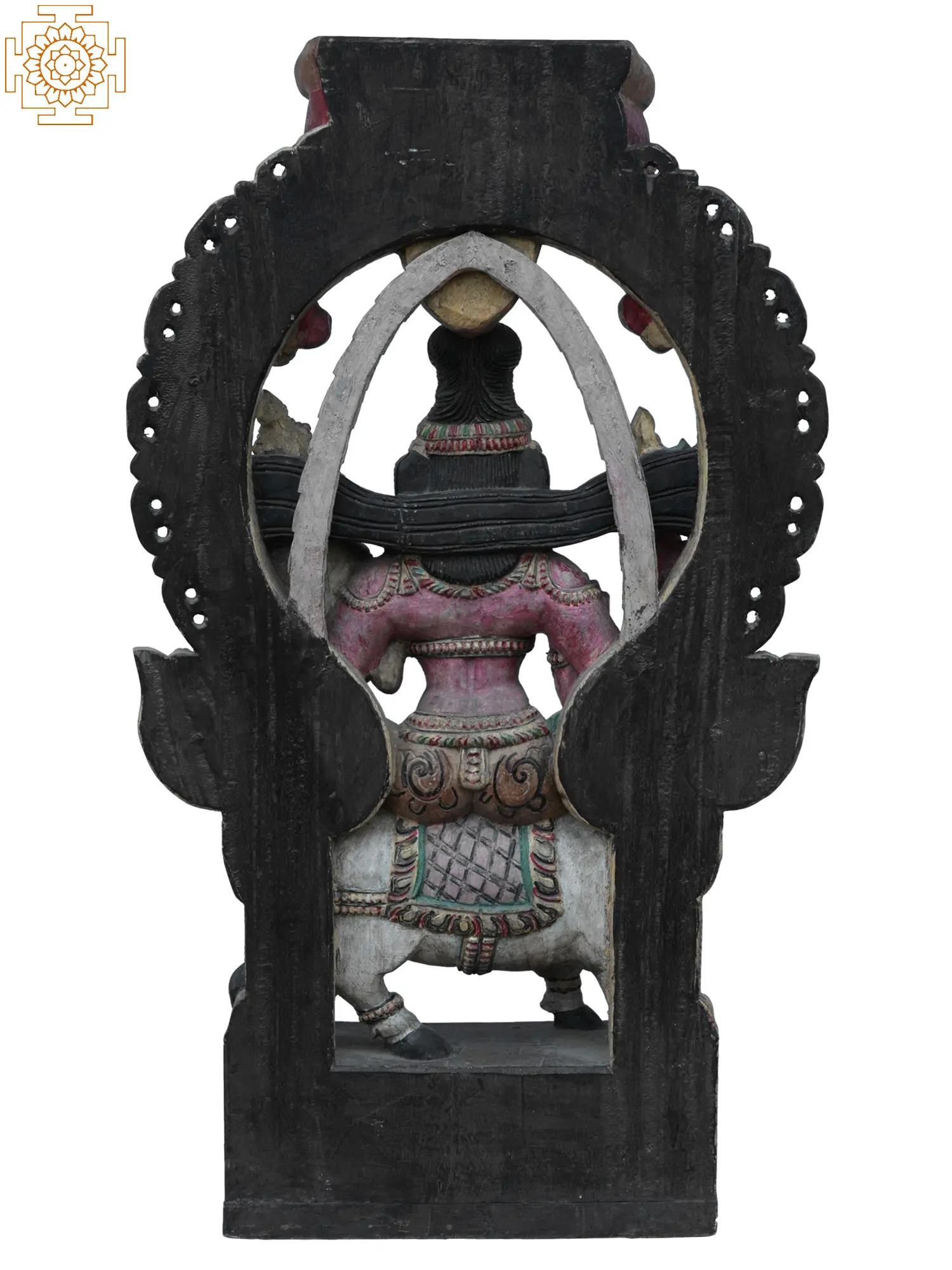 81" "Uma-Maheshwara" Large Wooden Shiva Parvati Seated on Nandi with Kirtimukha Arch