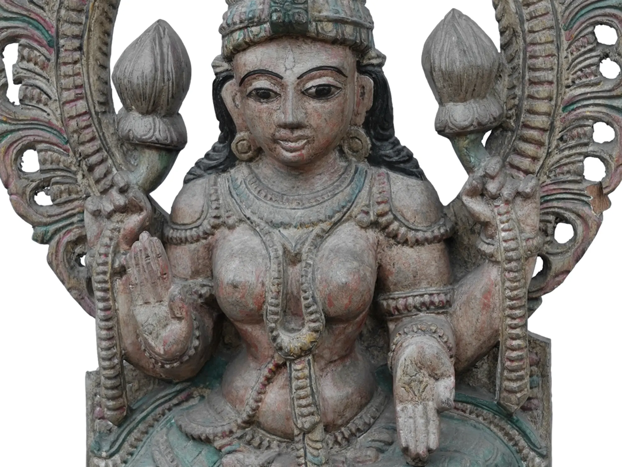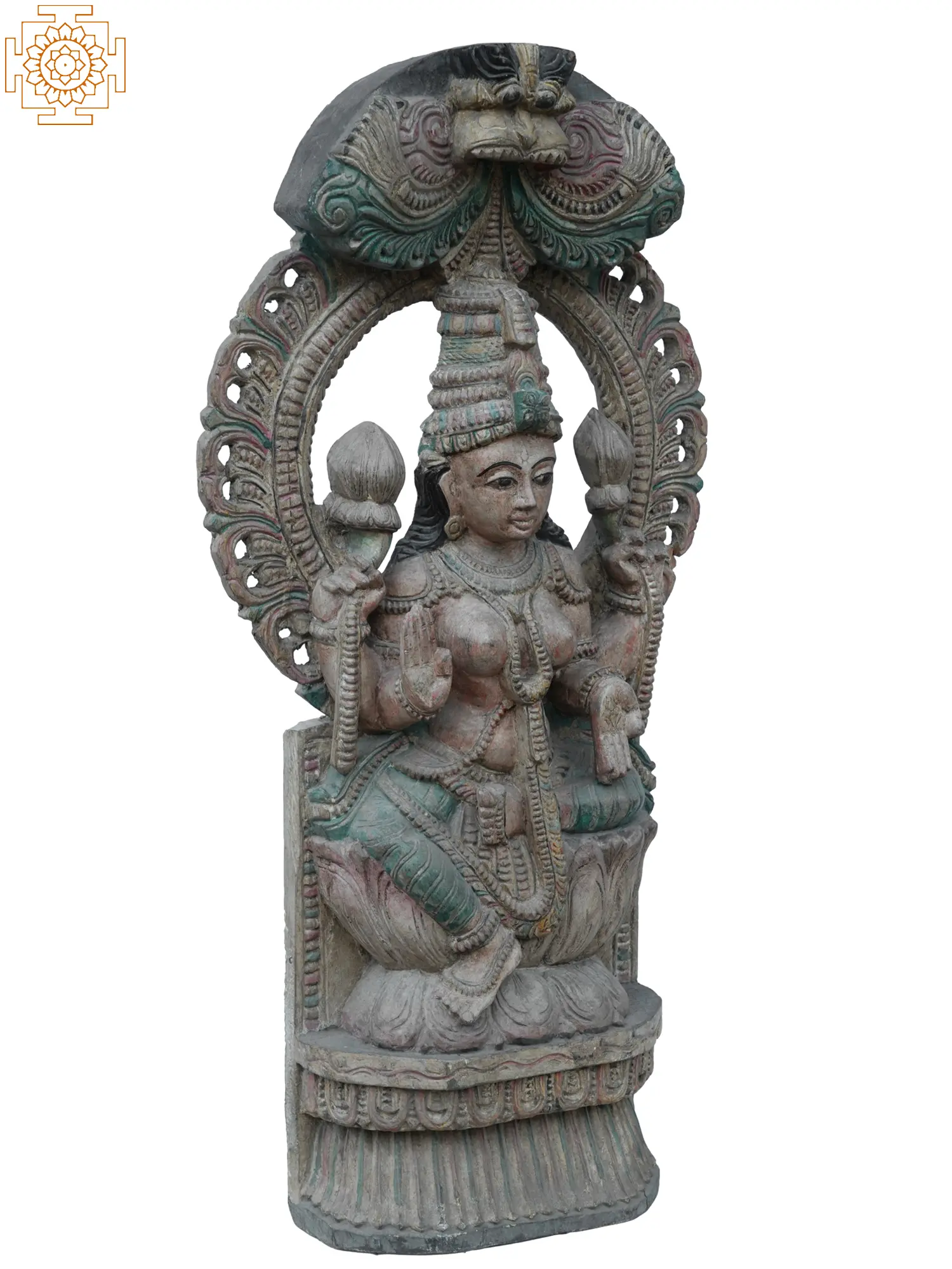 20" Blessing Goddess Lakshmi Seated on Lotus | Wood Carving