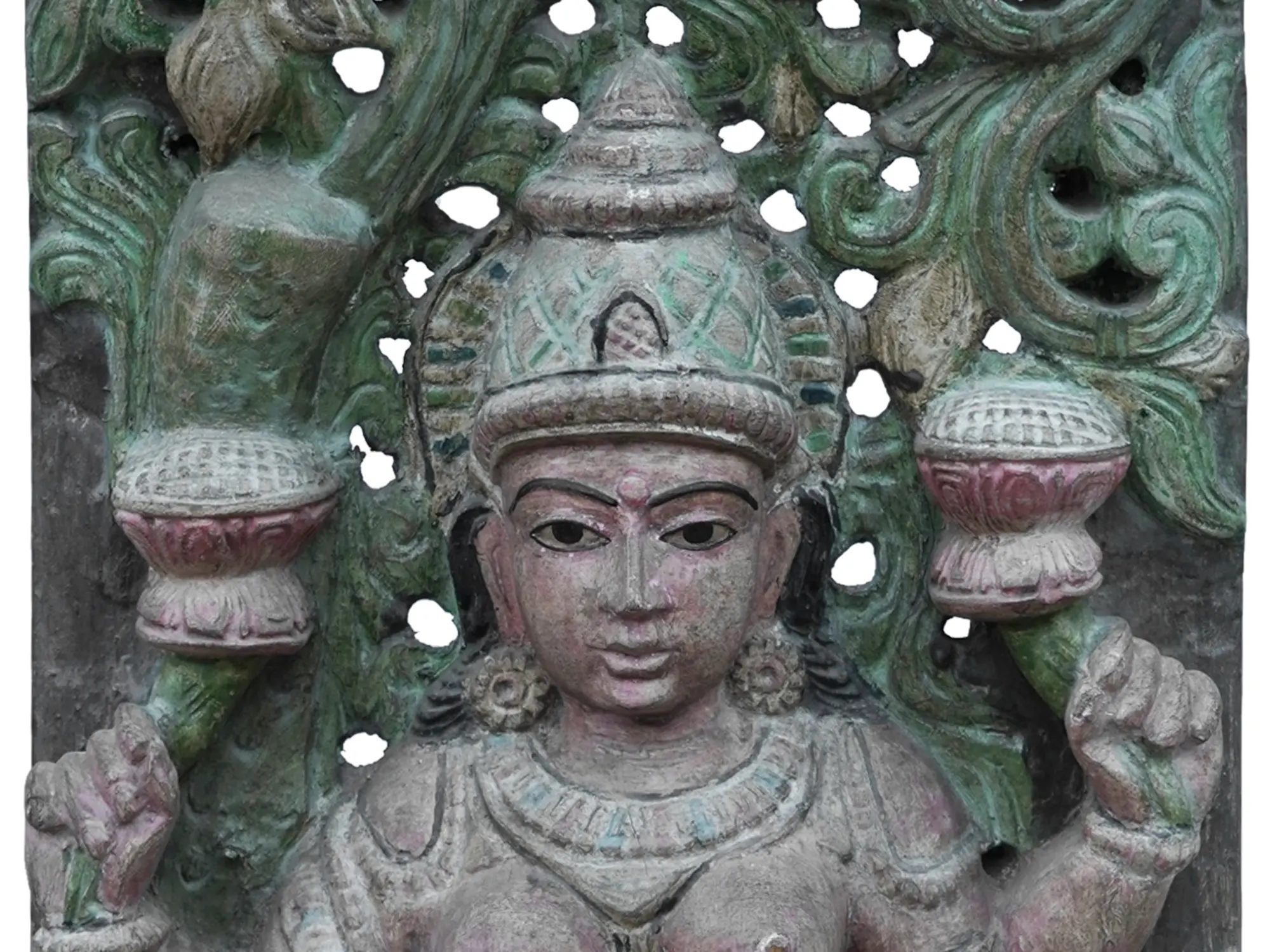 18" Pair of Goddess Lakshmi and Saraswati Kavadi Wall Panels | Wood Carving