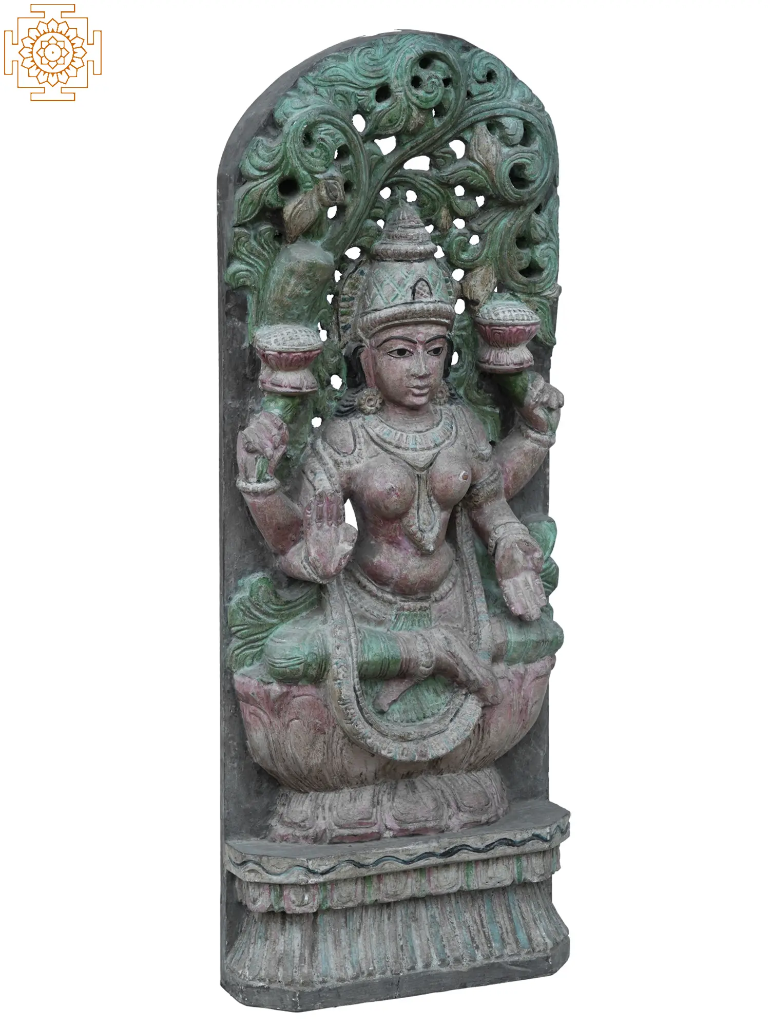 24" Blessing Goddess Lakshmi Seated on Lotus | Wood Carving