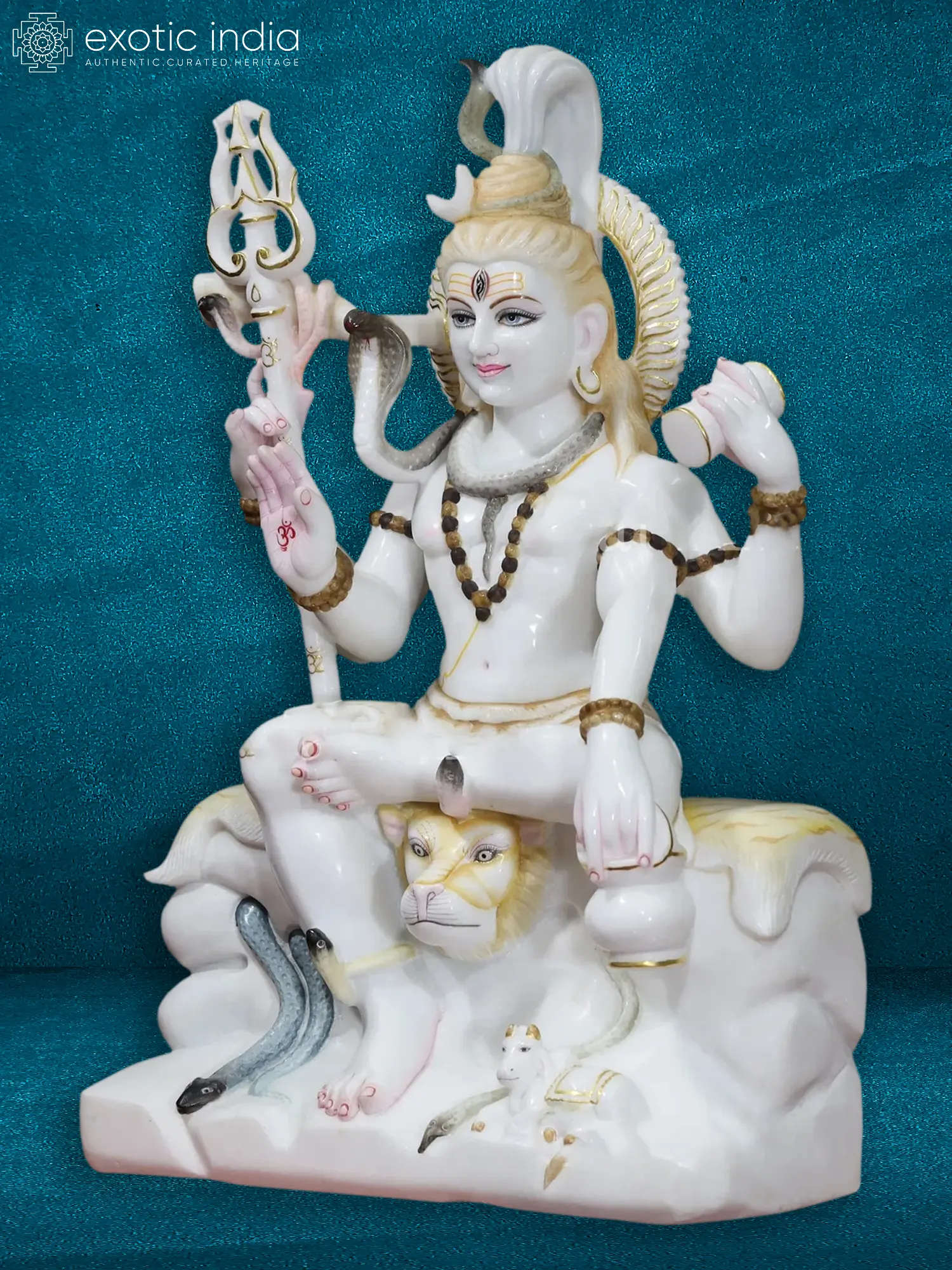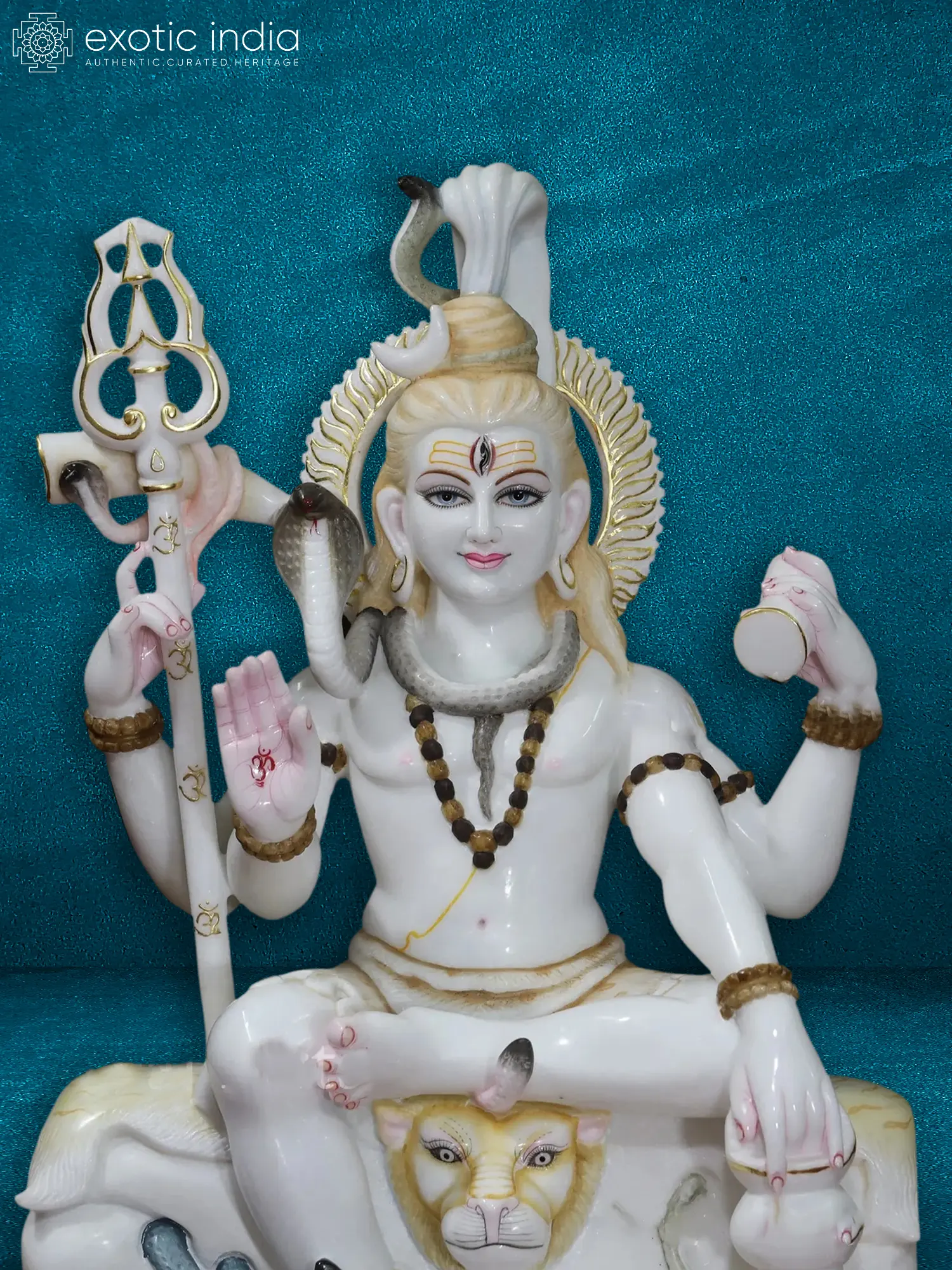 12" Nandi Waiting of Lord Shiva | White Makrana Marble Sculpture