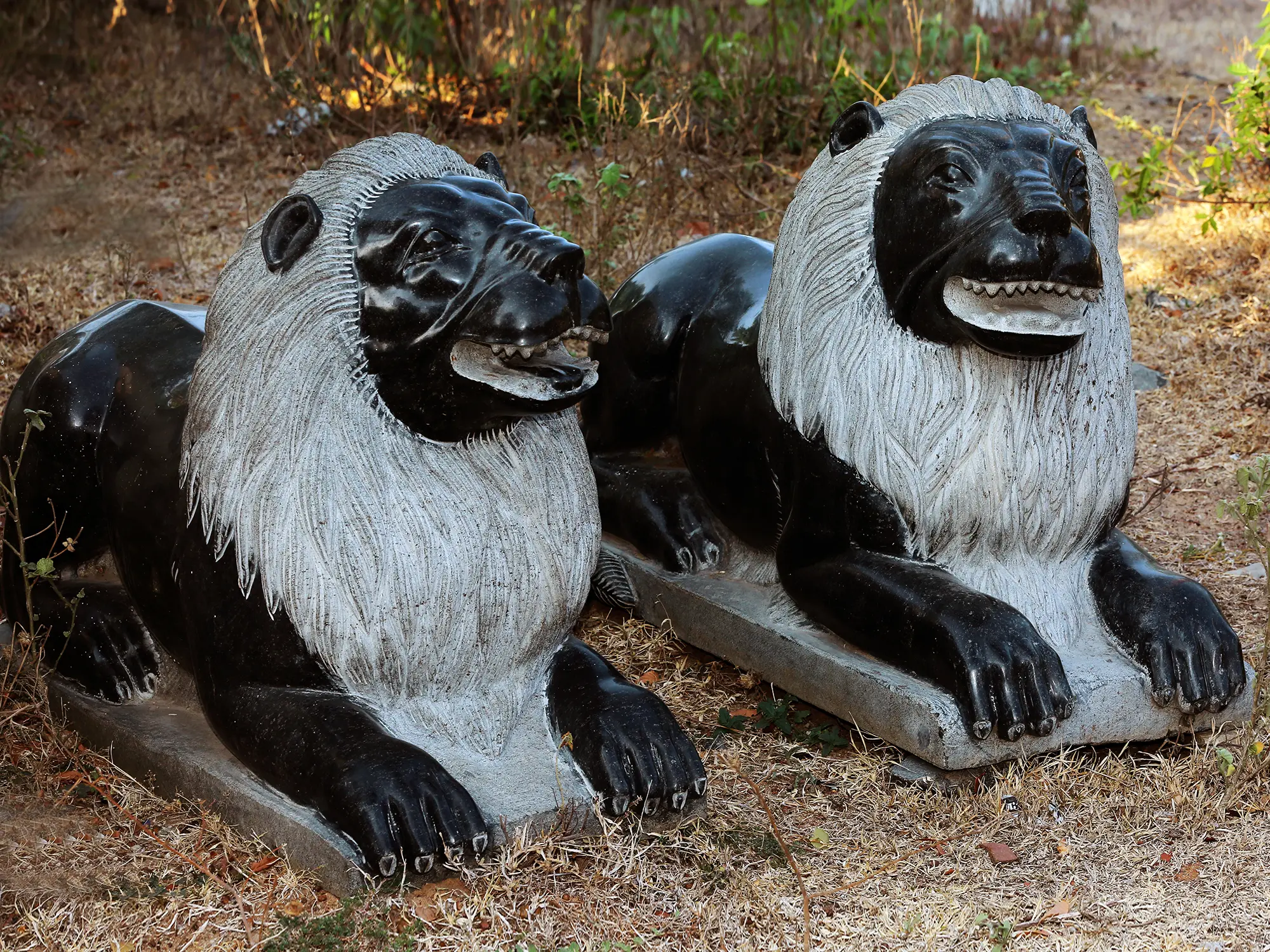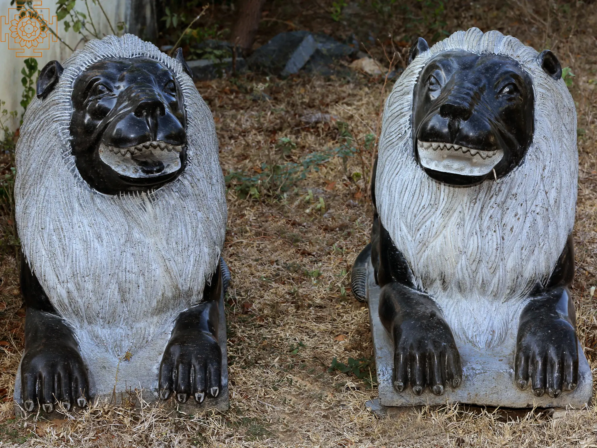 The pair of lions, which was carved with amazing artistry, is a mesmerising work of art that oozes strength, power, and regality. Their stunning figures, carved from a hard granite stone, display their majestic manes, ferocious attitudes, and muscular bodies. The attention to detail draws emphasis to the texture of their fur, the ferocity of their stare, and the subtleties of their features, giving them a genuine presence. These lion sculptures evoke respect and awe as representations of valour, leadership, and protection. They create a lasting impact, inspiring awe and reverence, whether guarding an entry, beautifying a garden, or gracing a stately hall.