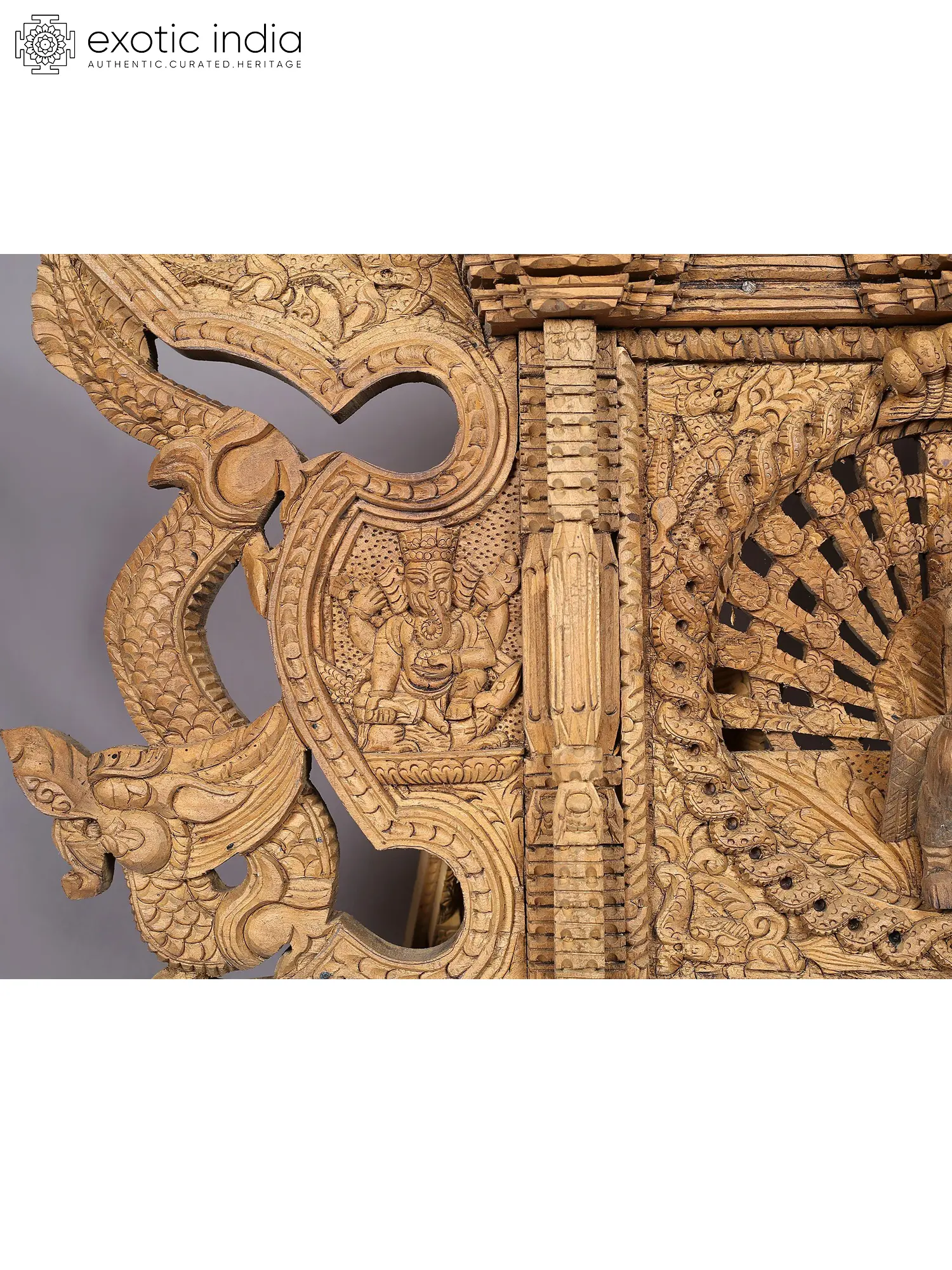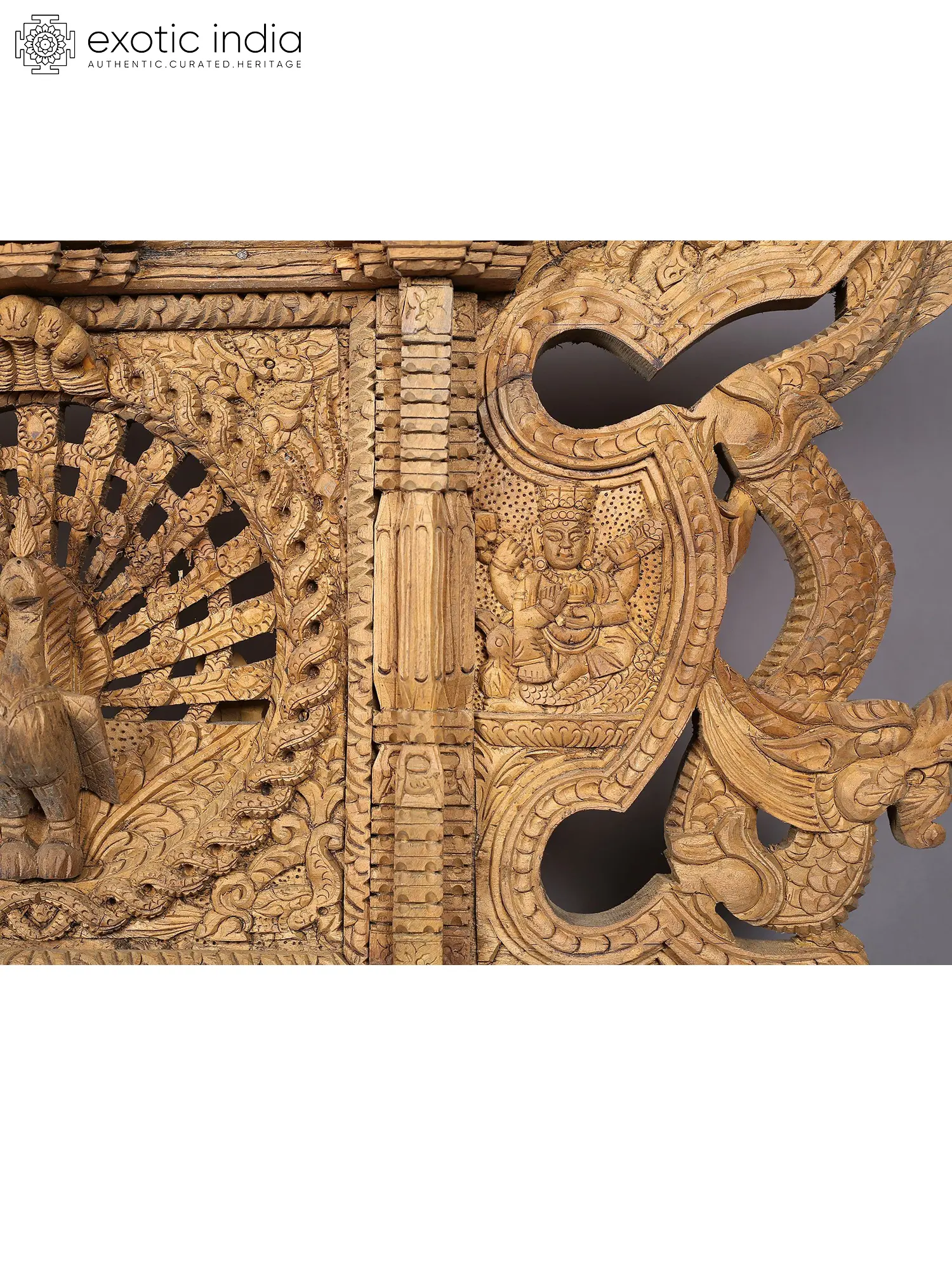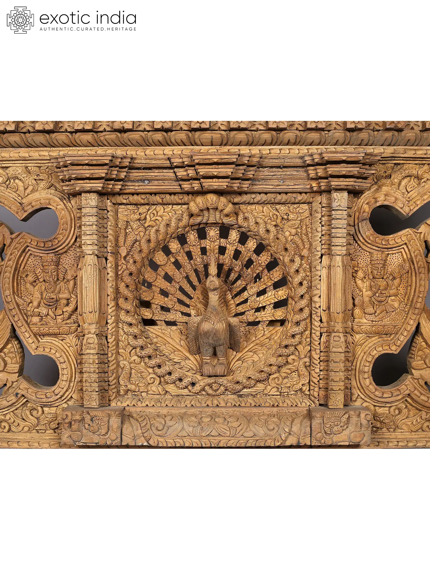The peacock holds profound symbolism encompassing beauty, grace, and immortality, interwoven intricately within the cultural tapestry of the Newari people residing in the Kathmandu Valley. Adorned with meticulous woodwork, this masterpiece features a central motif of a resplendent peacock, surrounded by a plethora of intricate carvings that testify to the Newar tradition's intricacy.