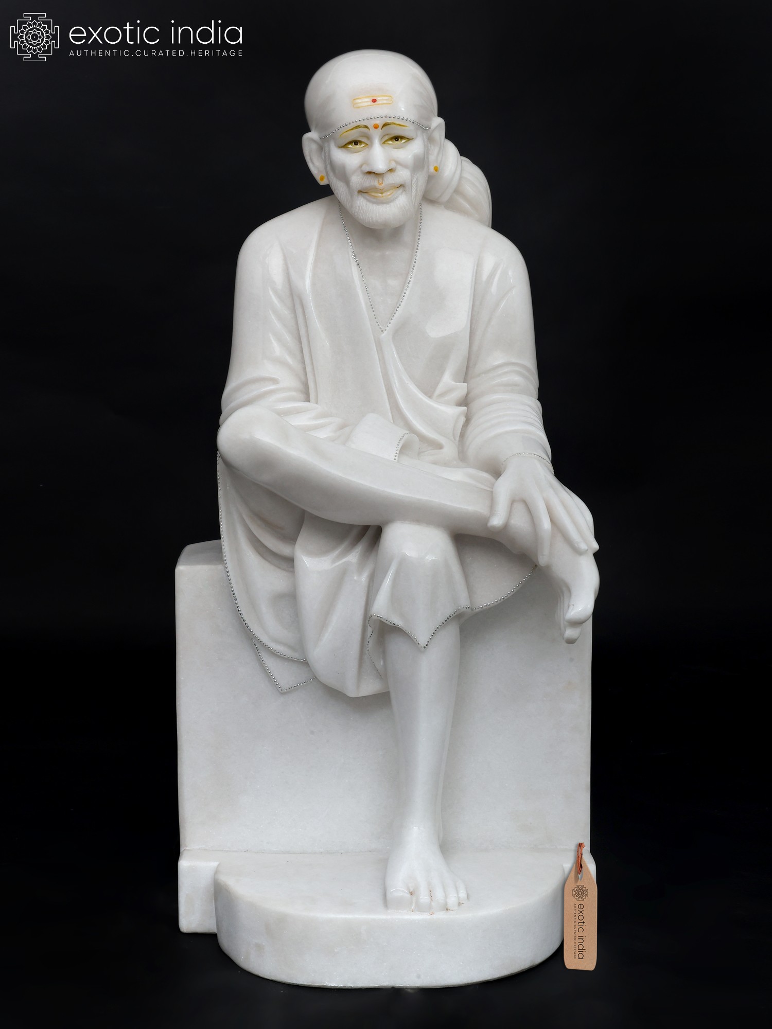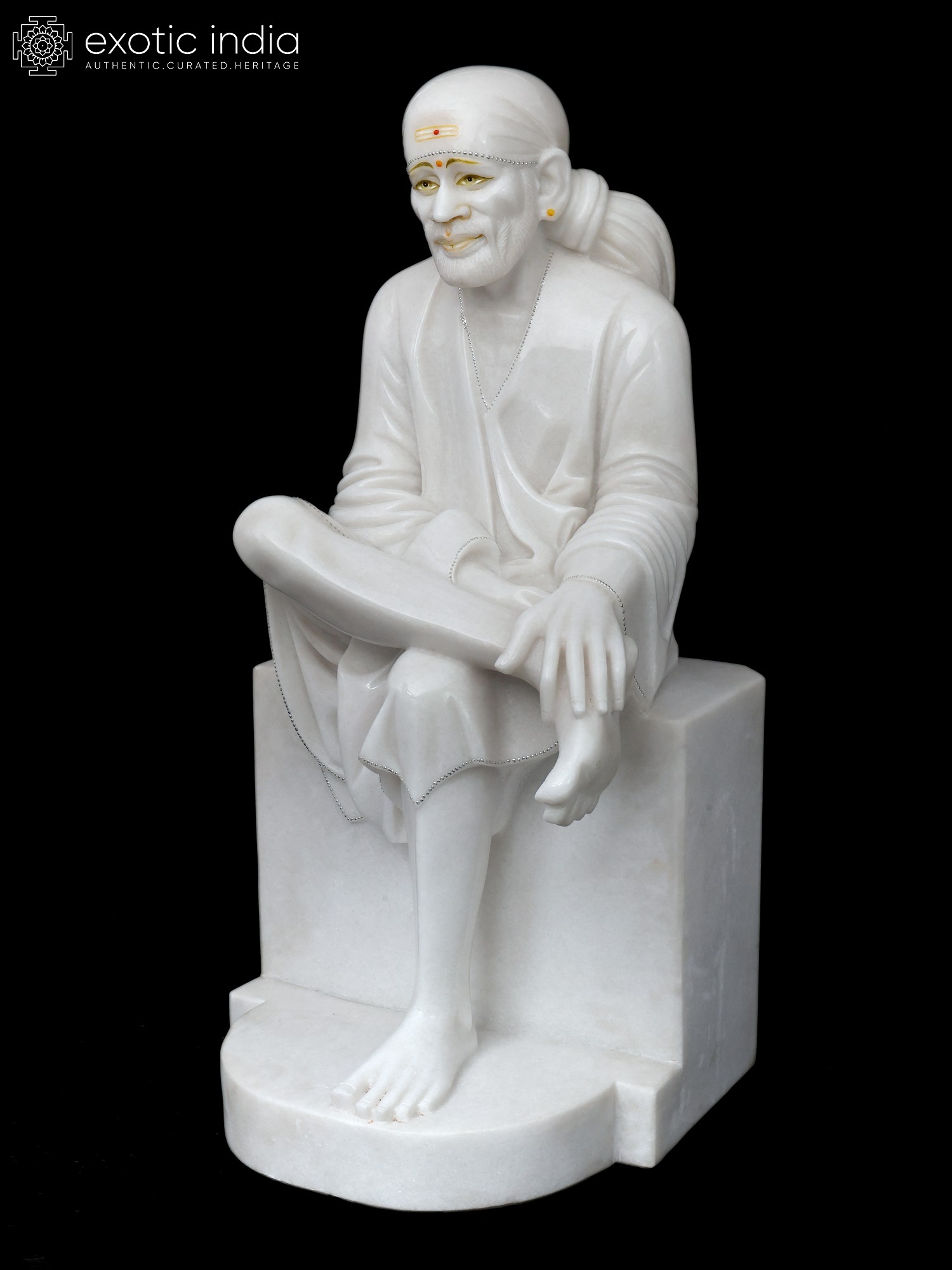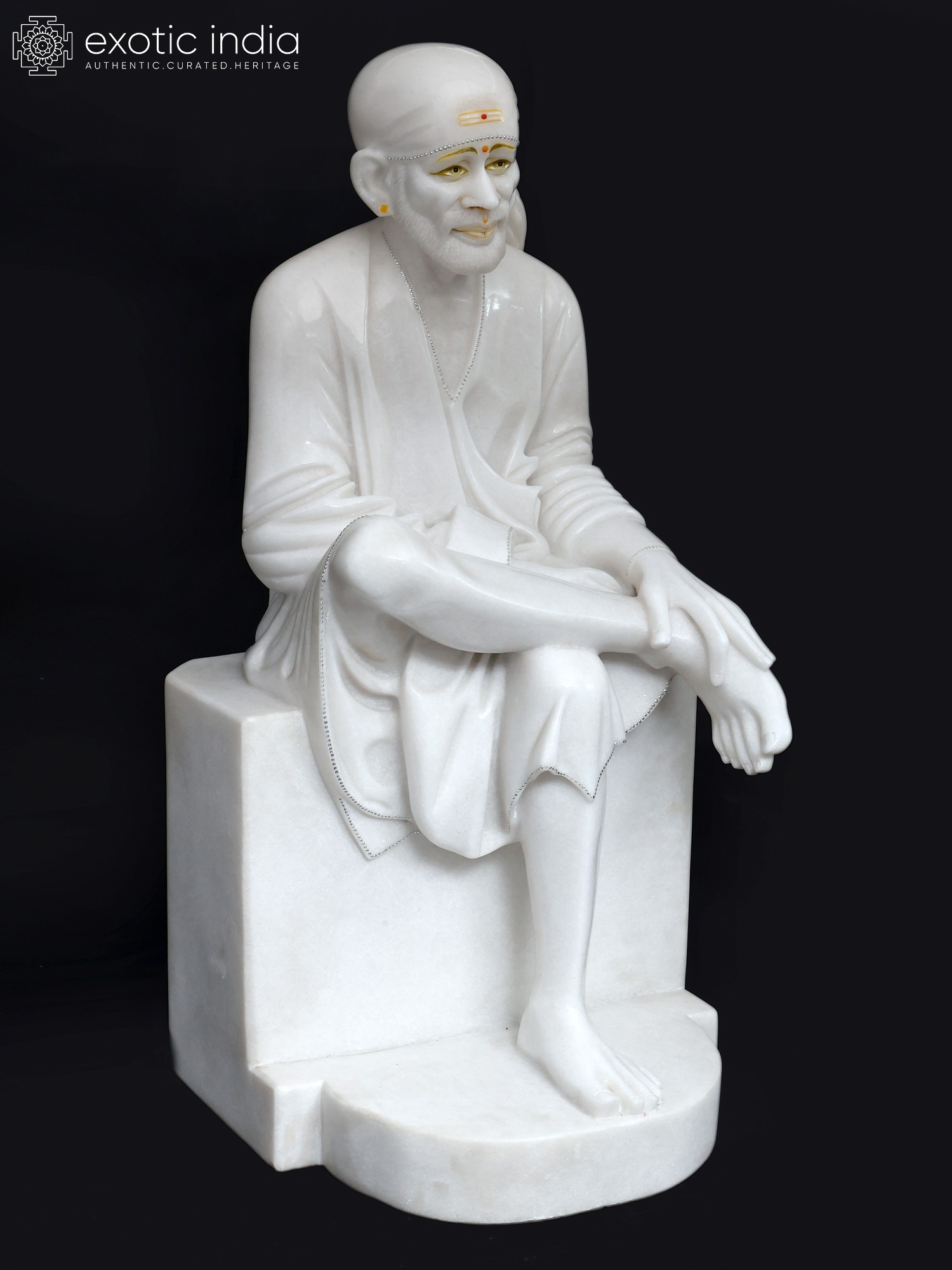36" Large Shirdi Sai Baba in Seated Gesture | Marble Statue | Made in India