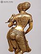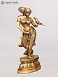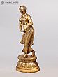 This brass-statue, anodized in deep copper tint, has been moulded and cast pursuing these standards of classical anatomy and iconography. Apart a highly balanced anatomy : rounded face to which the style of hair-dressing further contributes, well aligned neck with broad shoulders tilted affording rhythmic curve to the entire figure, elongated slender arms with fine long fingers, well developed breasts crowned with artistically cast nipples, subdued belly, voluminous hips and legs in three-curved posture, and iconography with large thoughtful eyes, sharp well defined nose and small cute lips, the figure is rare in emotional bearing. Not only the demeanour of her face even the posture of her hands suggest that she is lost in thoughts of someone who is away and she is missing him.