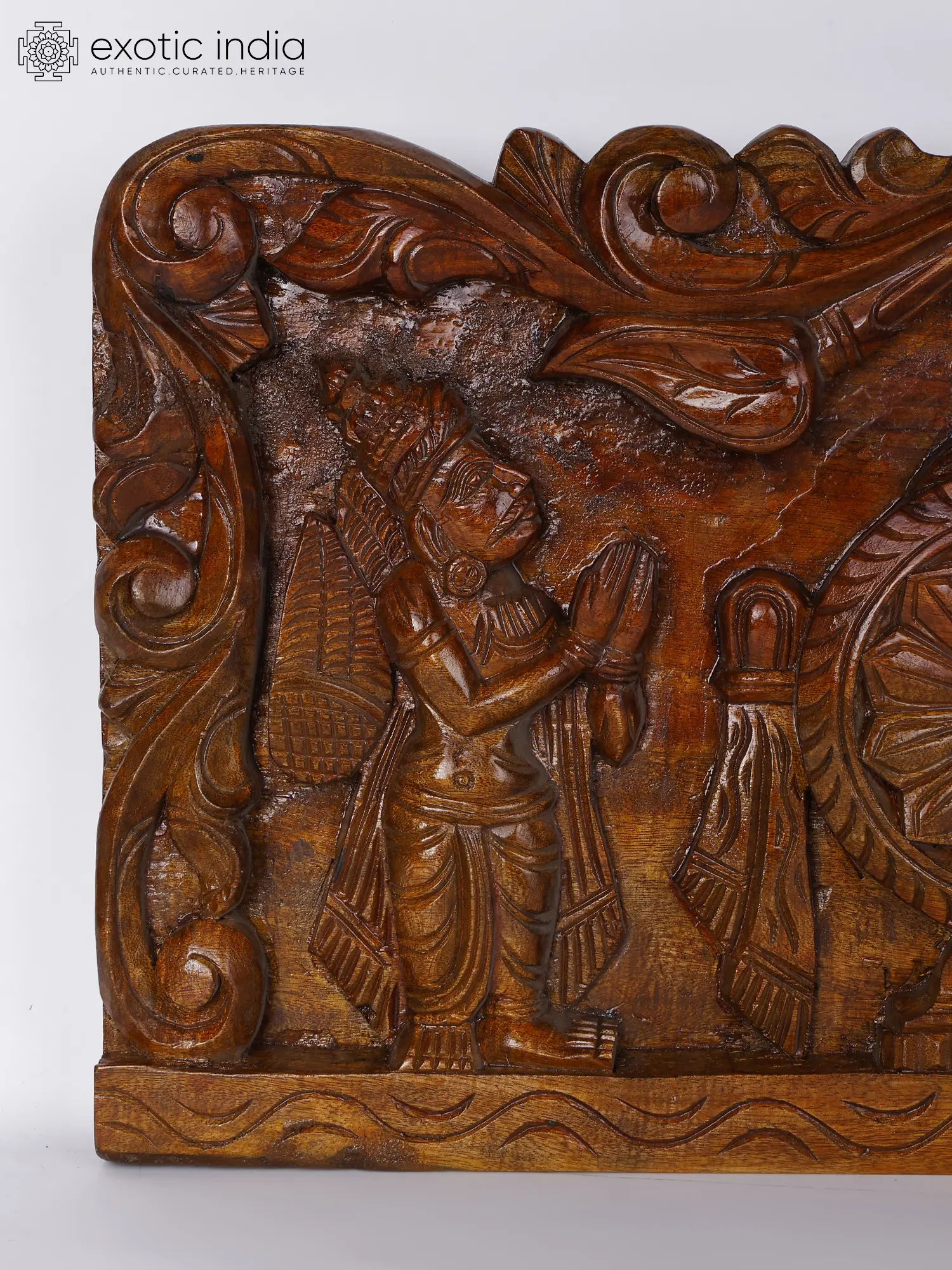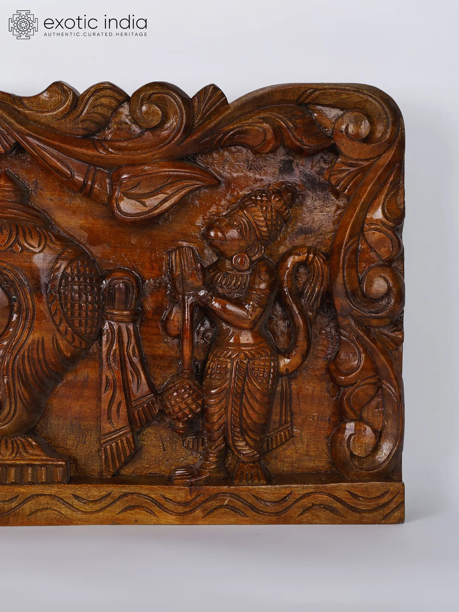 Vegetation carved meticulously and lacquering enhances the appeal of wood, making this an auspicious asthetic element on the walls of your house.