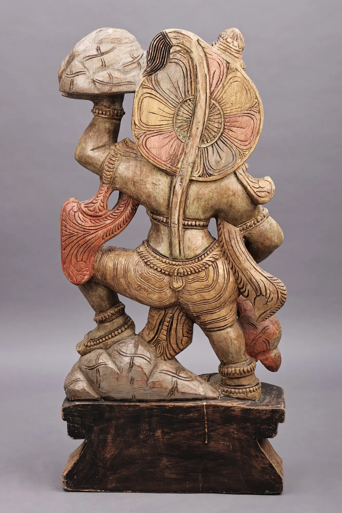 36" Large Veer Hanuman Ji Lifting the Sanjeevani Mountain | Wood Veer Hanuman | Handmade Art | Made in South India