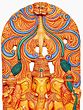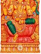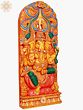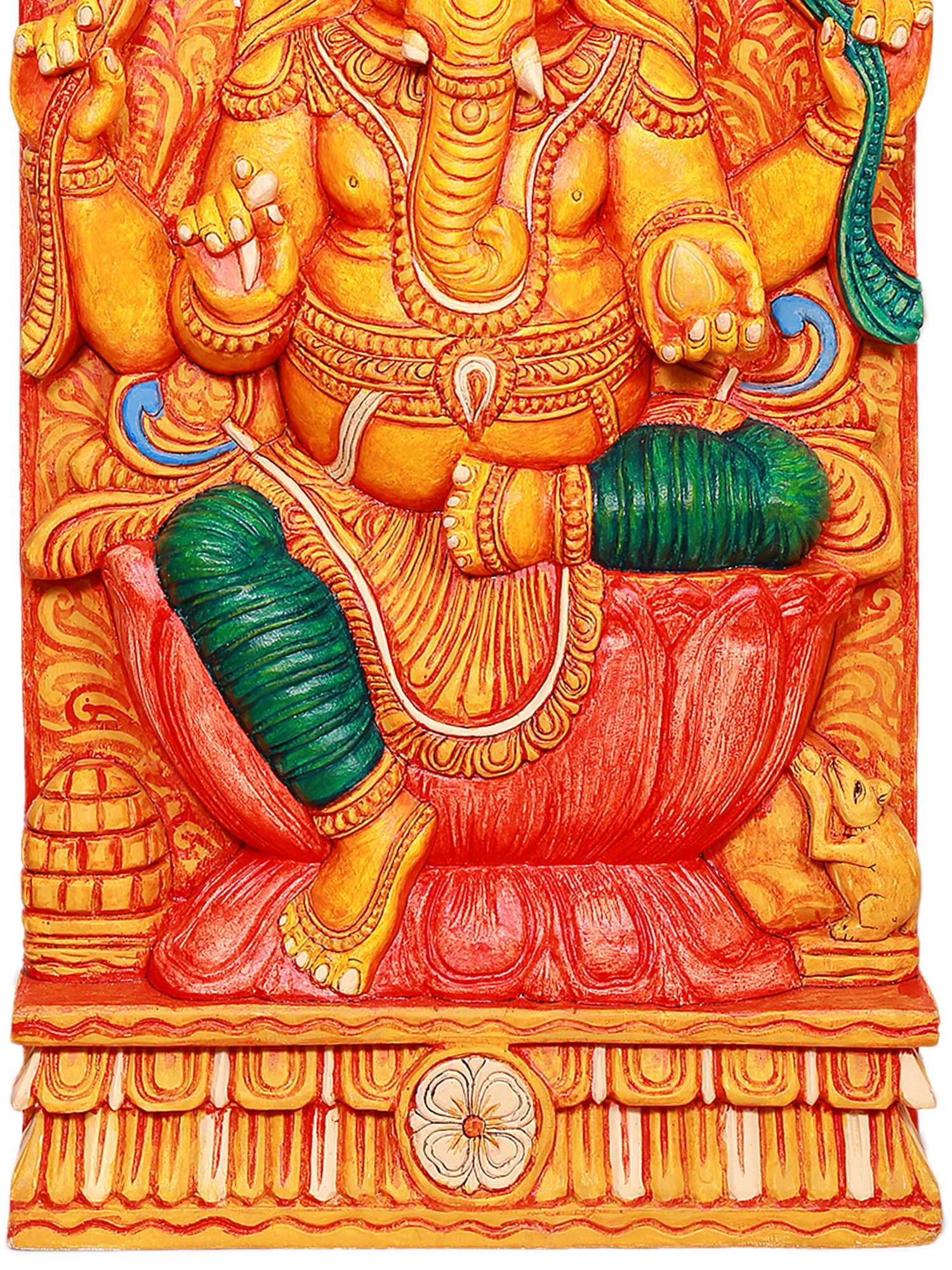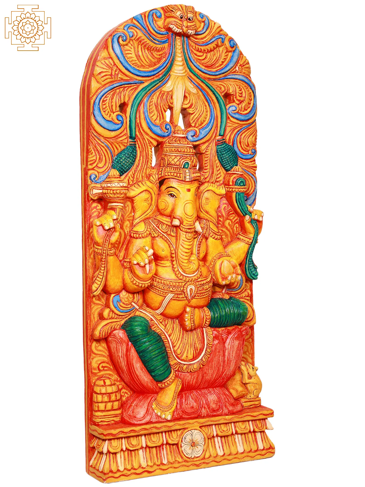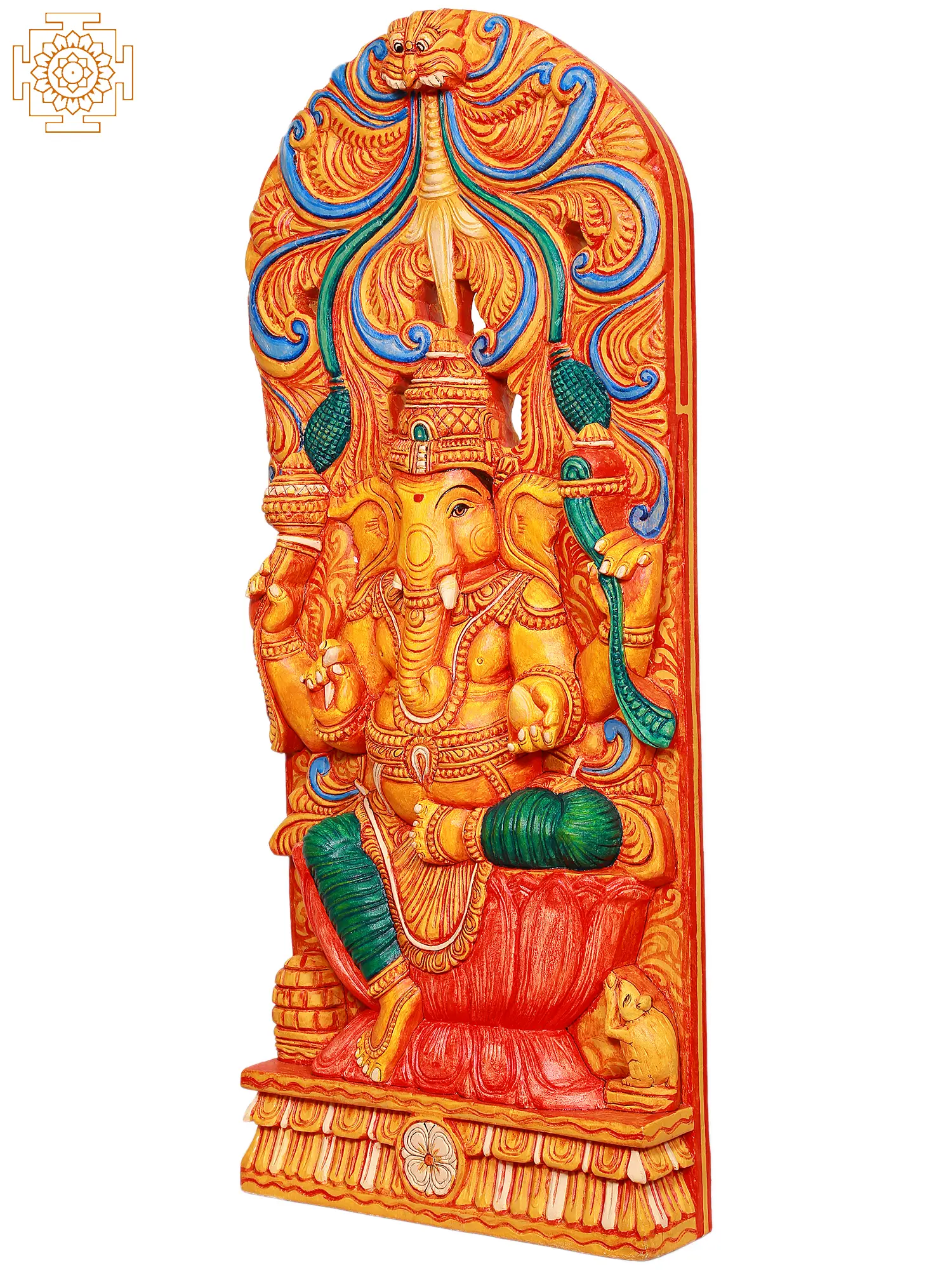 36" Large Wooden Colorful Chaturbhuja Lord Ganesha Seated on Lotus