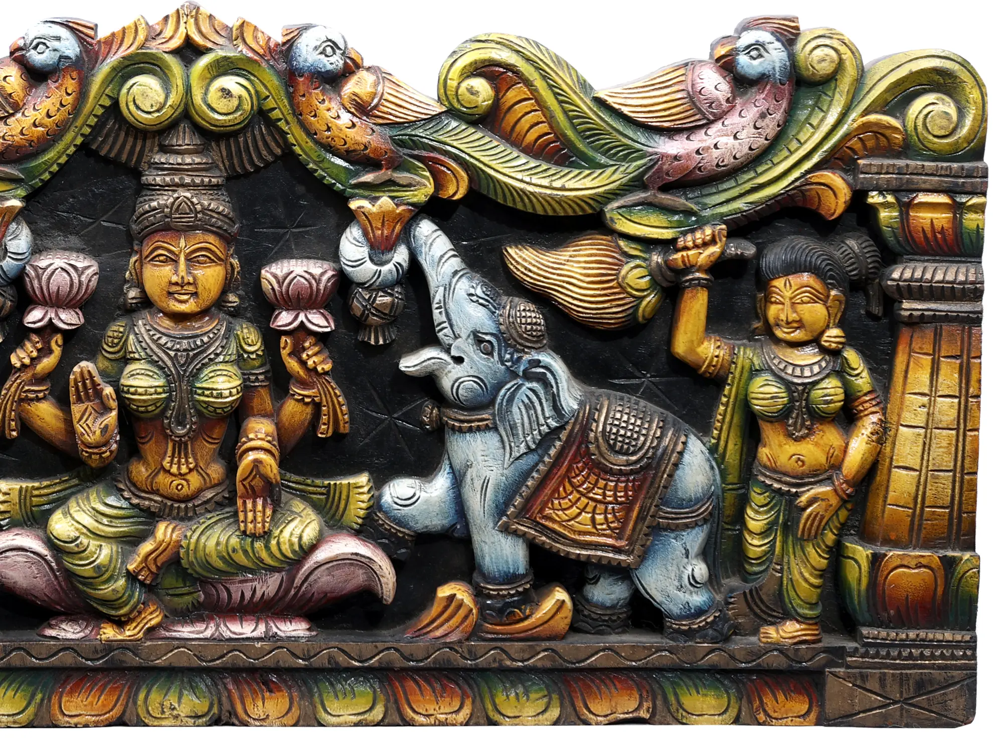 36" Large Wooden Colorful Gaja Lakshmi Panel
