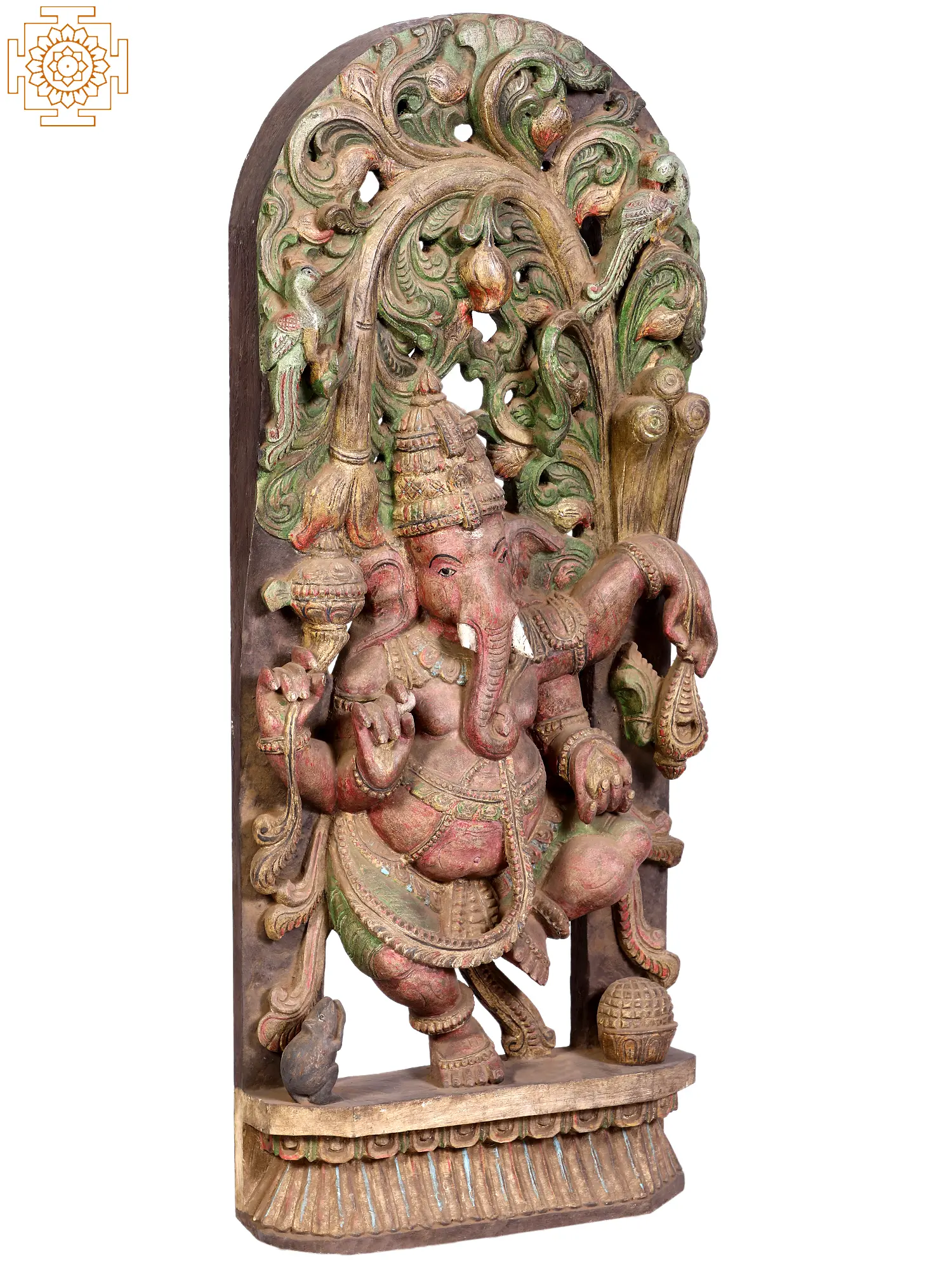 18" Wooden Ganapati Sculpture with Kirtimukha