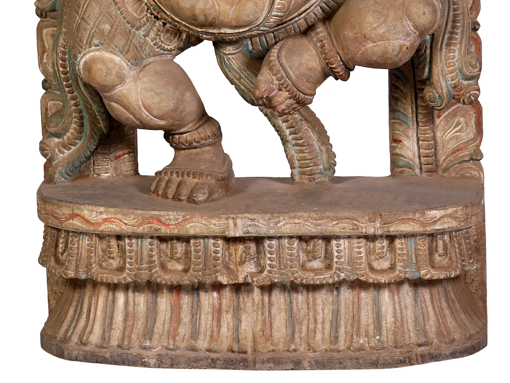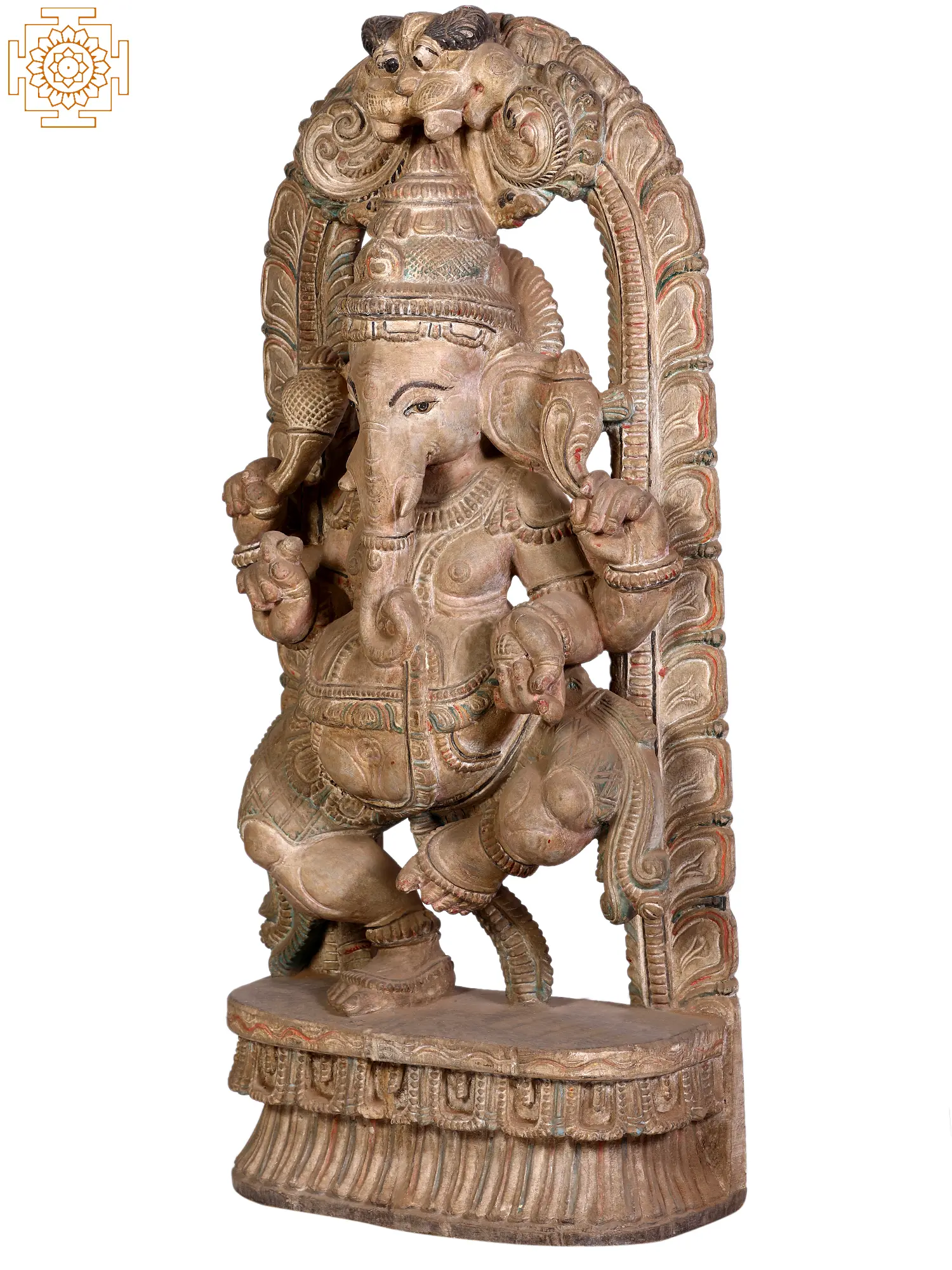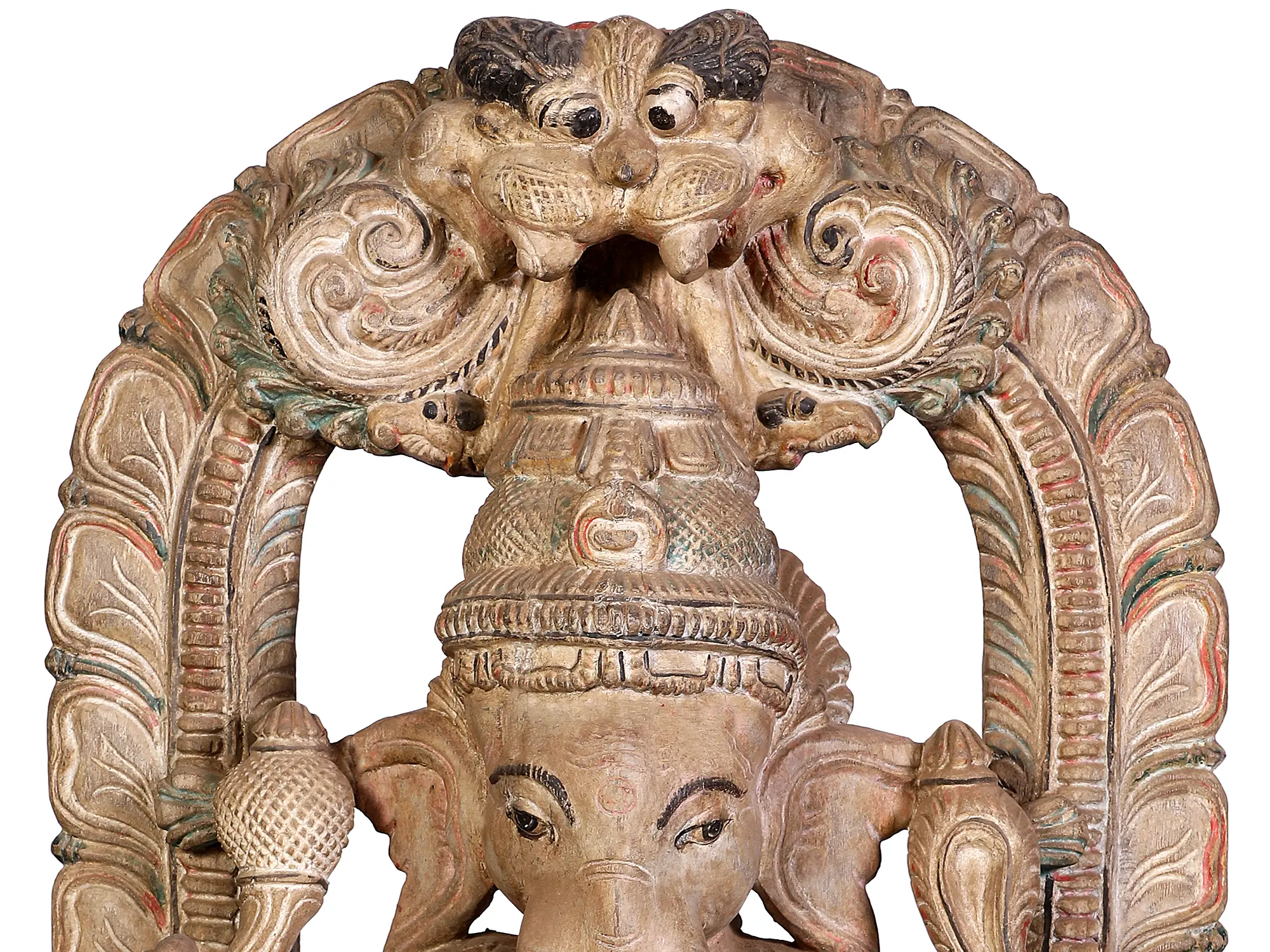 Wooden Sculpture of Lord Ganesha Plays the Shehnai