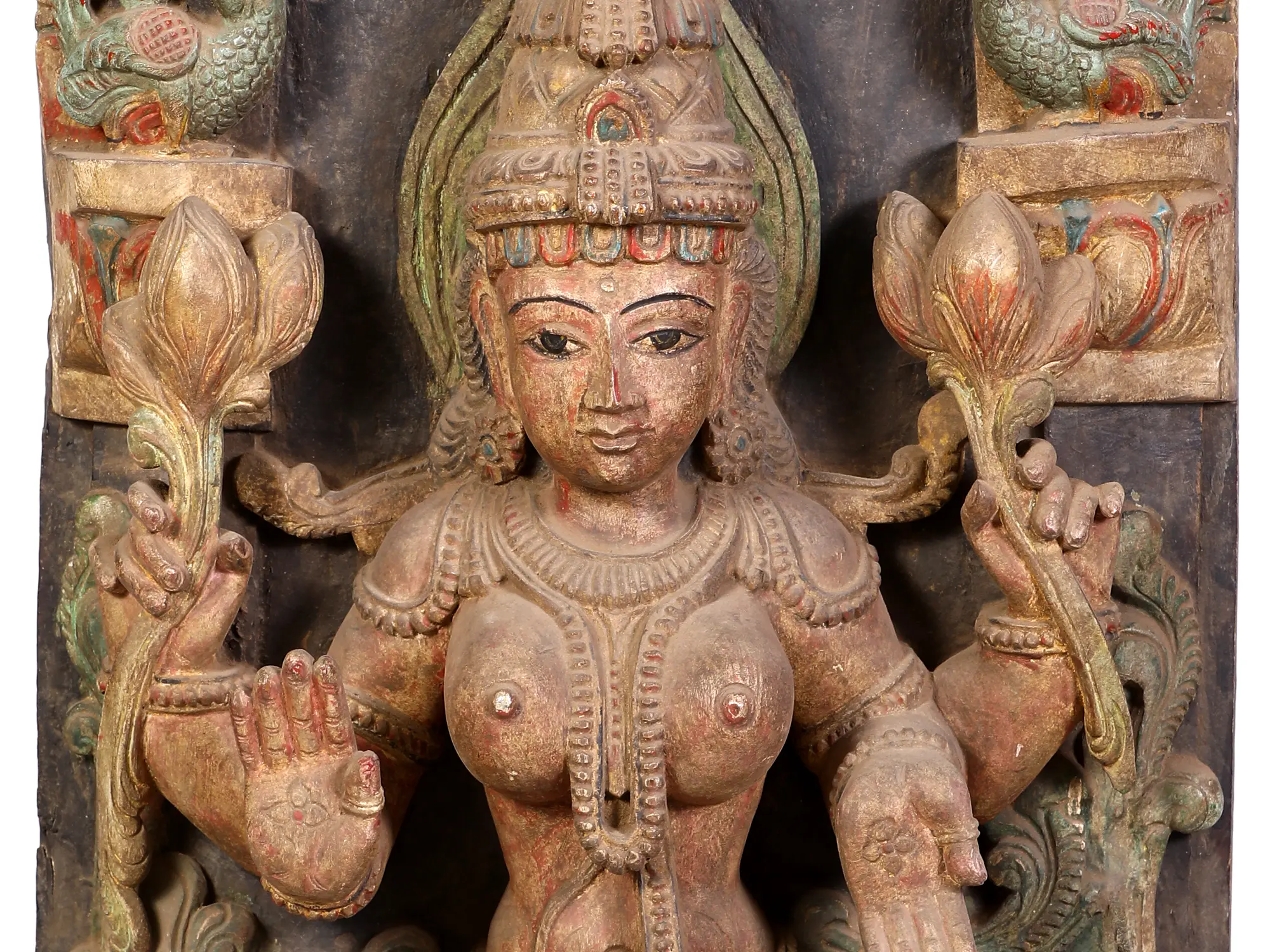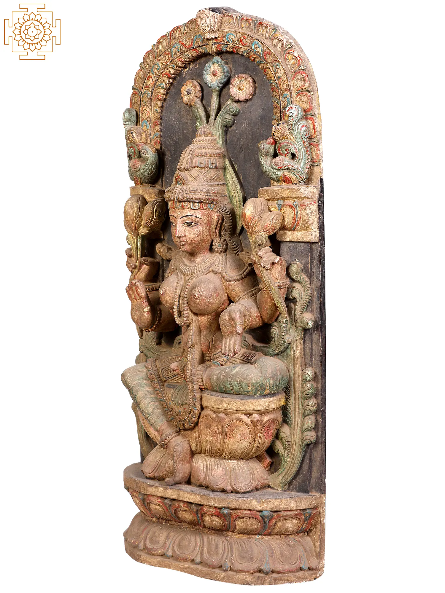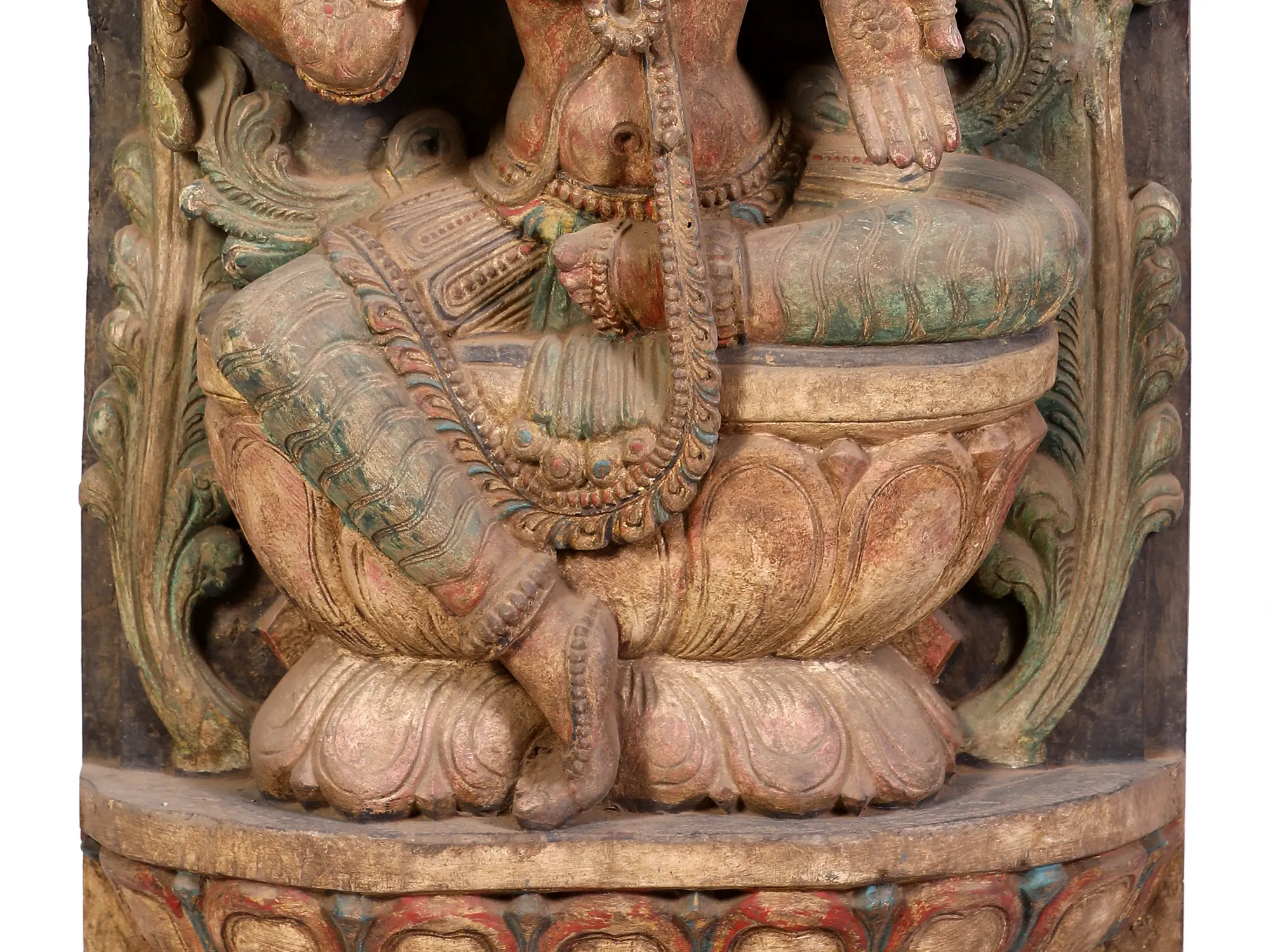 Wooden Statue of Lord Ganesh Seated on Lotus Throne