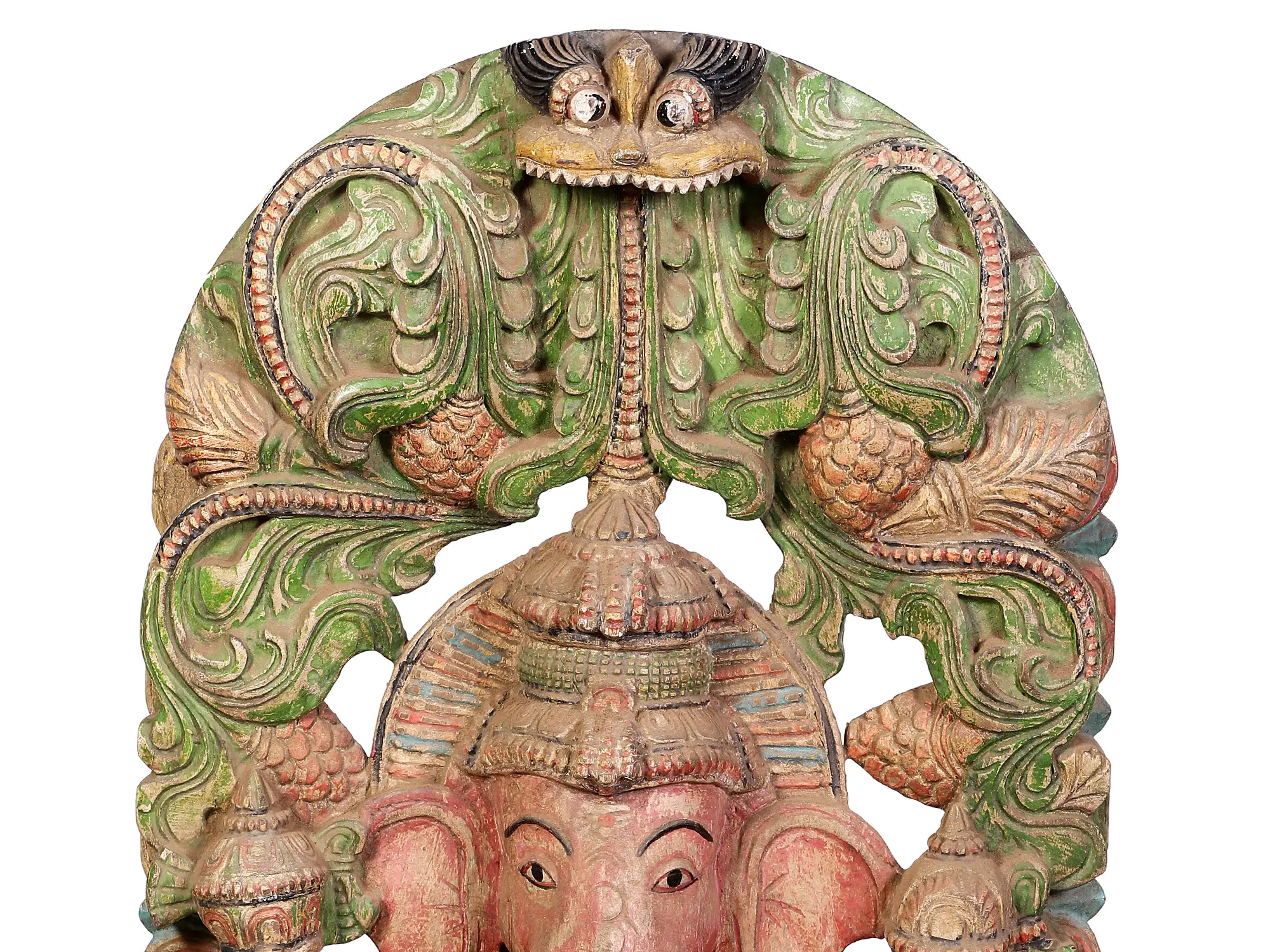 96" Huge Panchmukhi Lord Ganesha Wooden Statue | South Indian Temple Wood Carving