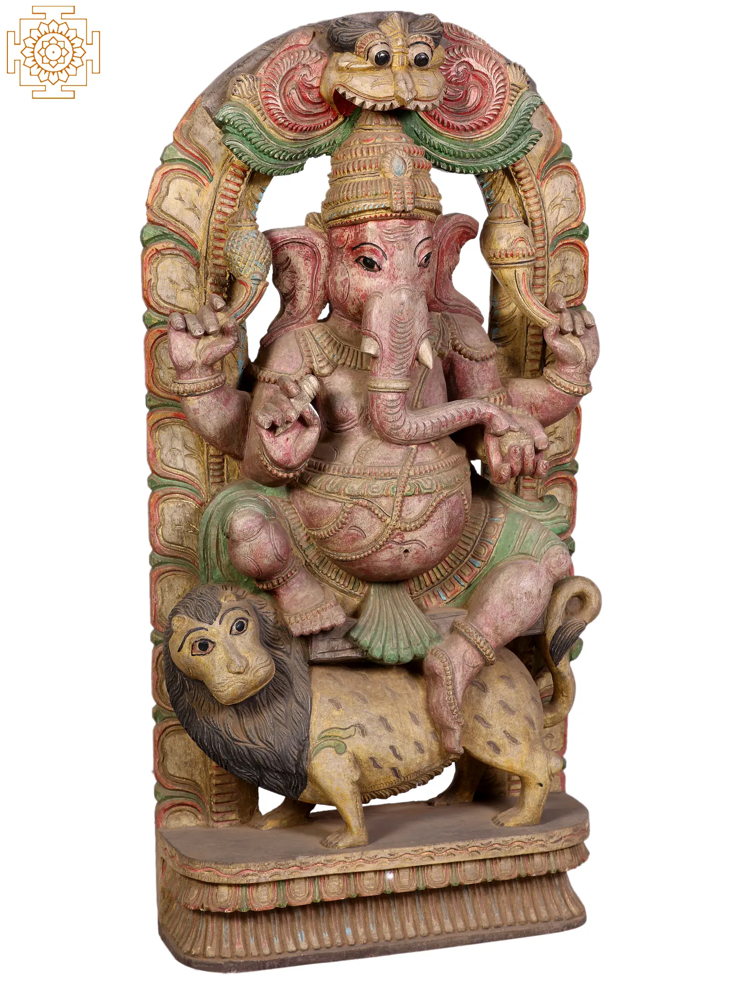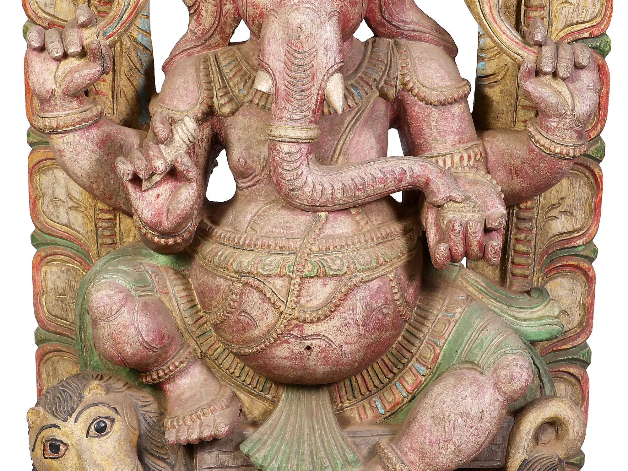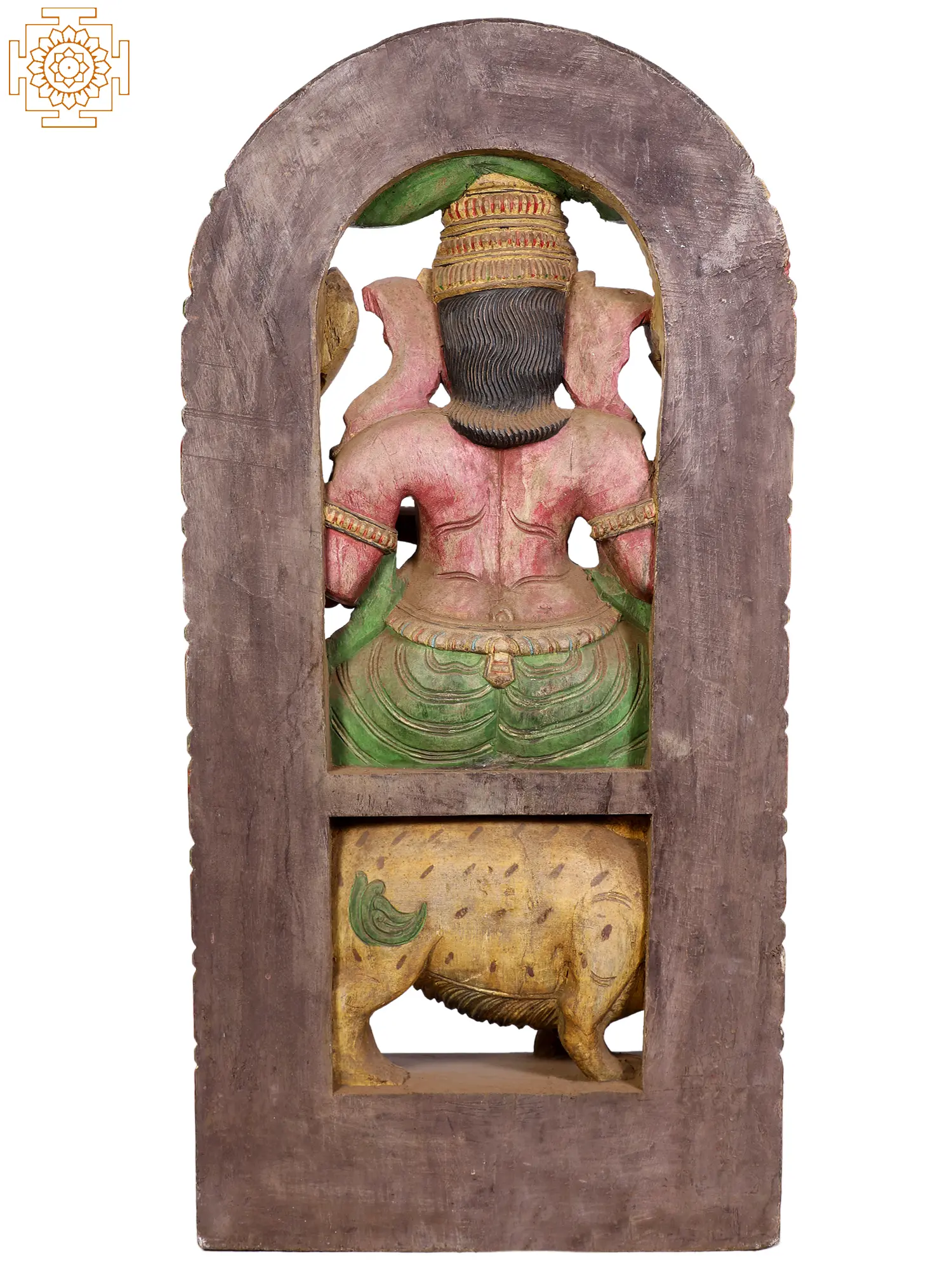 Wooden Sculpture of Lord Ganesha Plays the Shehnai