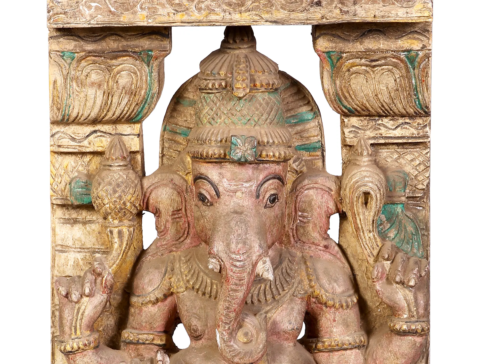 96" Huge Panchmukhi Lord Ganesha Wooden Statue | South Indian Temple Wood Carving