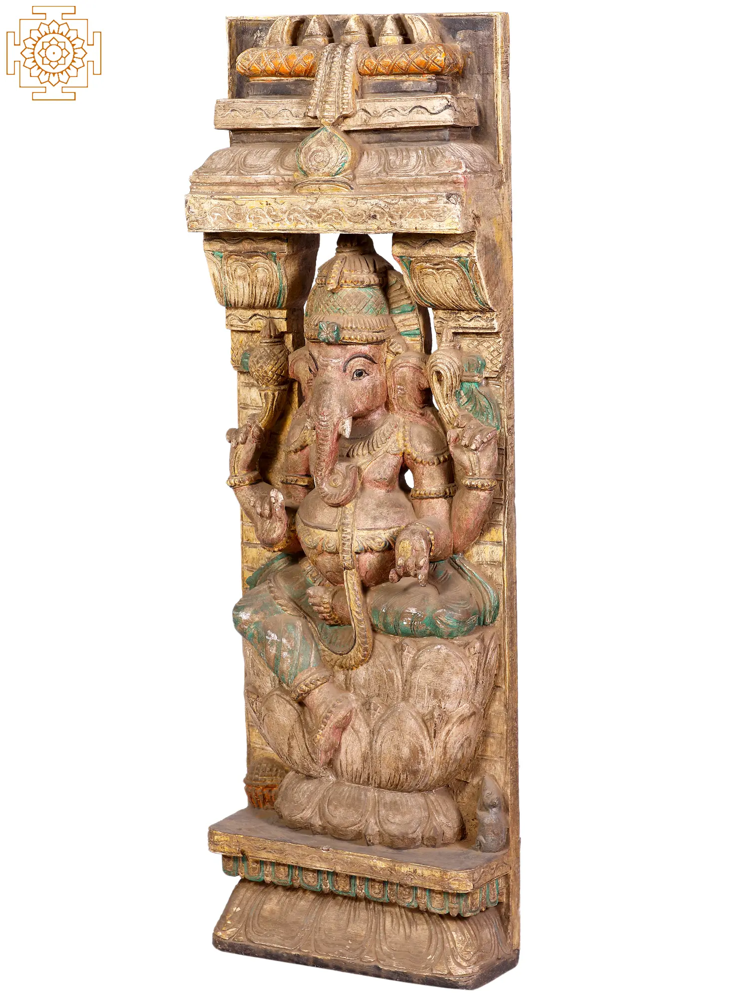 Invite the blessings and auspicious energy of Lord Ganesha into your home with this magnificent, hand-carved wooden sculpture. Standing tall and commanding, this piece is more than just a decorative item; it is a conduit to the divine, a testament to ancient artistry, and a symbol of prosperity and wisdom. Ganesha, the elephant-headed deity, is one of the most revered gods in the Hindu pantheon, widely worshipped as the remover of obstacles, the patron of arts and sciences, and the intellect. His divine presence is said to bring good fortune and success to all endeavors.