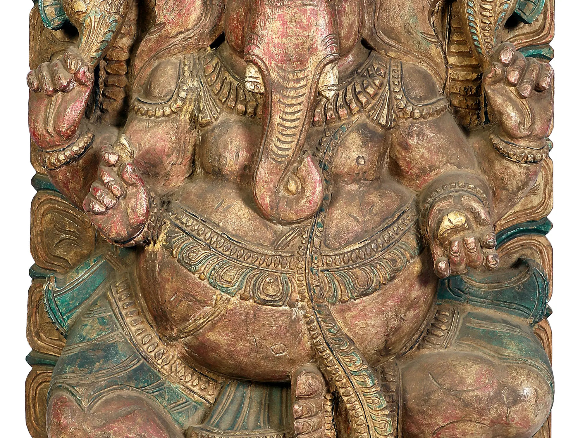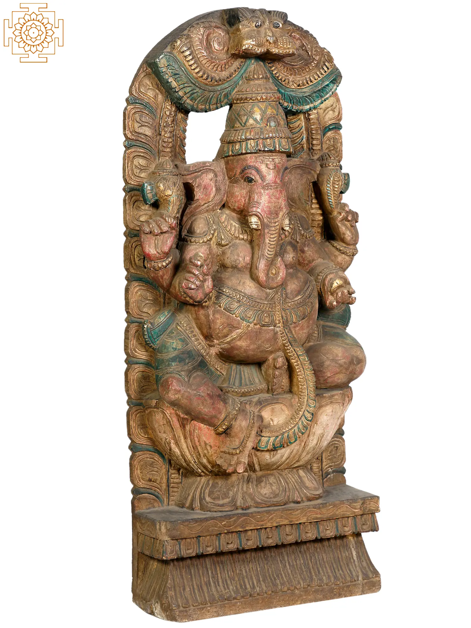 96" Huge Panchmukhi Lord Ganesha Wooden Statue | South Indian Temple Wood Carving