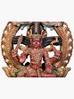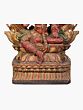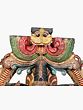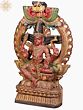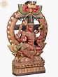 On the lower section of this wooden lady with the mirrored statue are two dancing females, holding a flower in one hand while supporting the platform with the other. Stationed on a high pedestal and smeared with tints of traditional colors, this wood Darpana icon seems to be descending from the heavens.