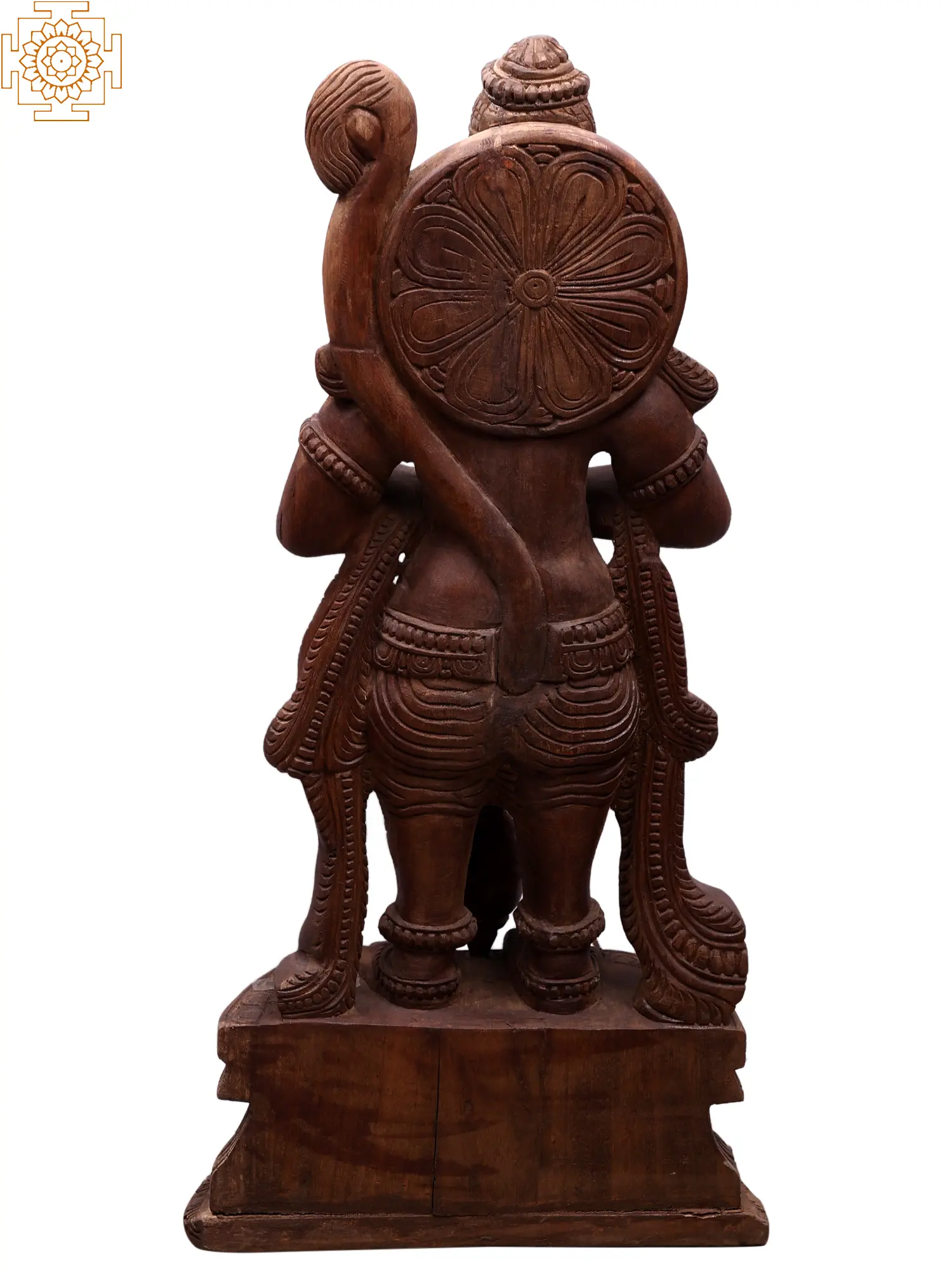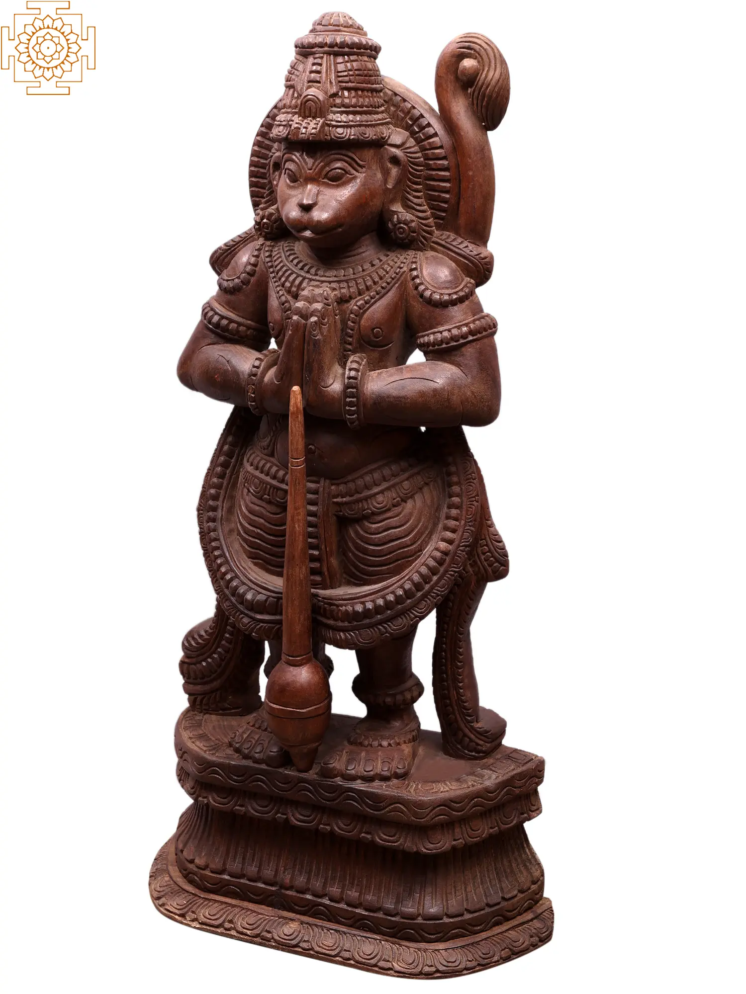 36" Large Wooden Standing Sankat Mochan Hanuman in Namaskar Mudra