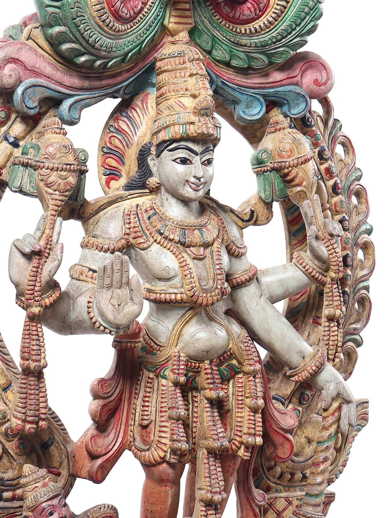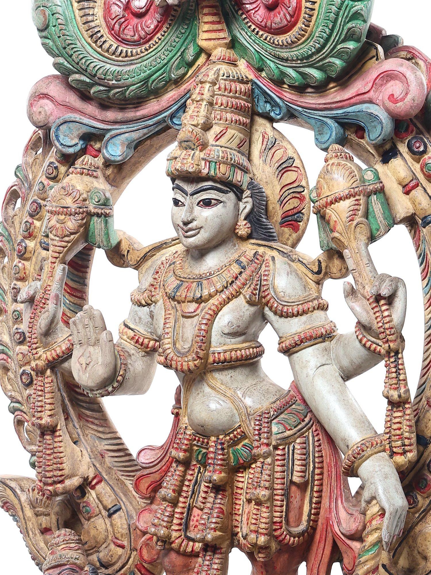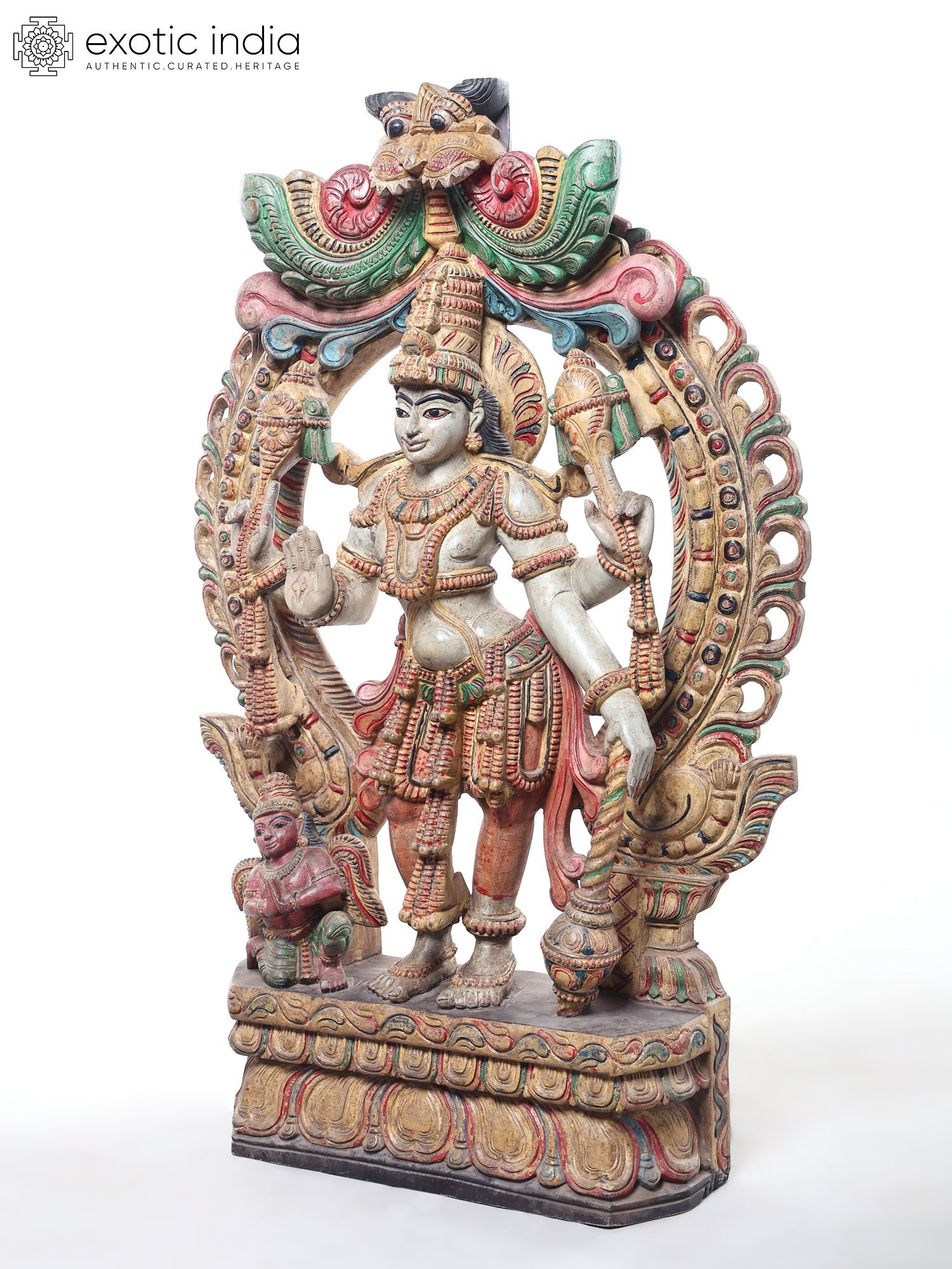 24" Colorful Standing Lord Vishnu | Wood Carving