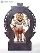 The sculpture is set against a beautifully carved decorative arch, enhancing its presence.