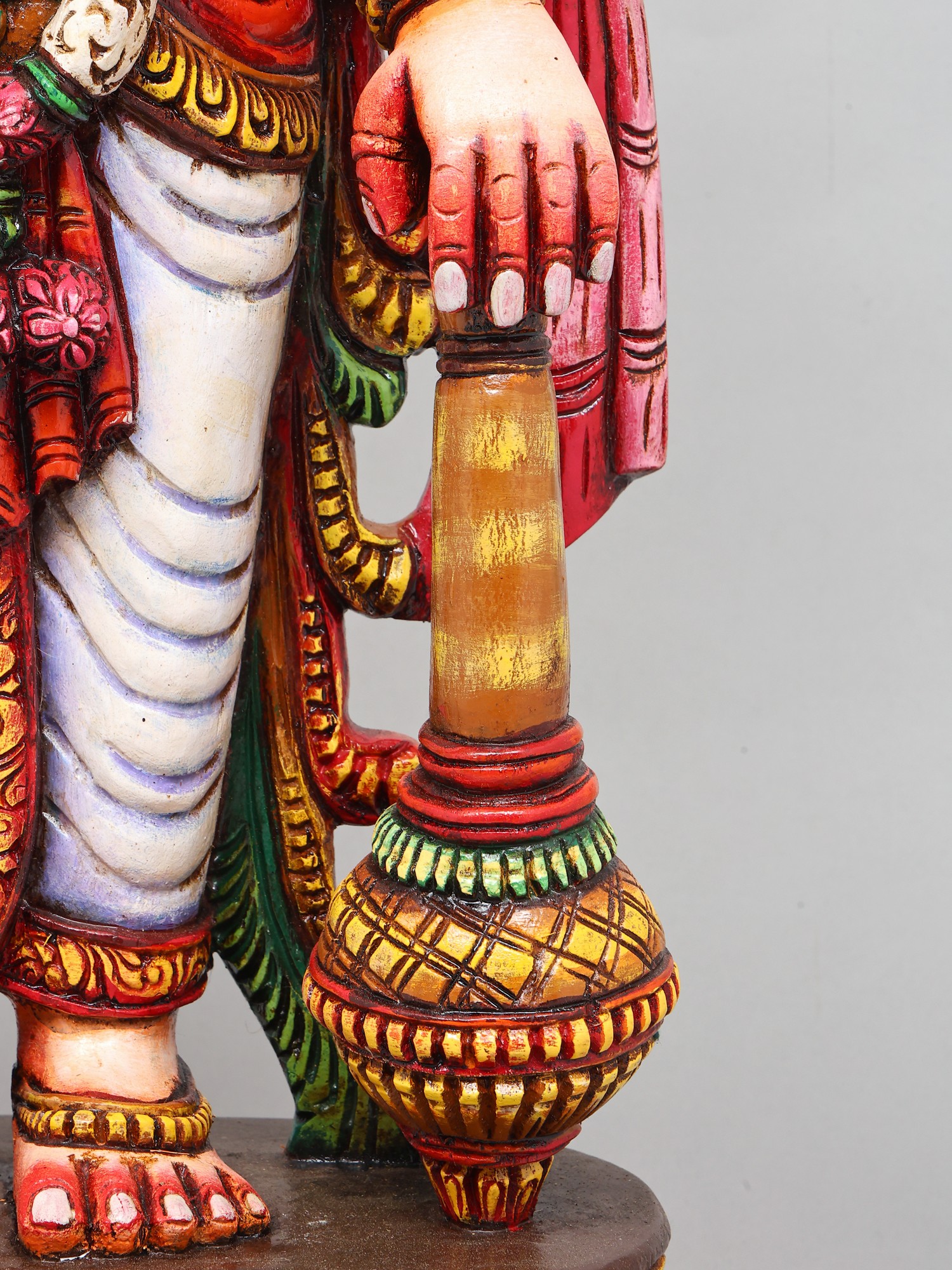 This idol is a testament to the enduring legacy of traditional Indian craftsmanship. Each piece is meticulously carved and finished by skilled artisans who have inherited their craft through generations. The use of wood as the primary material connects the idol to the earth, imbuing it with a natural warmth and organic beauty. The process of creating such an idol is often considered a form of devotion in itself, with artisans imbuing their work with prayers and positive intentions. This dedication ensures that each statue is not only visually stunning but also spiritually charged.