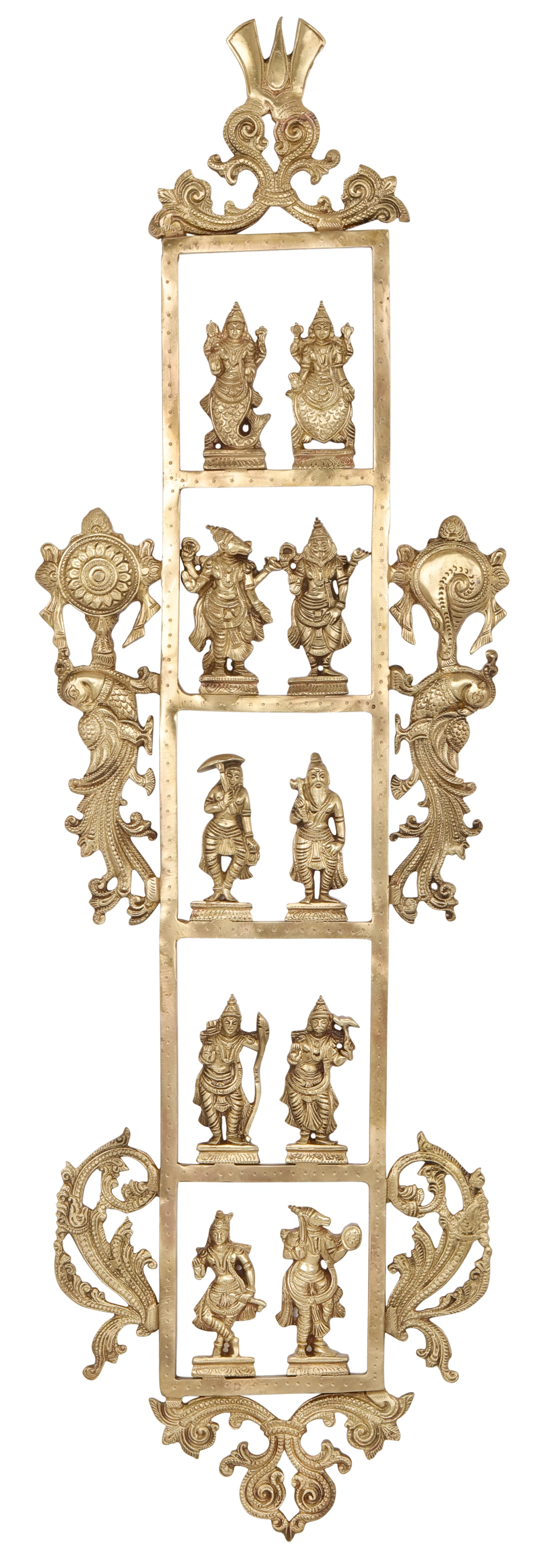 The bronze material not only adds a timeless and elegant touch but also symbolizes durability and divine permanence. As a handmade piece, it carries the essence of artistic devotion, making it a cherished item for devotees seeking a sacred focal point to adorn their homes, infusing spaces with positive energy and spiritual resonance. The Vertical Dashavatara Panel stands as a testament to the rich cultural and artistic heritage of South India.
