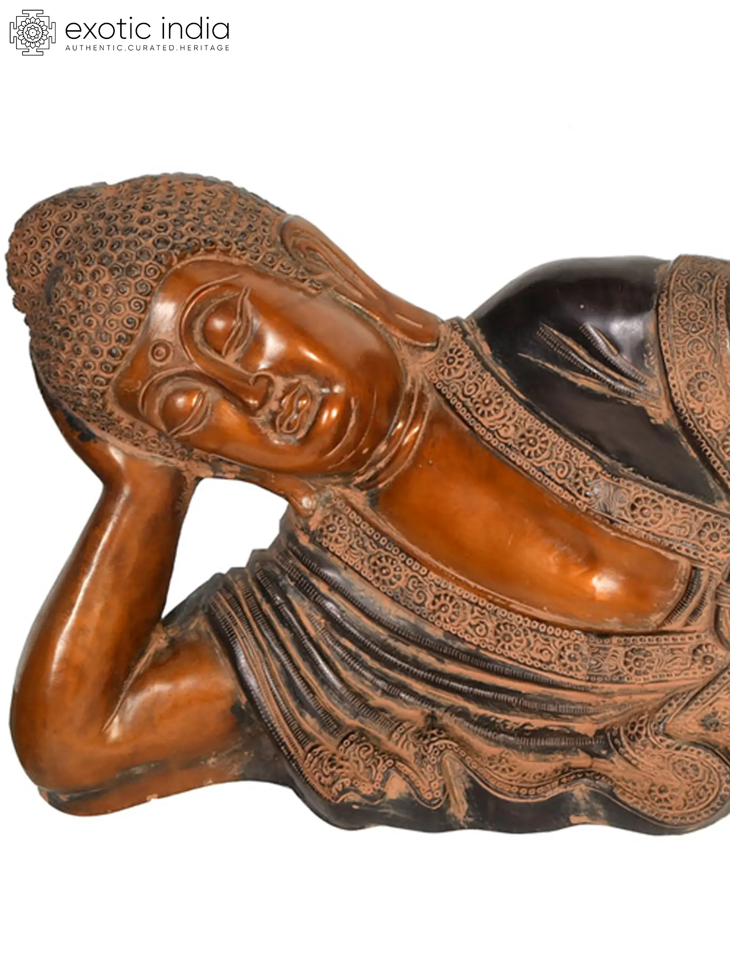 37" Large Size Parinirvana Buddha In Brass | Handmade | Made In India