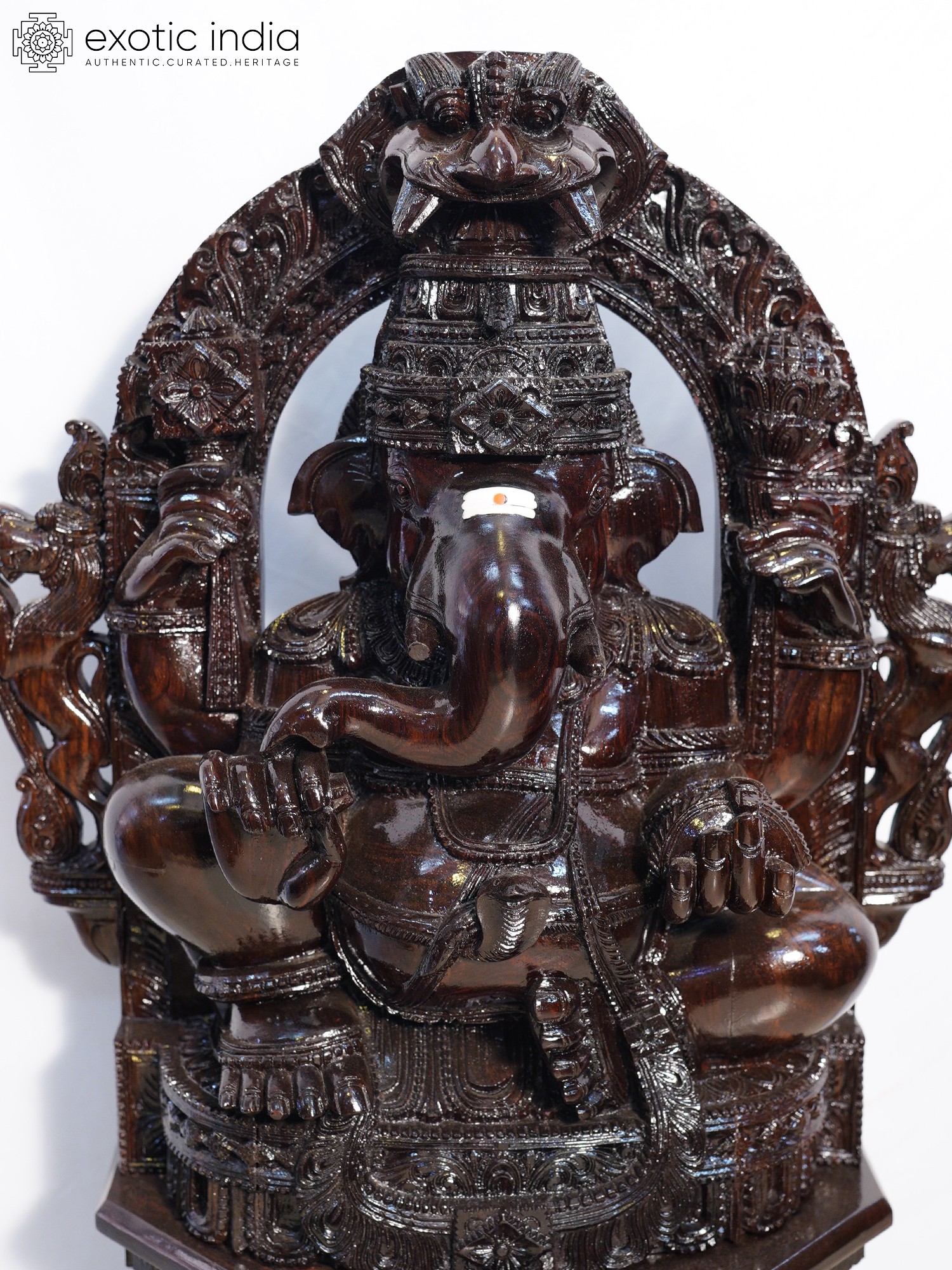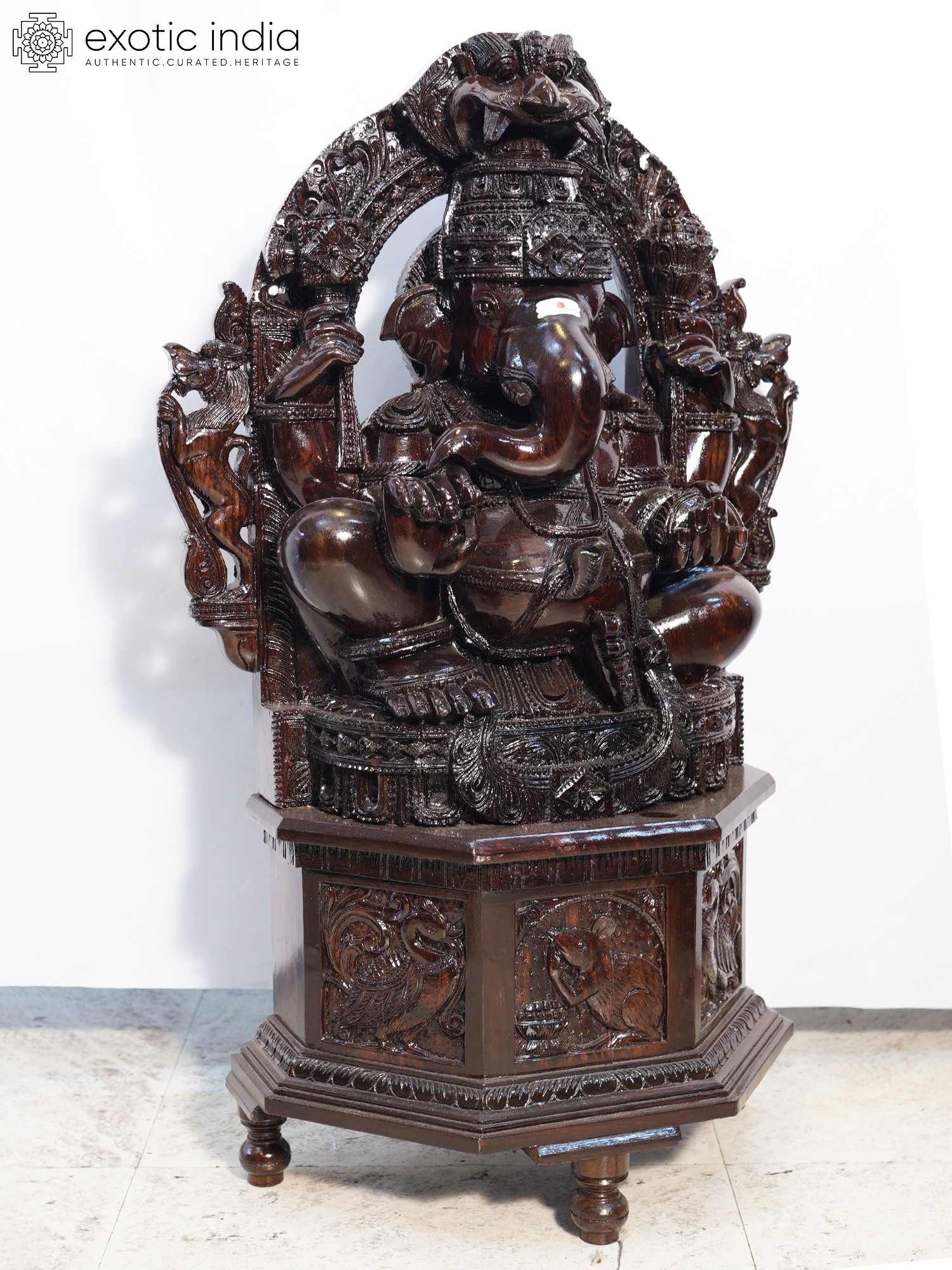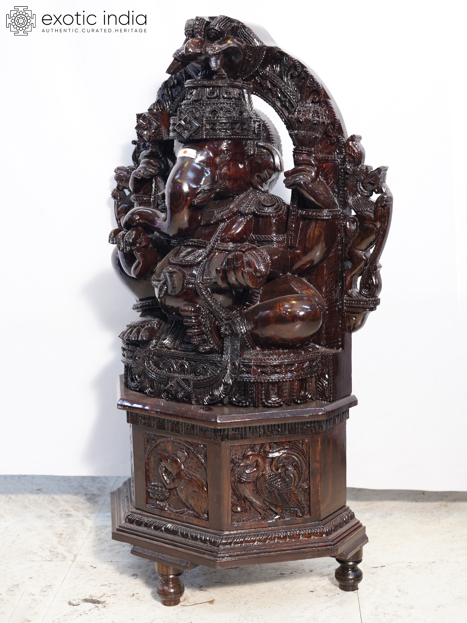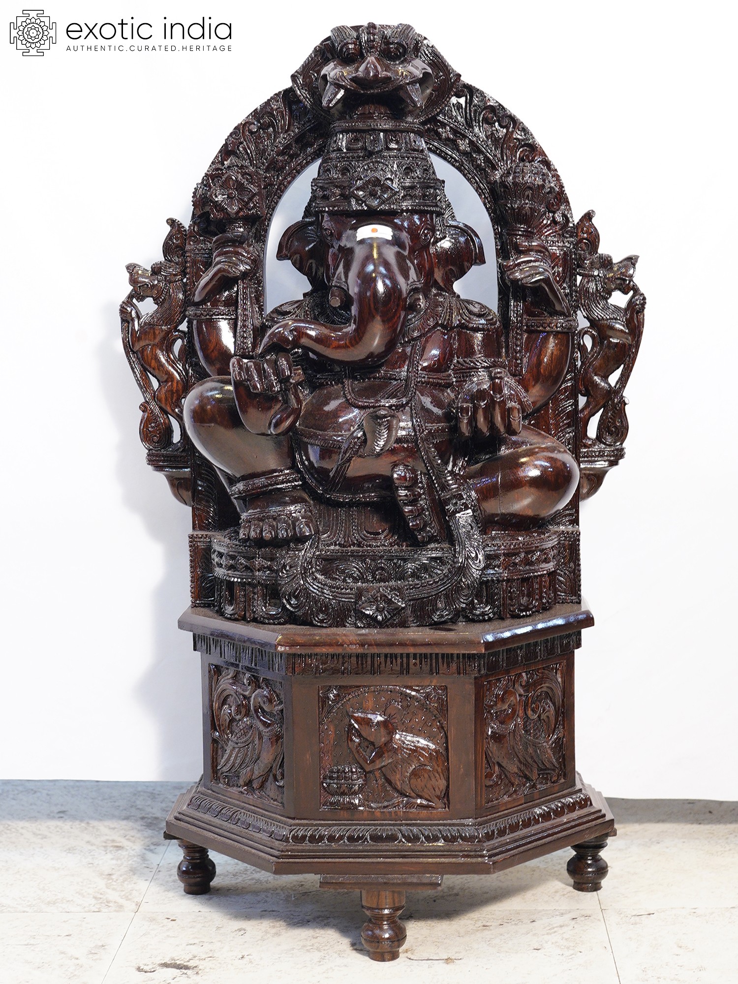 Large Size Lord Ganesha Wooden Statue Seated atop His Vahana