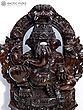 48" Trimukha Ganesha Seated on His Rat with Kirtimukha Arch