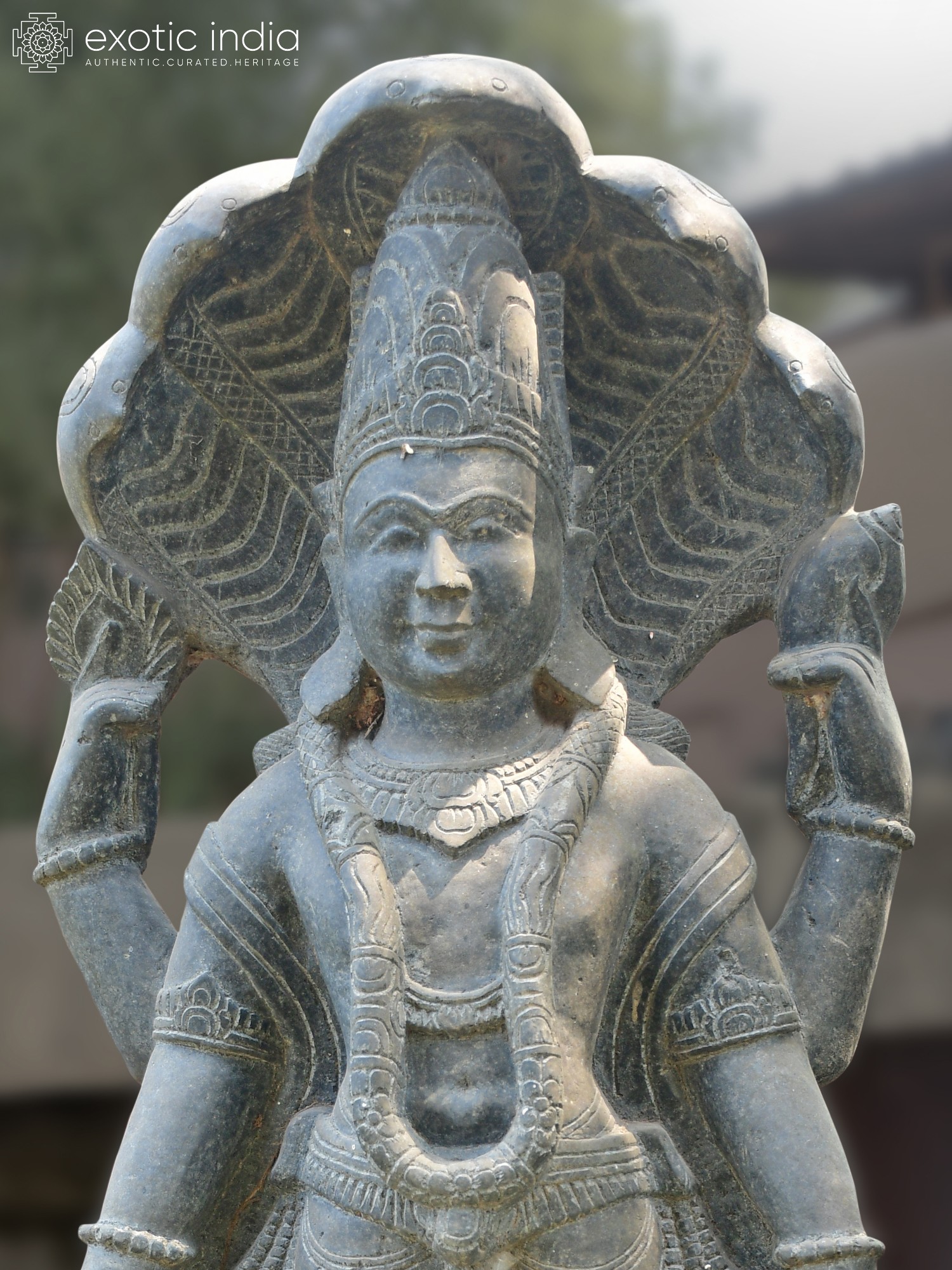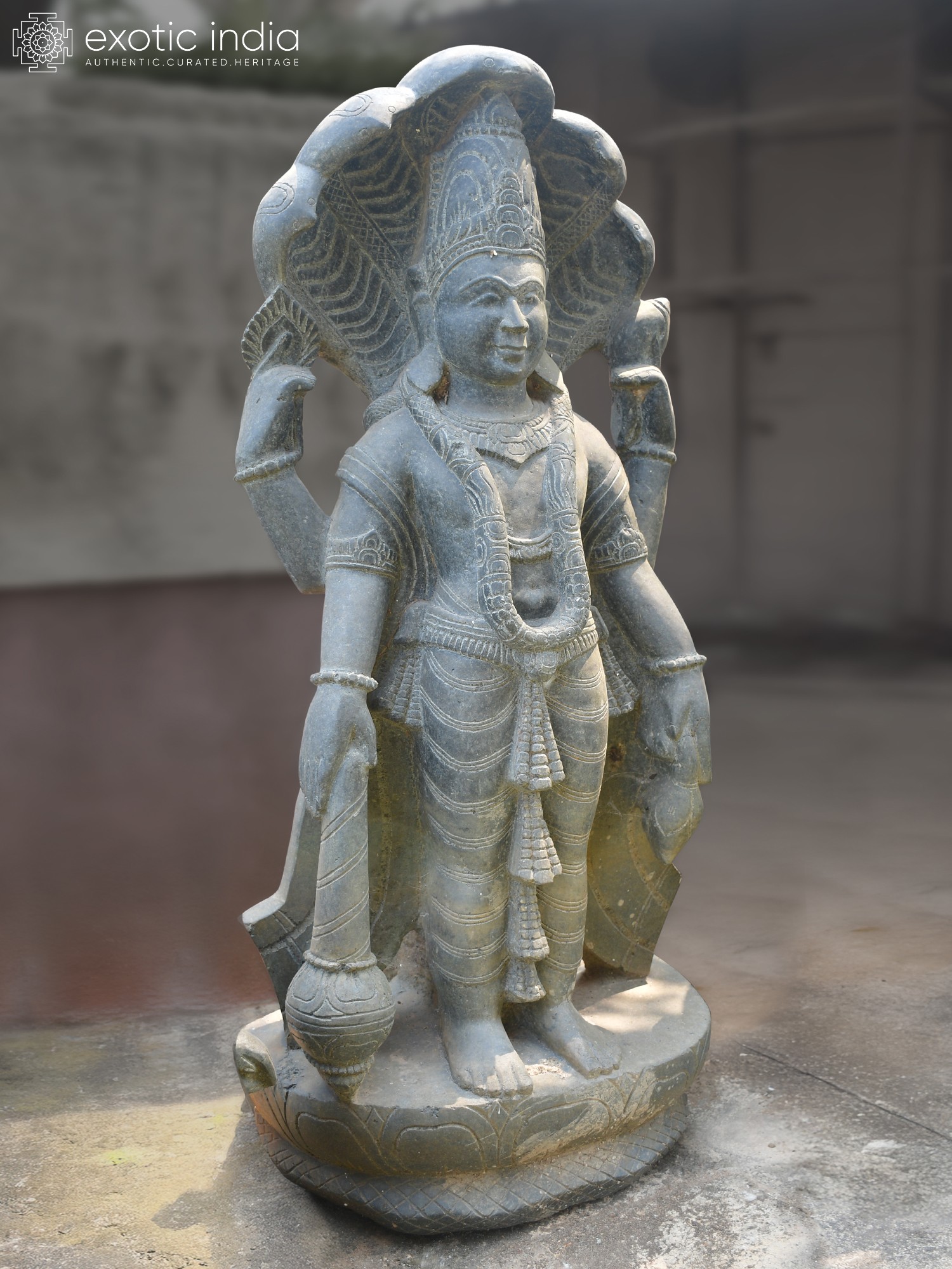 37" Lord Vishnu Standing under the Hood of Sheshnag | Orissa Stone Statue | Exquisite Handmade Indian Art